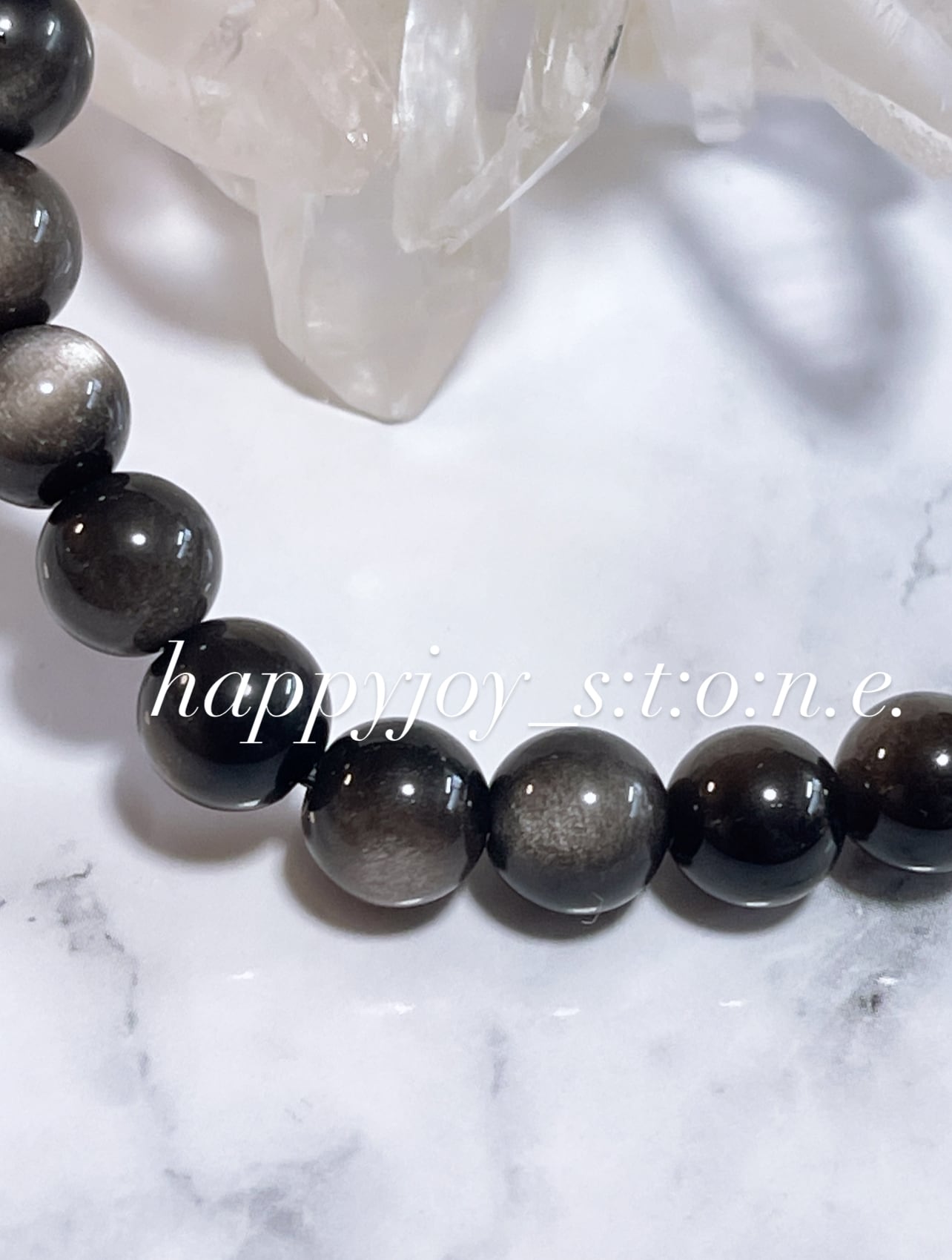 直感力・決断力UP✨☆シルバーオブシディアン☆ネコちゃんブレスレット