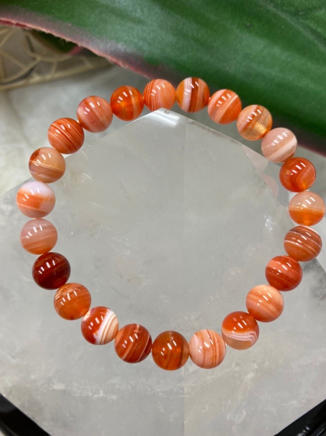 アゲート(瑪瑙)の一種で、赤と白が縞模様が特徴です。