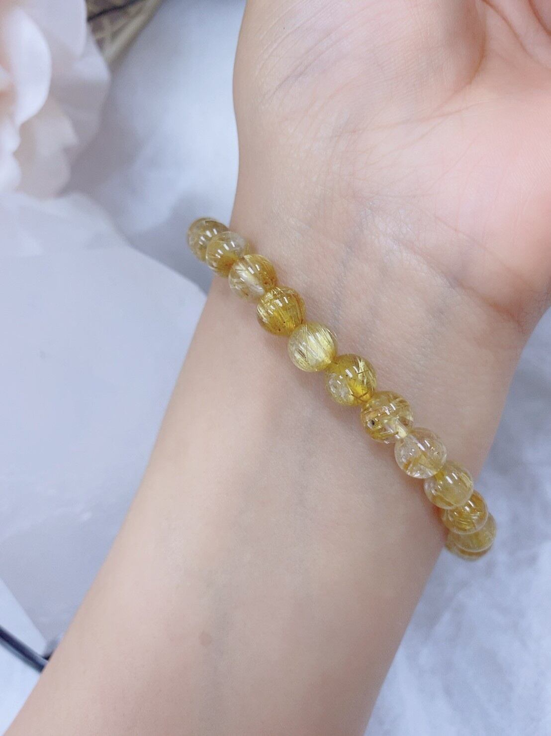 水晶の中にルチル(金紅石)を内包した天然石です。針状、または繊維状に内包され独特の輝きを放つのが特徴で、全体が黄金色になるものは特に人気があります。「金の線が入る」=「金銭が入る」ともいわれており、金運アップにもっとも力を発揮すると信じられています。