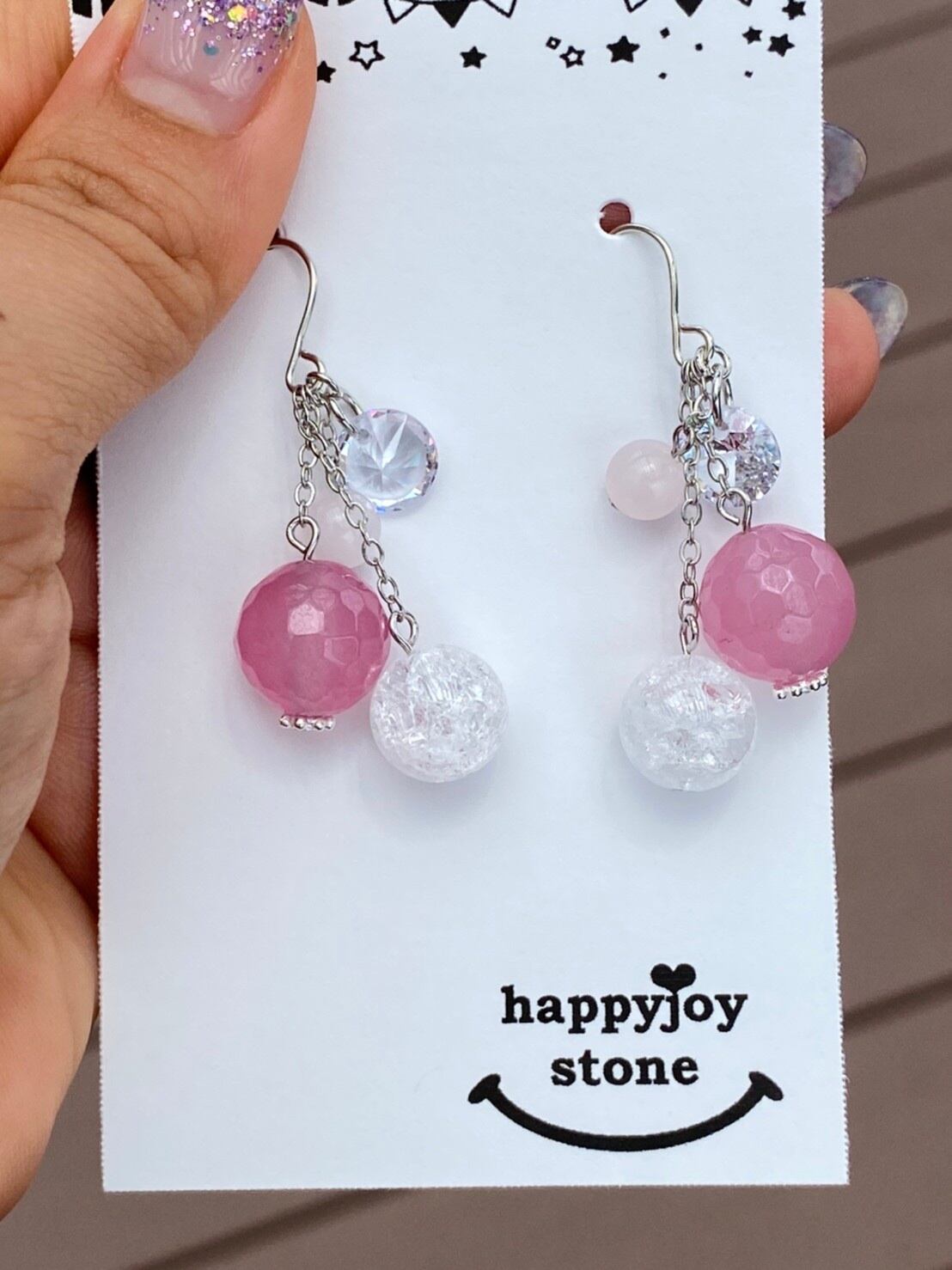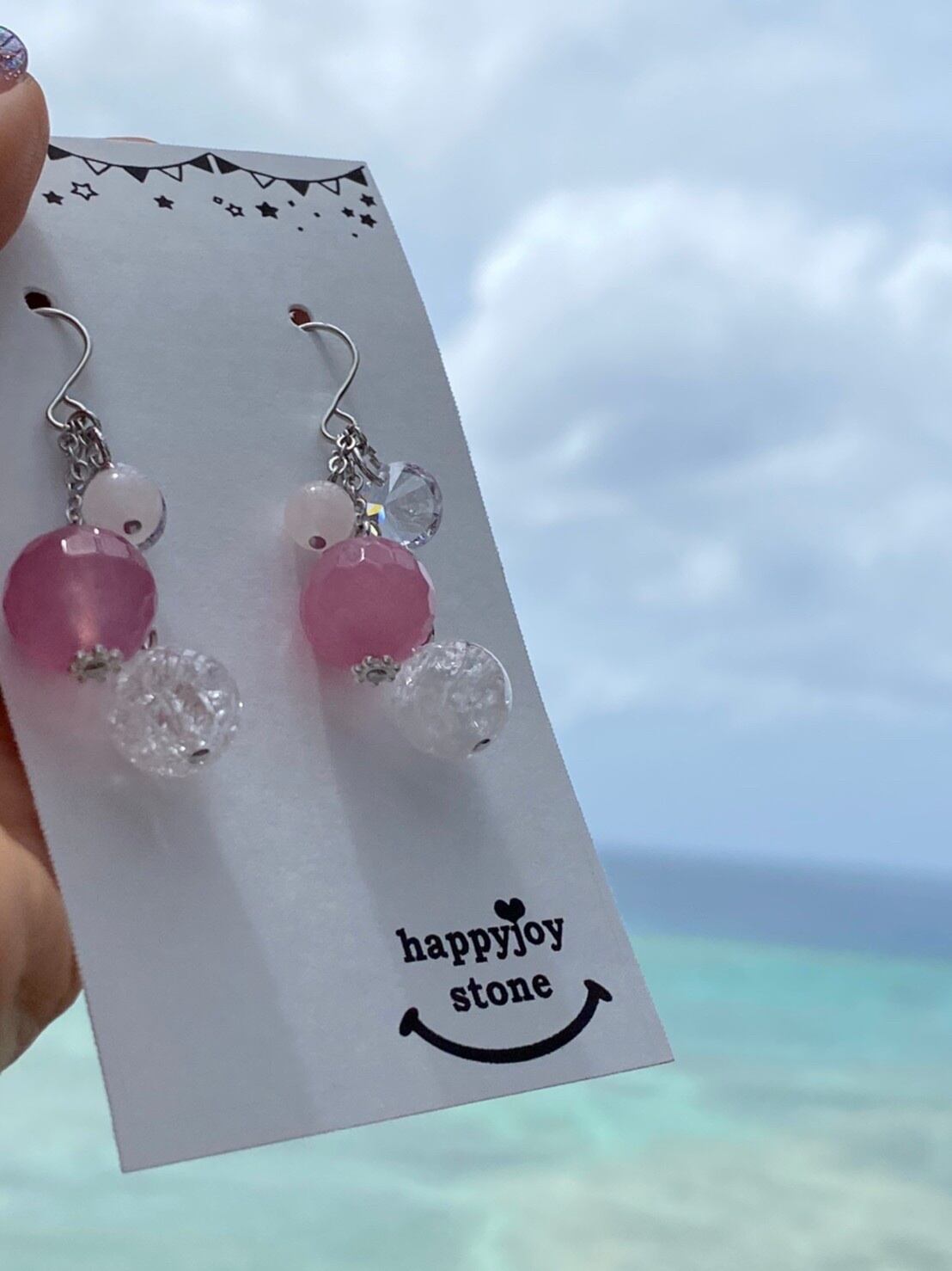 8/11新着❣️☆ローズクォーツ・クラック水晶・ピンク瑪瑙☆可愛いいキラキラピアス