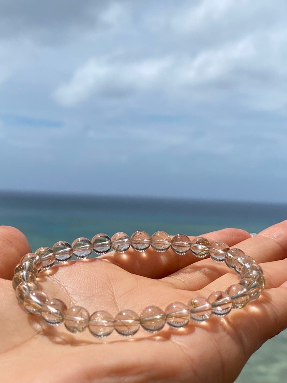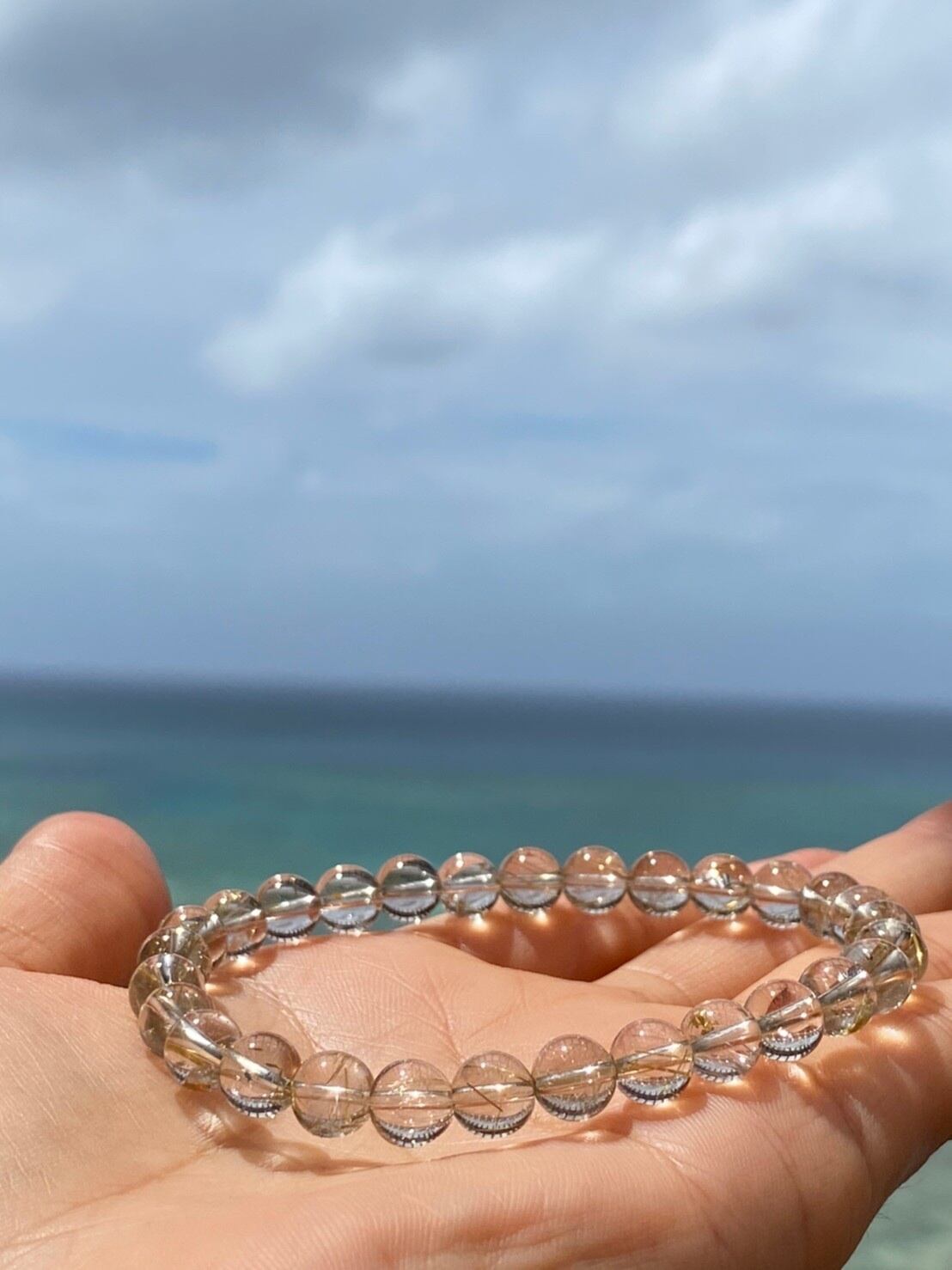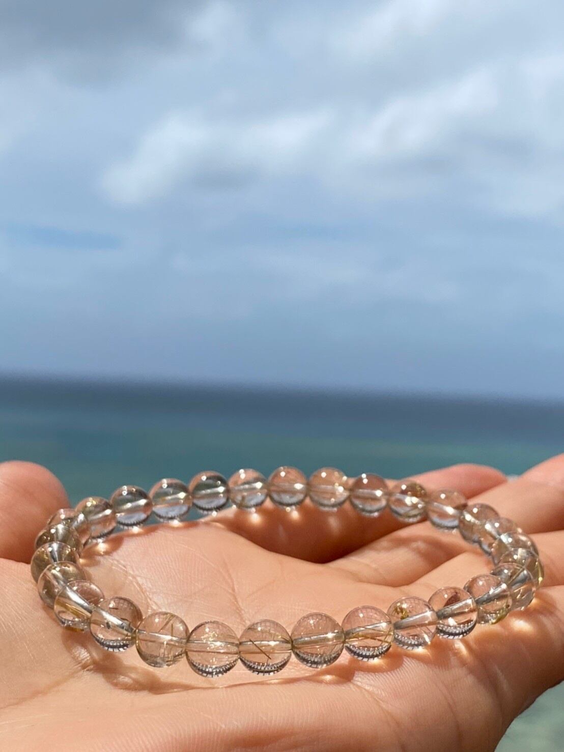 【検索用】#パワーストーン #happyjoy_stone#癒し#パワーストーン好きと繋がりたい#ヒーリン#天然石#ハッピー#楽しむ#幸せ#エンジョイ#ハンドメイド#石好き#石好き女子#天然石好きさんと繋がりたい#石コレクション#石マニア#天然石ブレスレット#天然石アクセサリー#パワーストーンブレスレット#海#空#スカイブルー#ゴールドルチル#ルチルクォーツ#ゴールド#針入り#水晶#金運