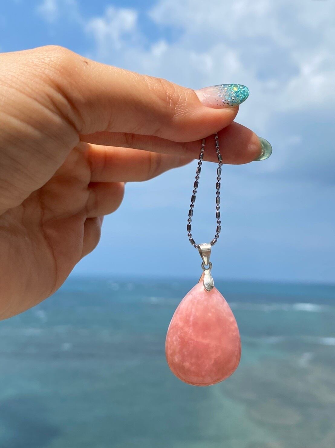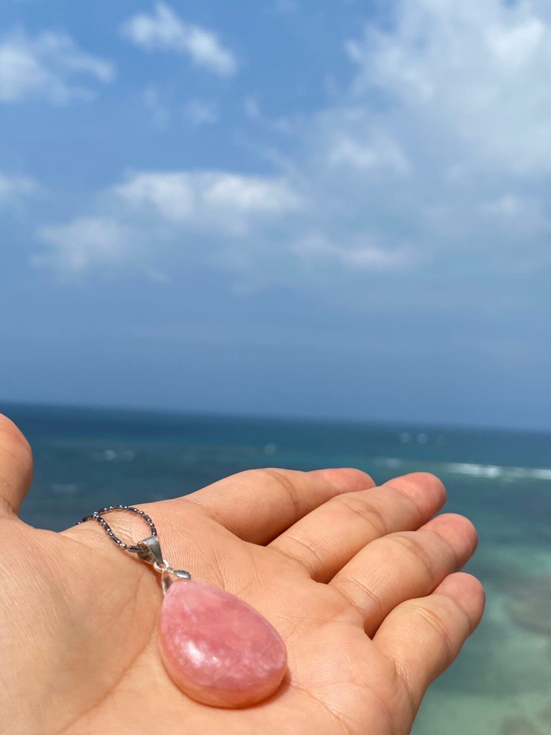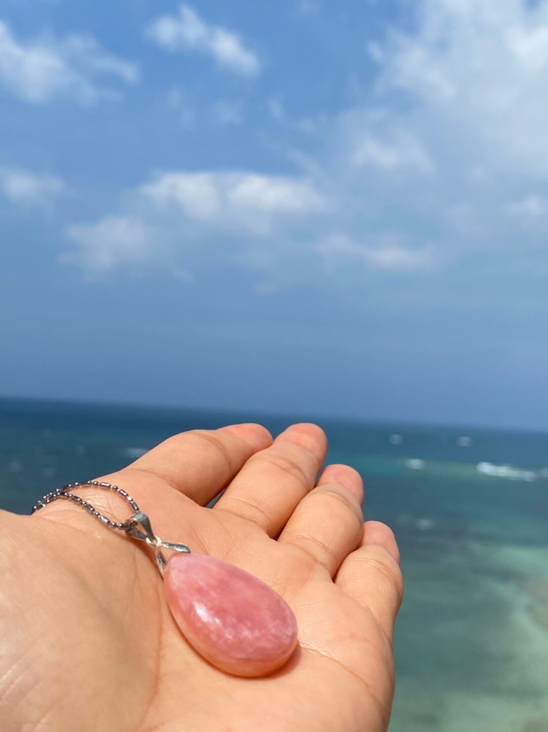 【検索用】#パワーストーン #happyjoy_stone#癒し#パワーストーン好きと繋がりたい#ヒーリング#天然石#ハッピー#楽しむ#幸せ#エンジョイ#ハンドメイド#石好き#石好き女子#天然石好きさんと繋がりたい#石コレクション#石マニア#天然石ブレスレット#天然石アクセサリー#パワーストーンブレスレット#海#空#スカイブルー#ピンクオパール#安産祈願#ペンダント