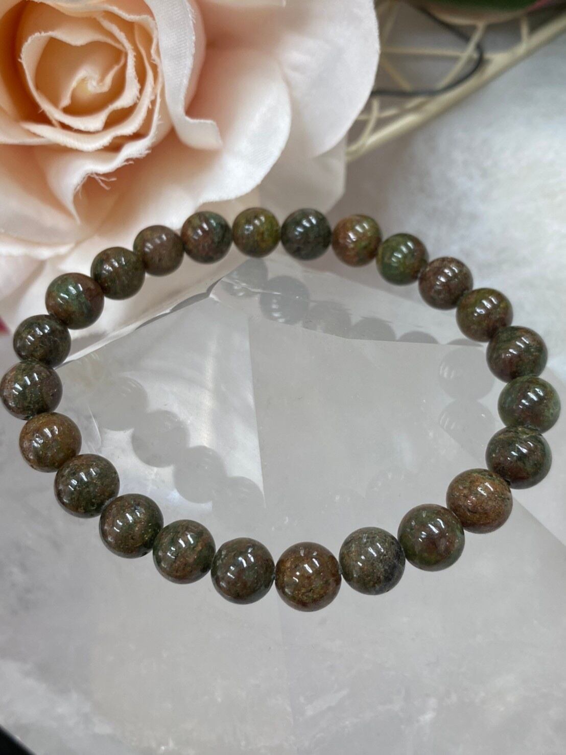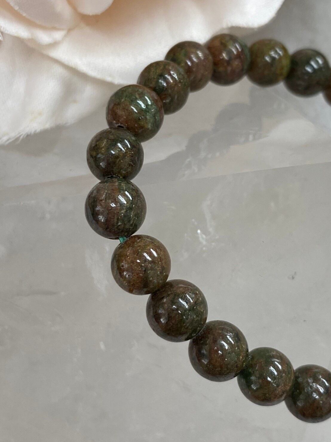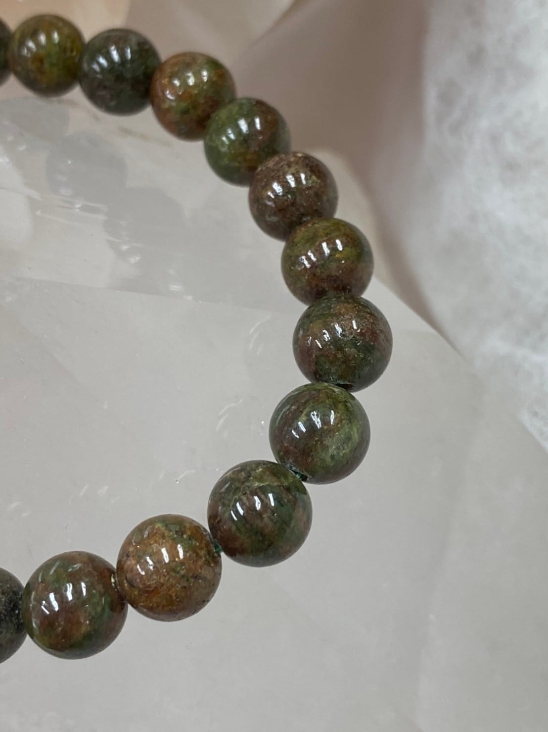 赤と緑が混じり合い、とても独特な雰囲気のストーンです。高価ではないものの、なかなかなレアストーンです。持つ人の生命力や気力などを高めてくれます。 地に足をつけ安定させる事により、物事に取り組む姿勢や行動力といった前に出るエネルギーをもたらします。