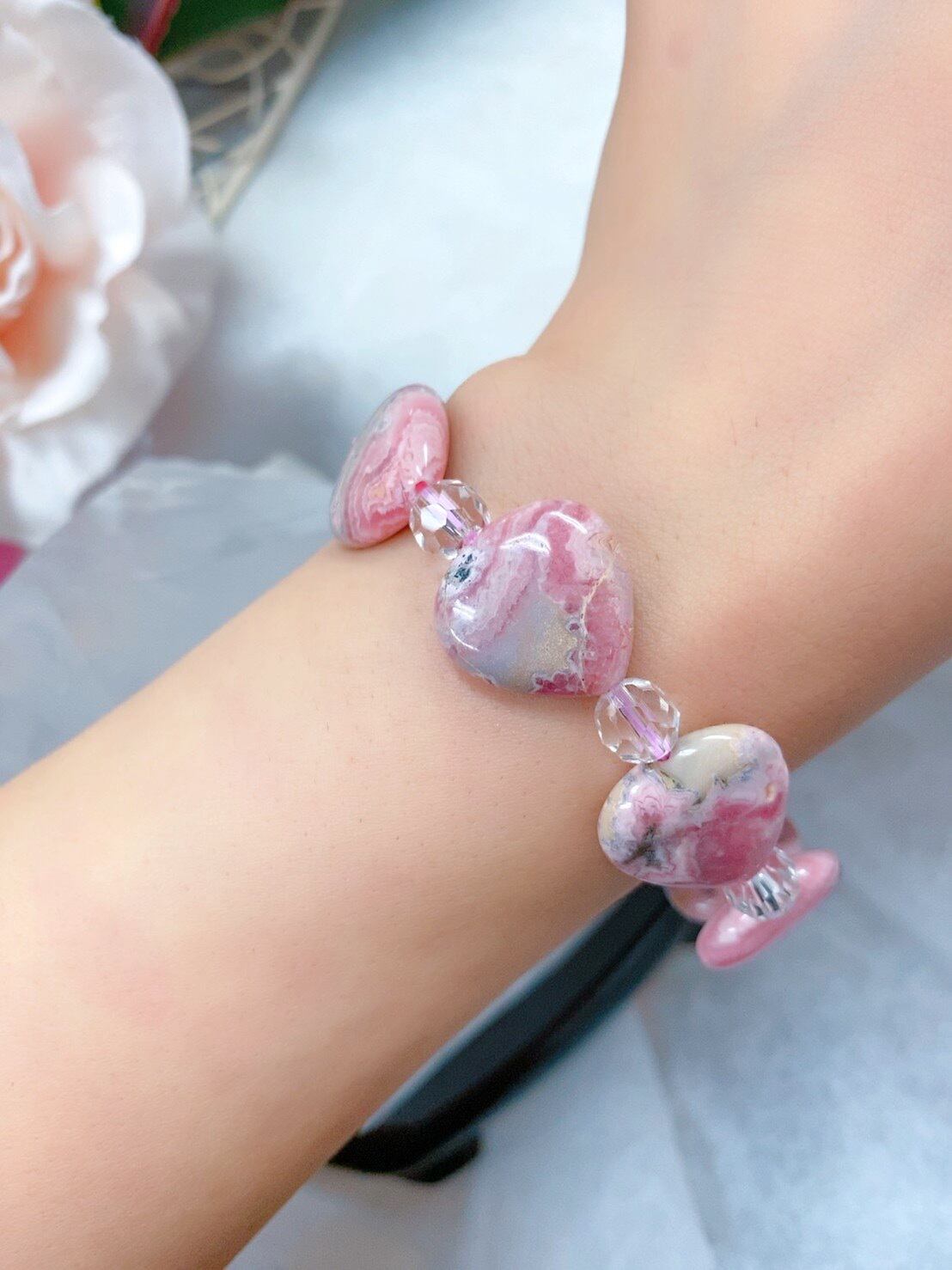 12/8新着❣️チャンスを引寄せる✨☆インカローズinパイライト入りあり・水晶☆ハートブレスレット