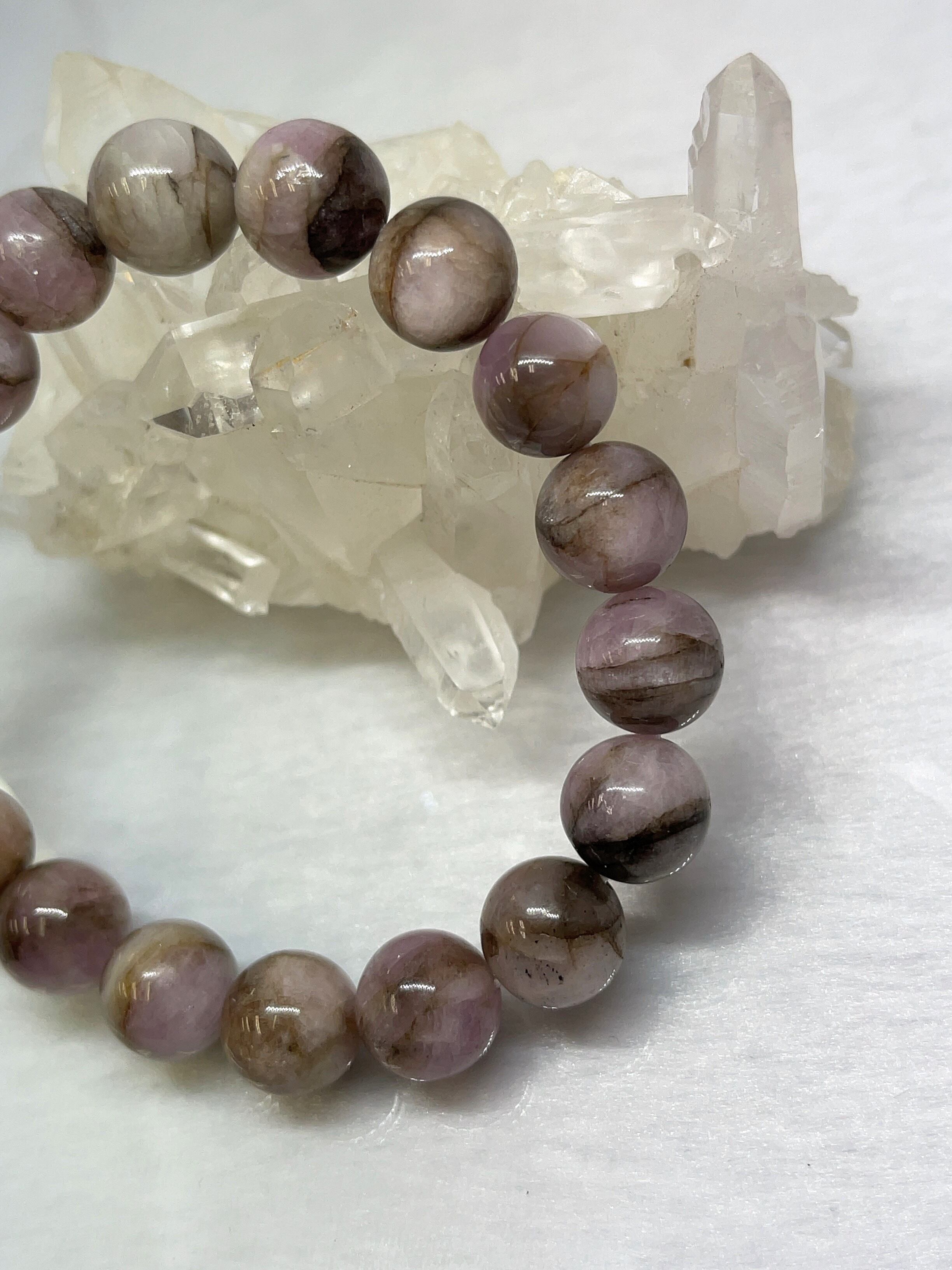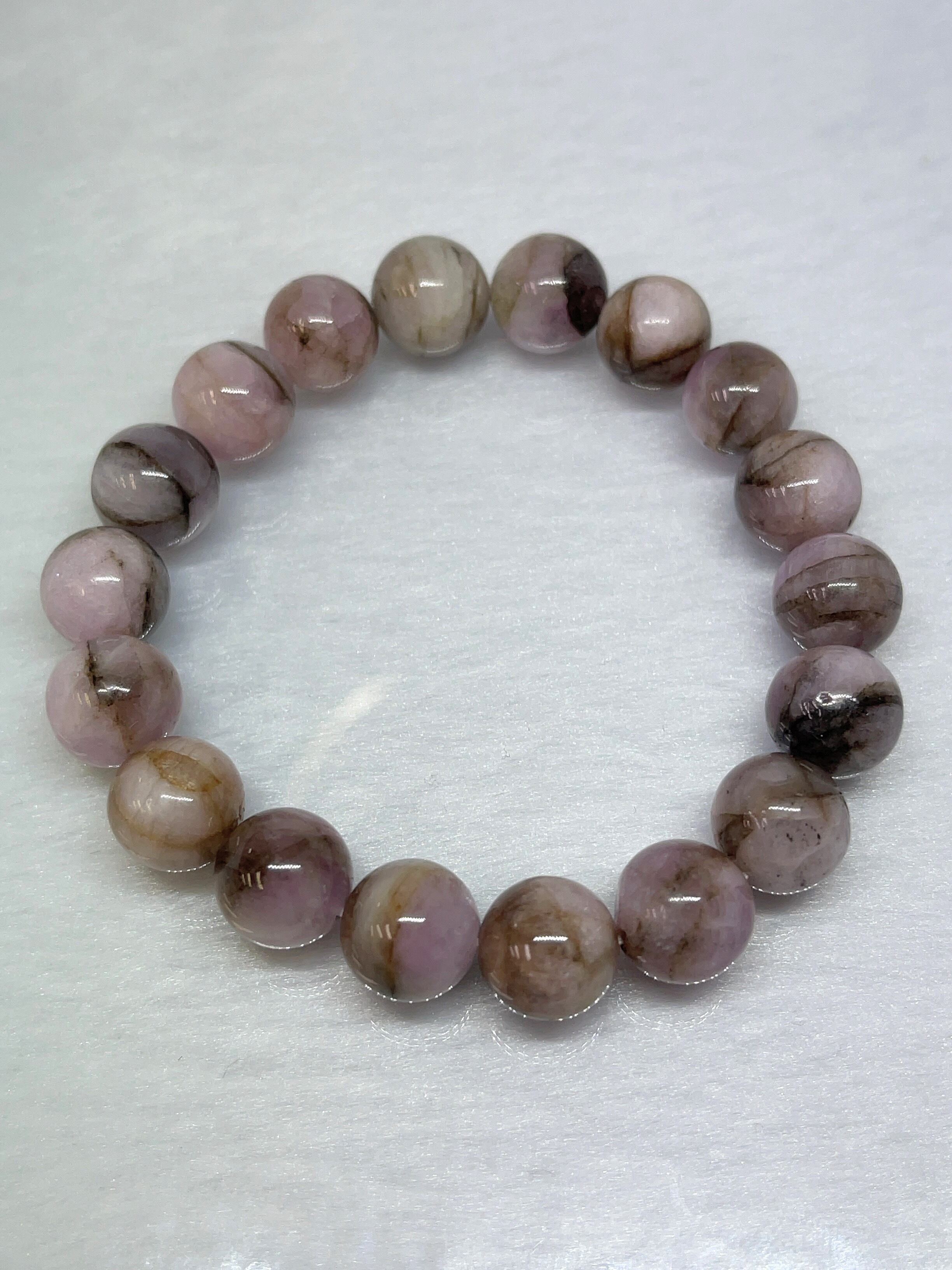 美しいマーブルカラーが示すように、芸術に関する力が強いクリスタルです。白のカルセドニーやオパール、紫のフローライト、ピンクのロードナイトなど、様々な鉱物を含む石でとても希少です。