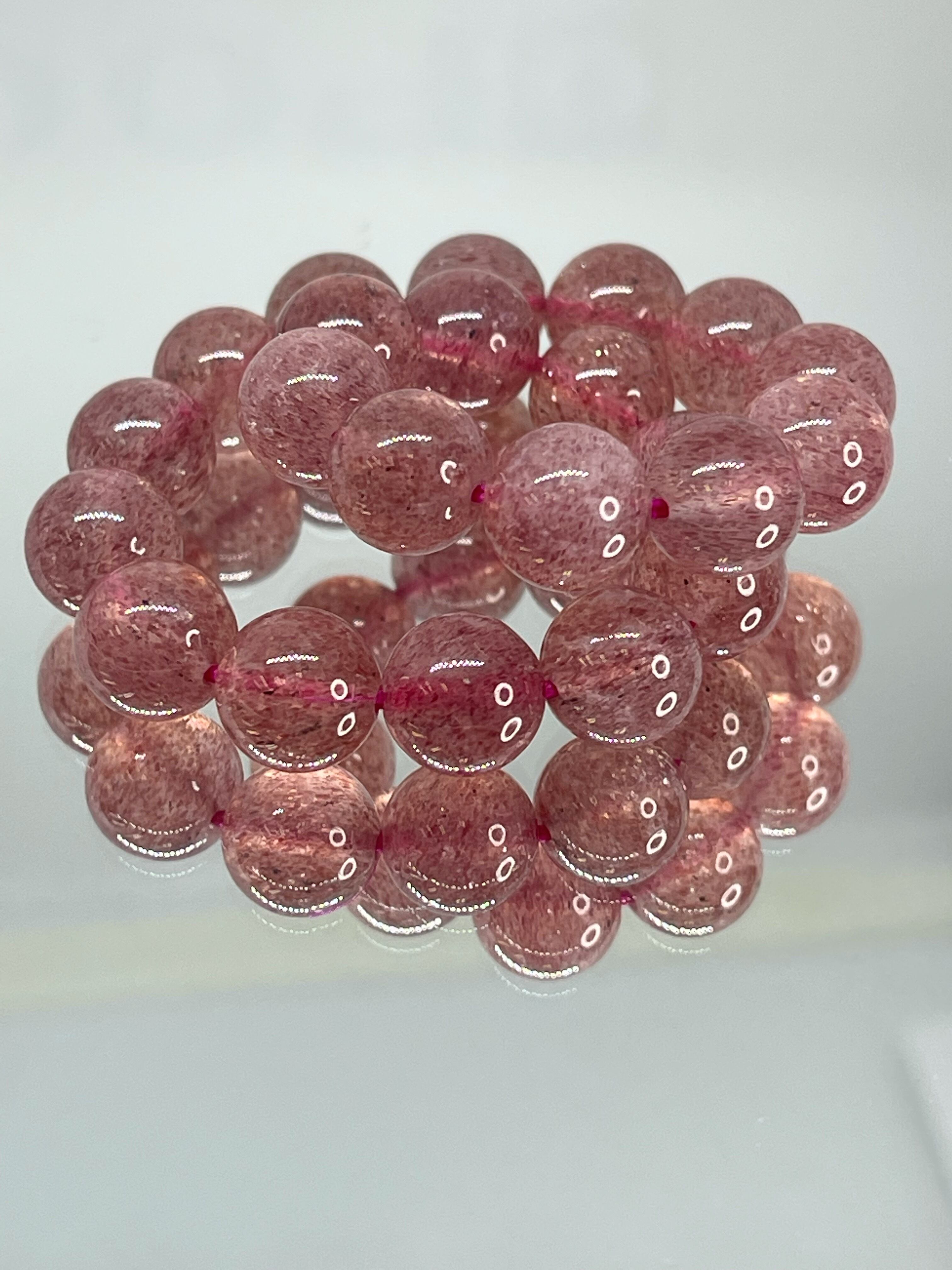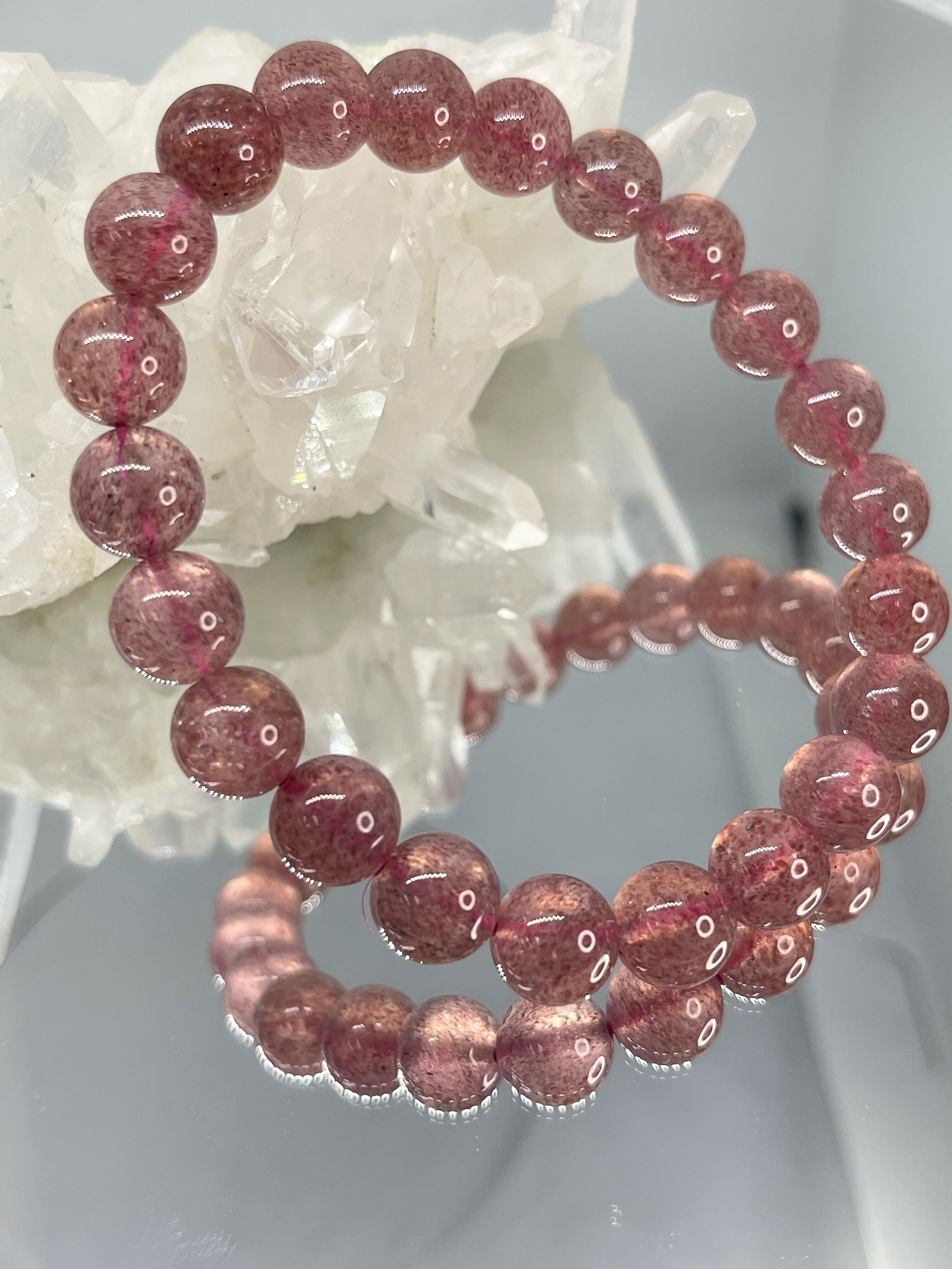 通常は水晶の中に緑色の内包物が入ることが多いのですが、生成時のマンガンの作用によってピンク色になったと言われています。一見ストロベリークォーツやサンストーンのような見た目となりますが、鉱物的には全く異なる天然石です。