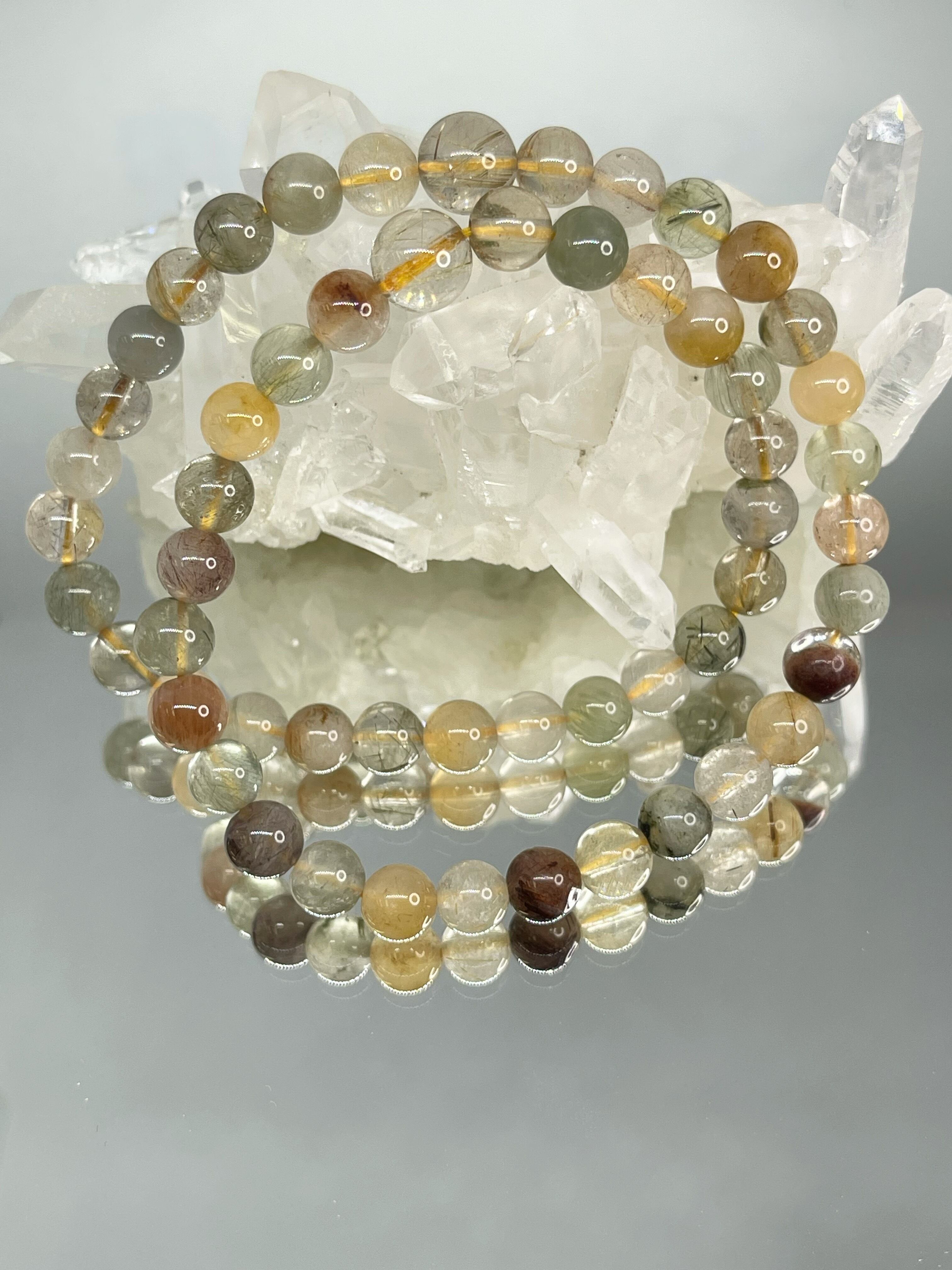 様々な色のルチルクォーツがミックスする事によって波動が大変穏やかになり、持つ人の心身を癒しながら必要なエネルギーを与えてくれると言われます。