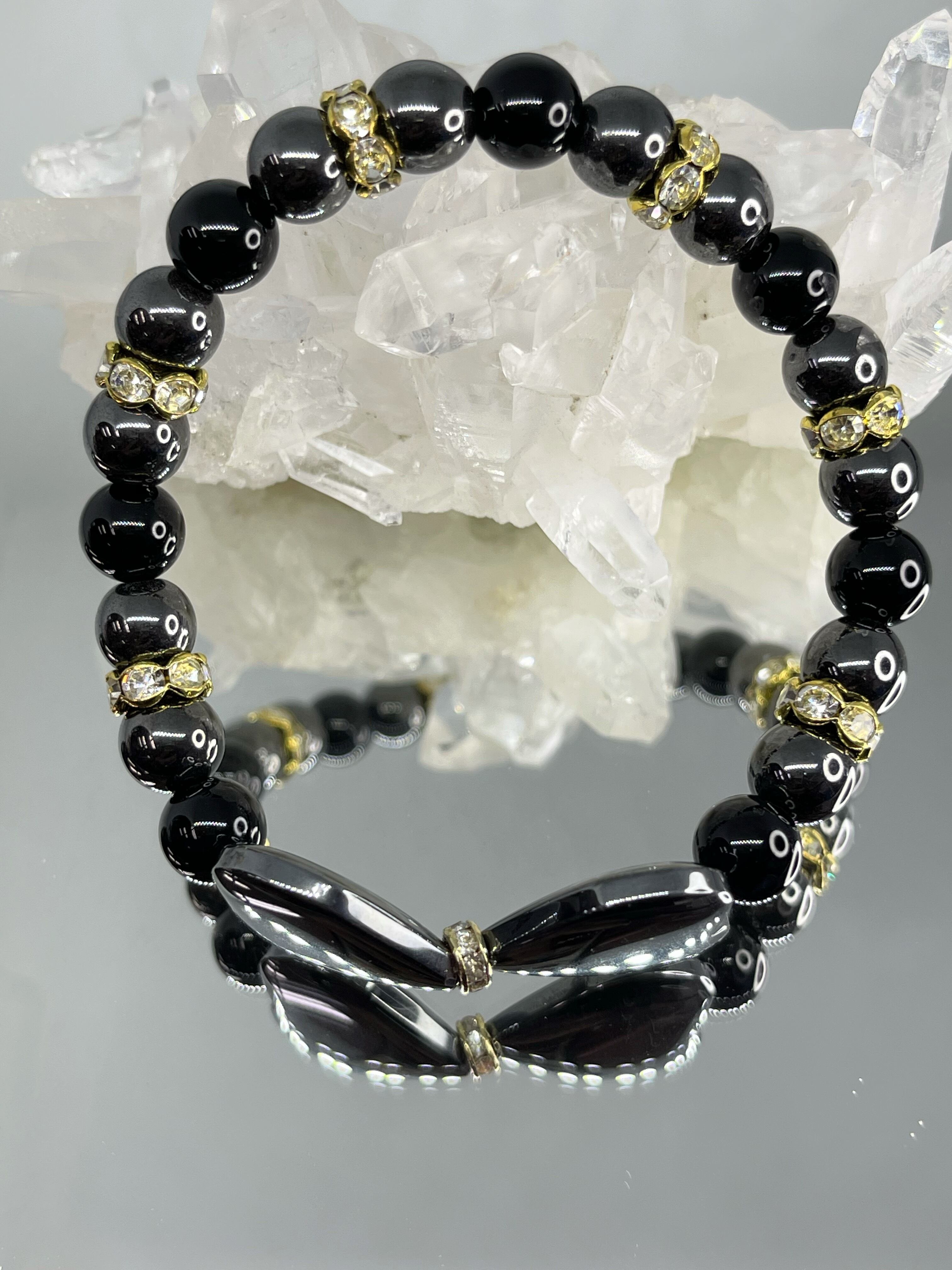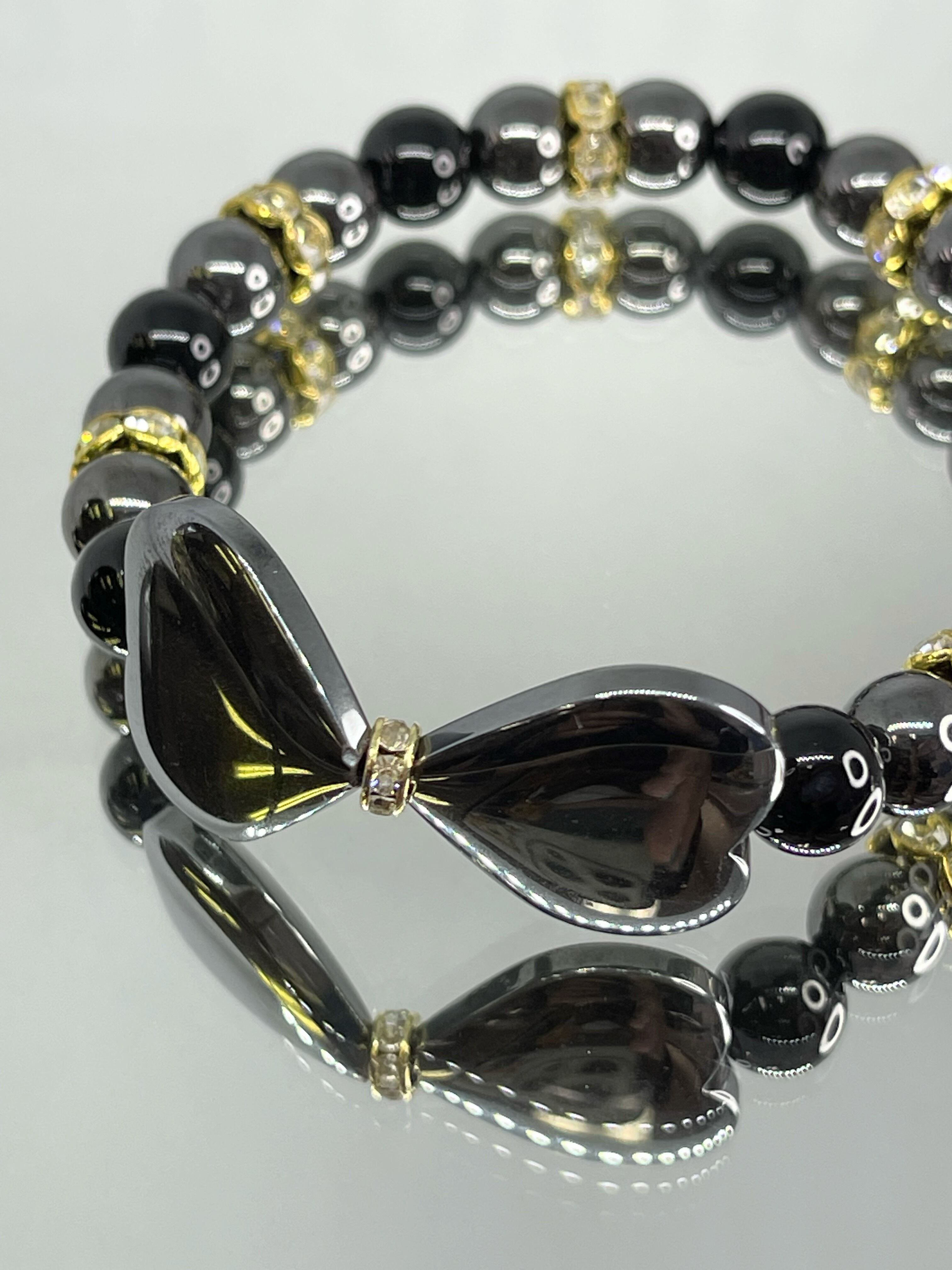 癒し・魔除け・願望達成✨☆オニキス・磁気入りヘマタイト☆ハートブレスレット