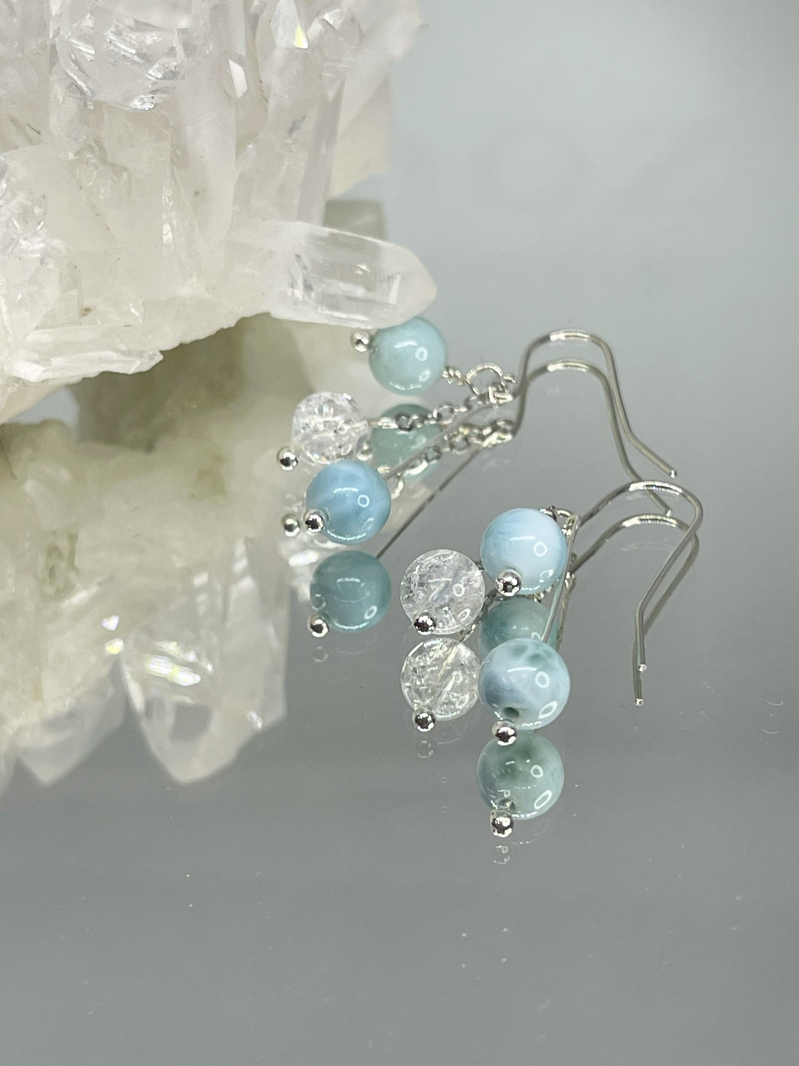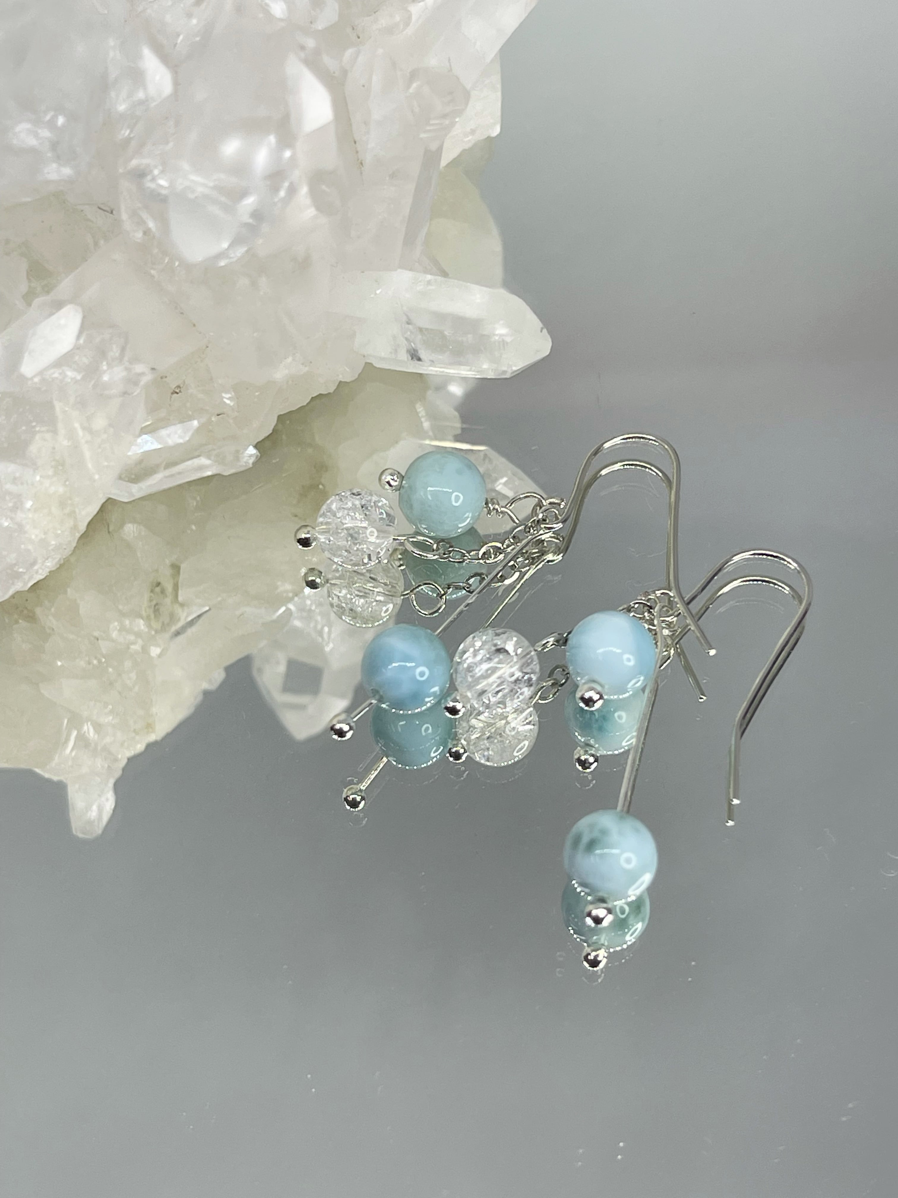 開運・心身の癒し✨☆ラリマー・クラック水晶☆ニッケルフリーピアス