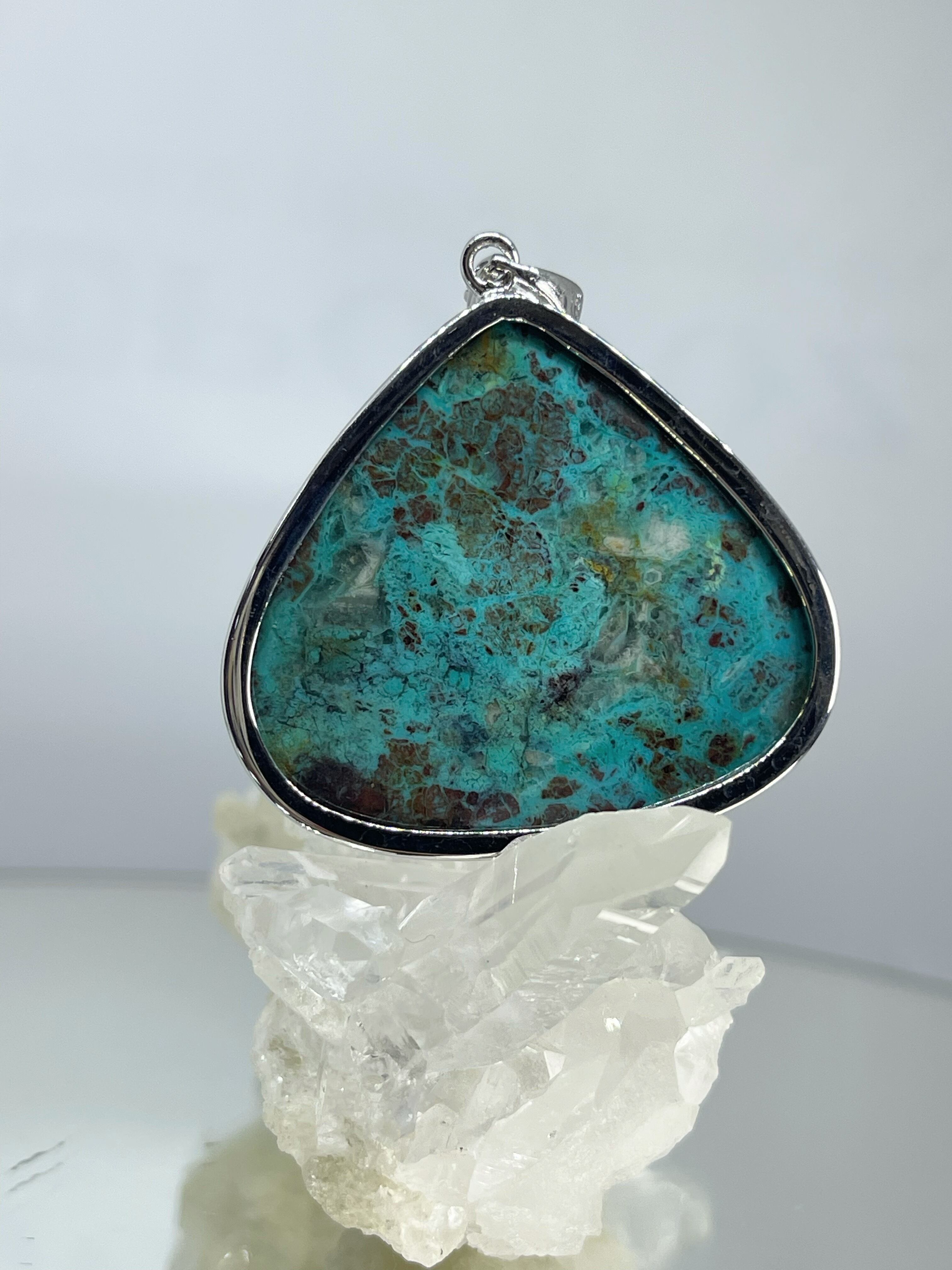 真っ青なものはターコイズに間違われたり、緑のトルコ石とも呼ばれます。非常に割れやすい繊細さも特徴です。「教えの石」「女神が宿っている」といわれており、天からのメッセージを受け取りやすくサポートしてくれます。
