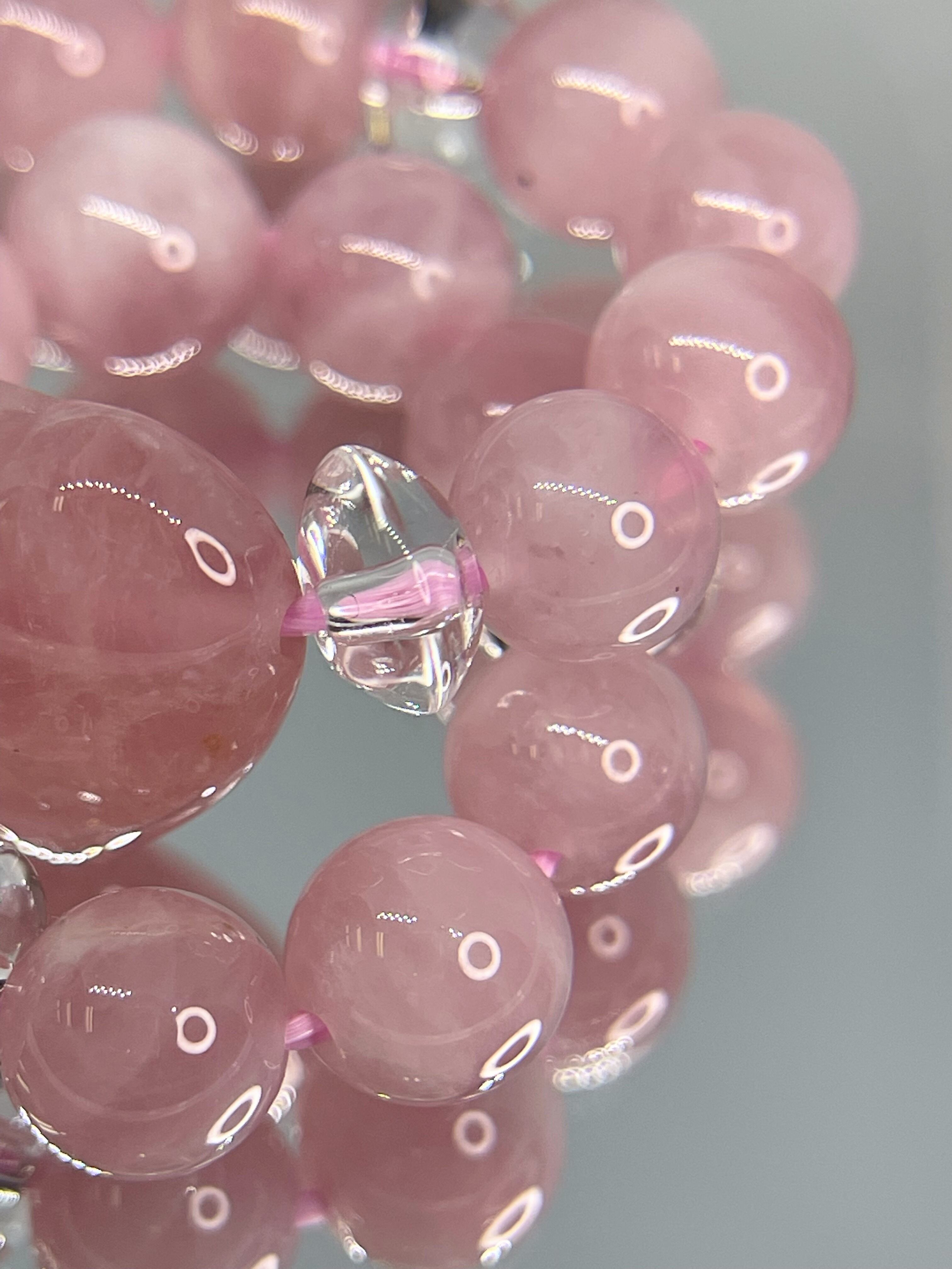 美・愛・優しさ・開運✨☆ディープローズクォーツ&クリスタル☆ハートブレスレット
