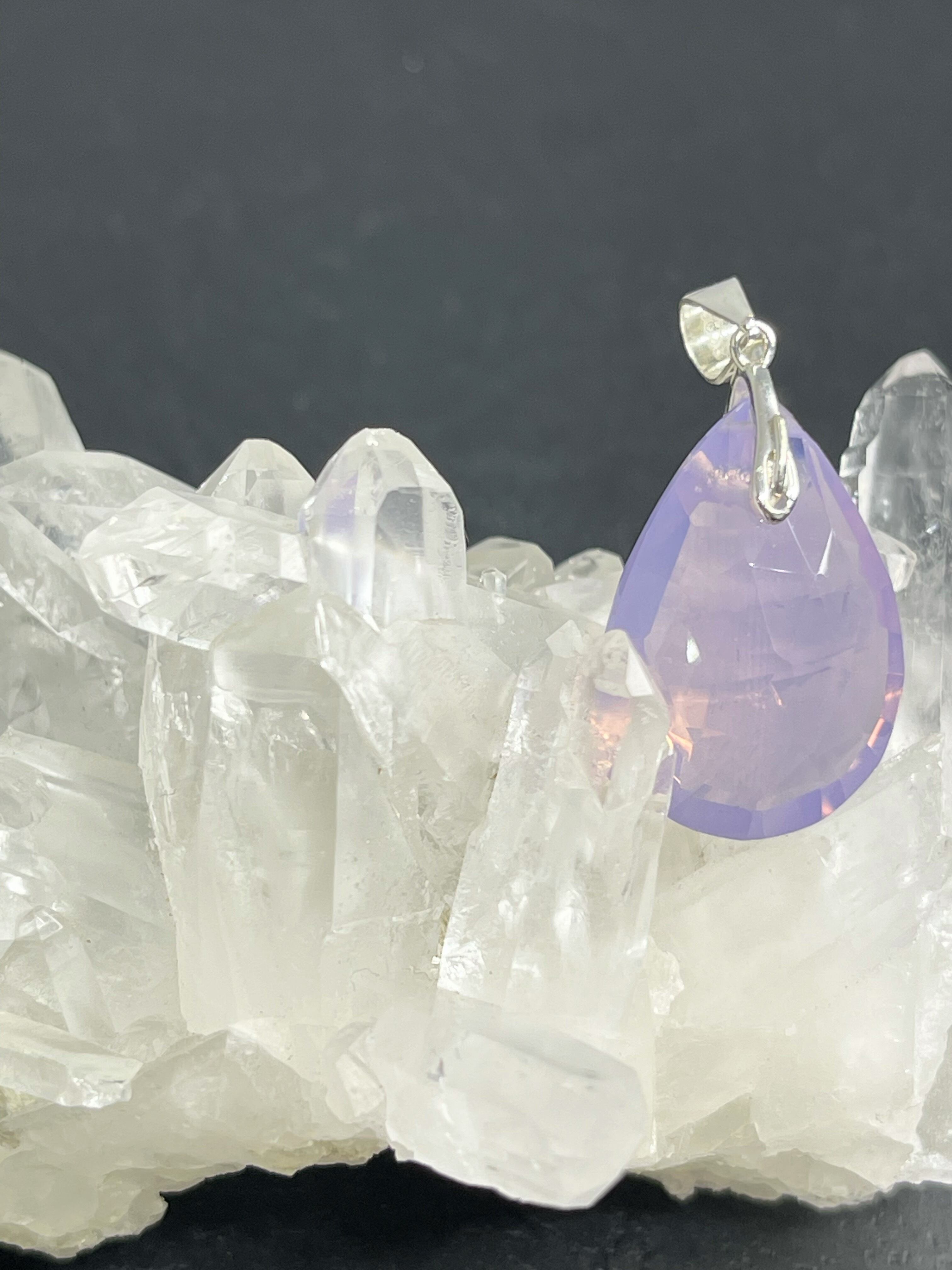 鉱物はアメジストですが、人の手で加熱処理することによって美しく輝きます。加熱して作れば量産することも出来るのですが、割れてしまったり白く濁ってしまったりなかなか難しいようです。絶妙なバランスの不透明感がとても美しいのが特徴です。