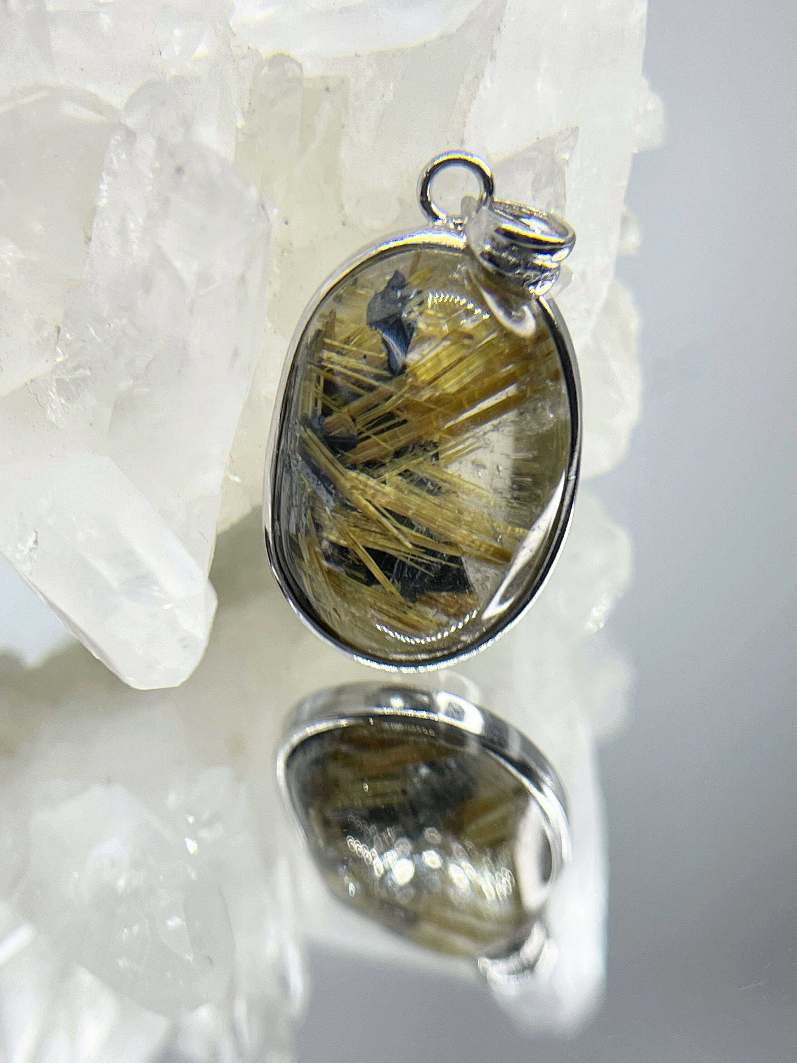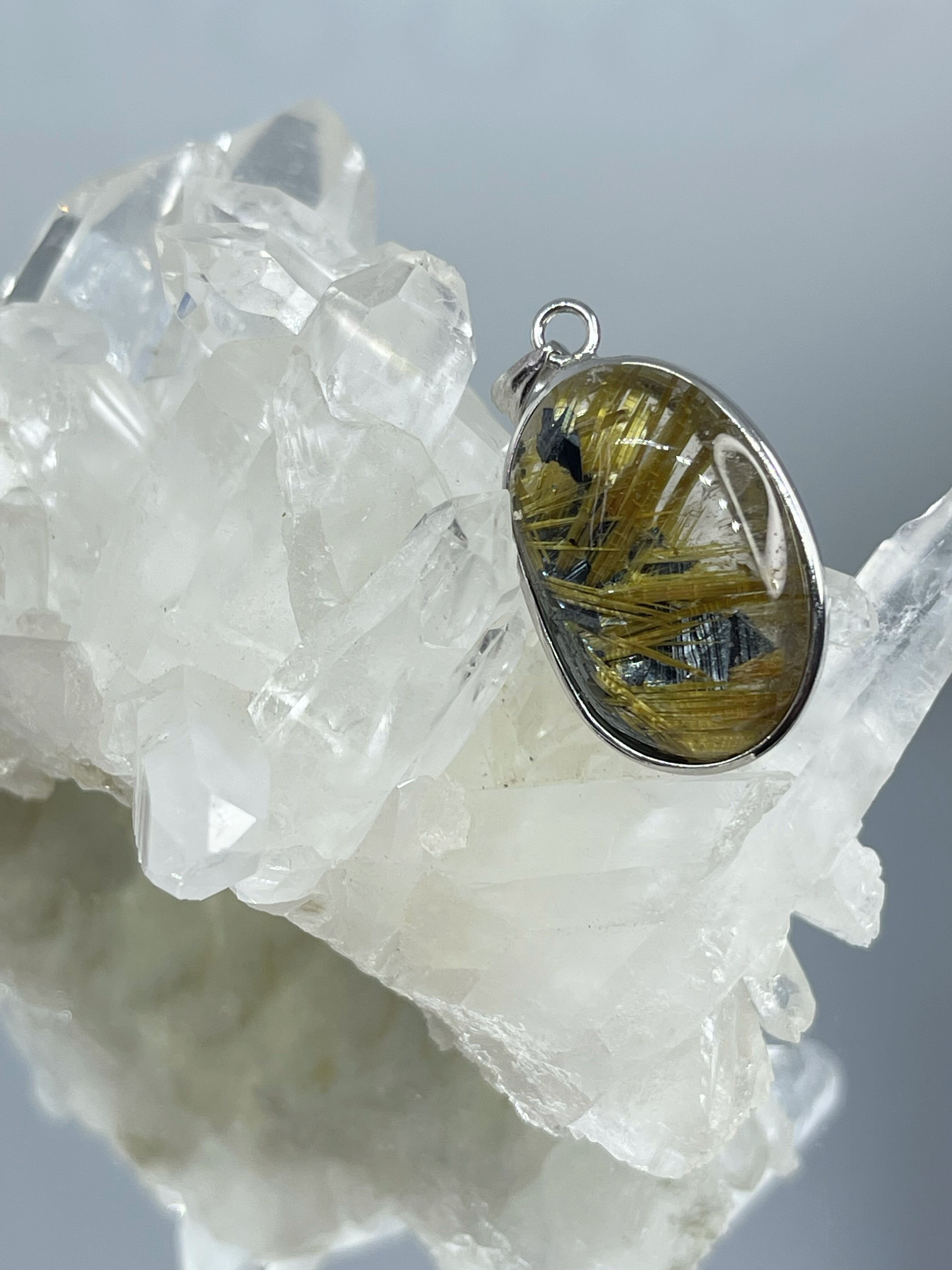 針状のアンテナでいろんな幸運をキャッチ✨☆ヘマタイト入りタイチンルチルクォーツ☆ペンダントトップ