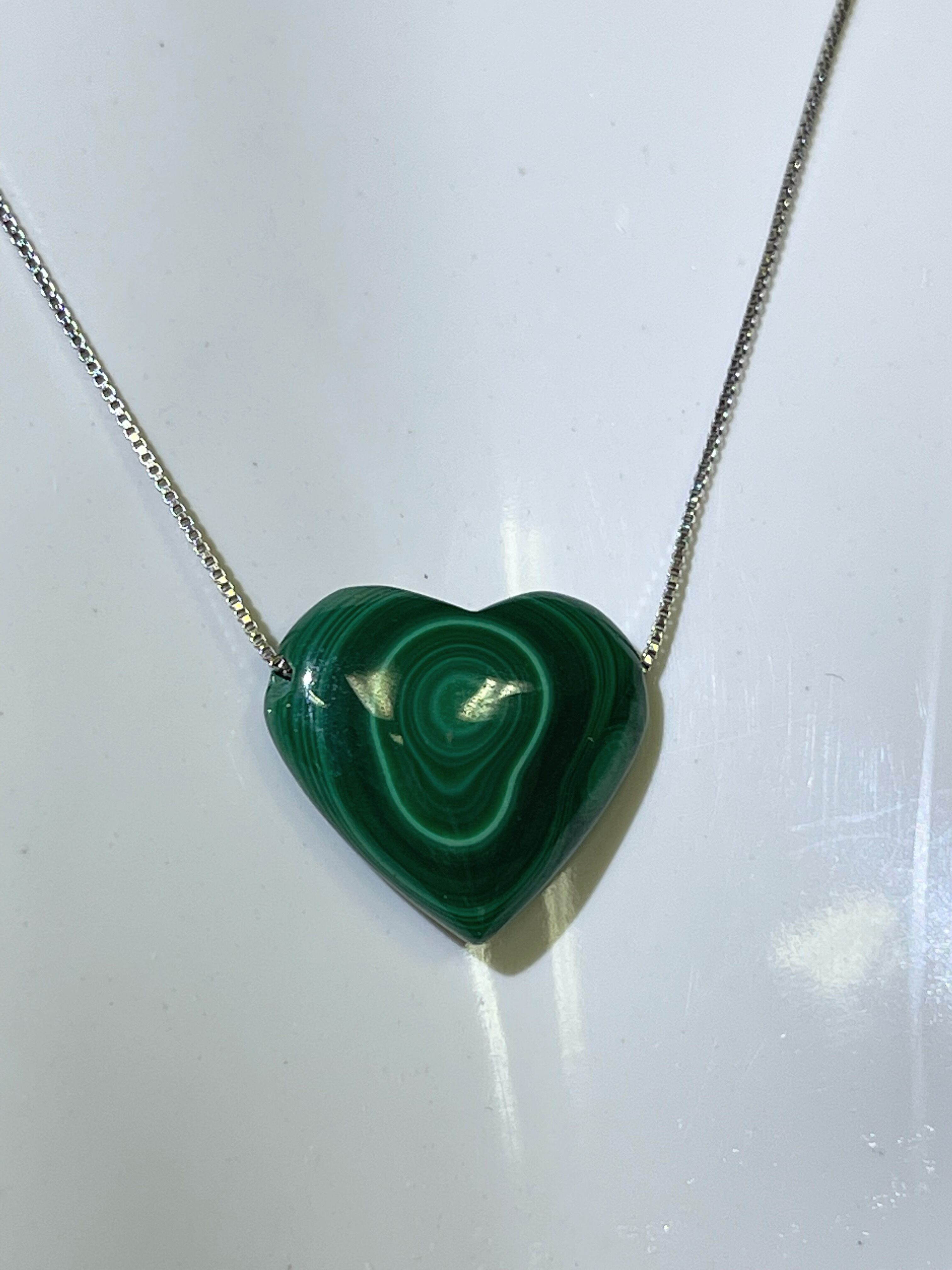 再入荷❣️心身の浄化・魔除け✨☆ハートマラカイト☆ピンチェーンネックレス