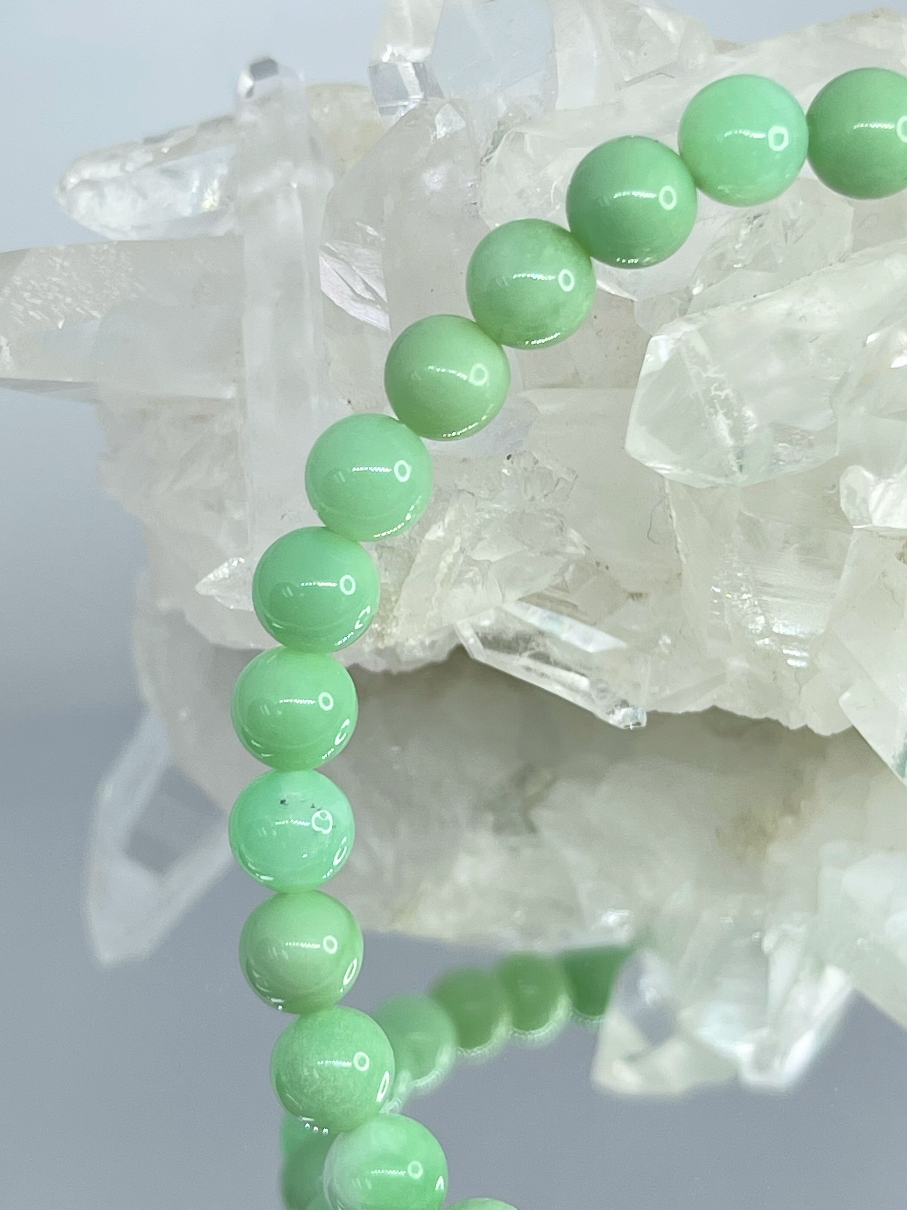 カルセドニーの中でも、青リンゴのような黄みの強い清々しい石です。見た目とは裏腹に、強いパワーを持ち強運と勝利をもたらすと言われています。「オーストラリアヒスイ」とも呼ばれ、装飾品として人気がありました。