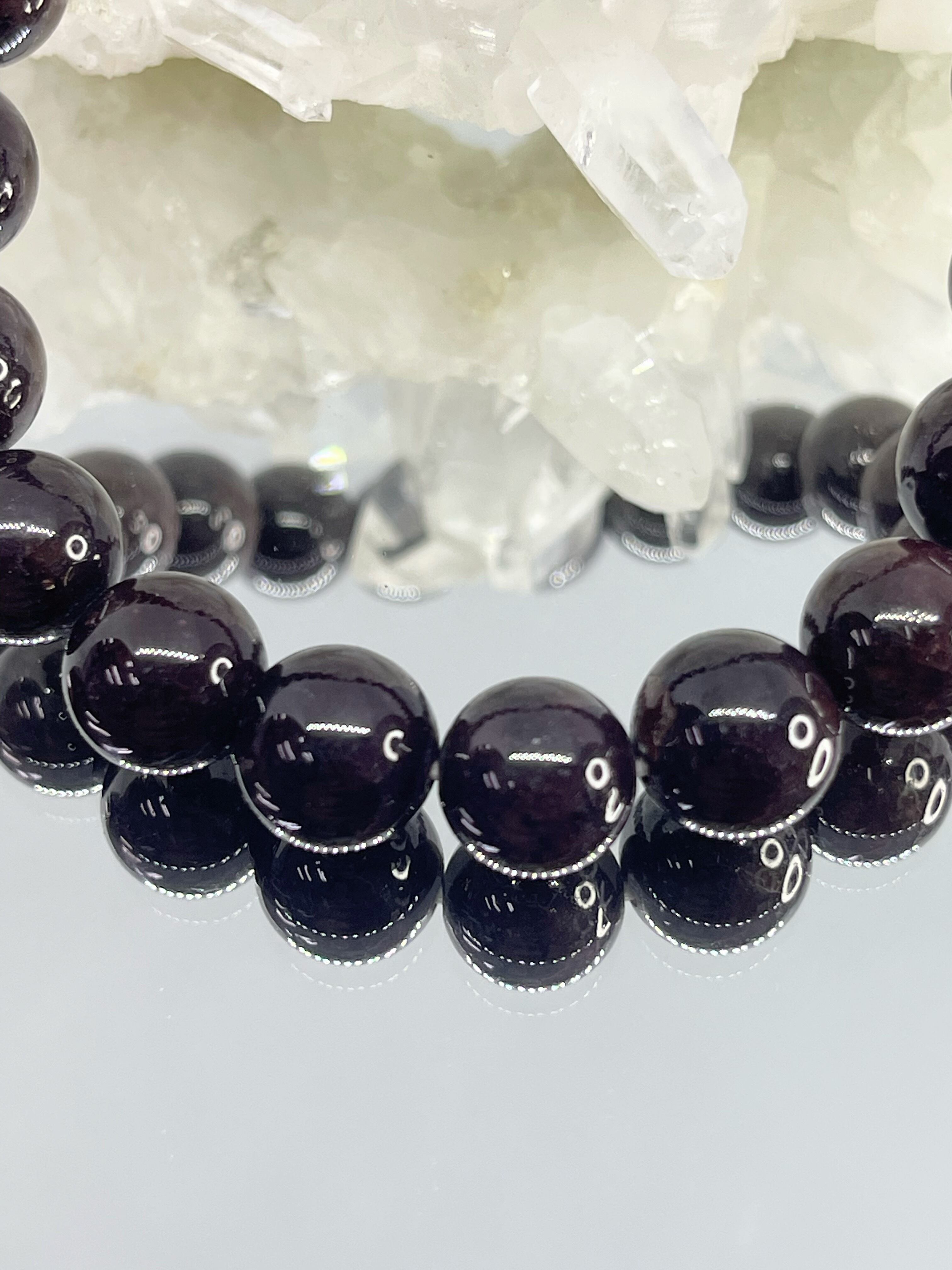 一般的なガーネットは透明度が高く不純物が少ないほど高品質だが、スターガーネットは内包物の量や入り方によって、4条や6条の光の筋がでてスターのようにみえます。通常のガーネットよりもエネルギーは強い。