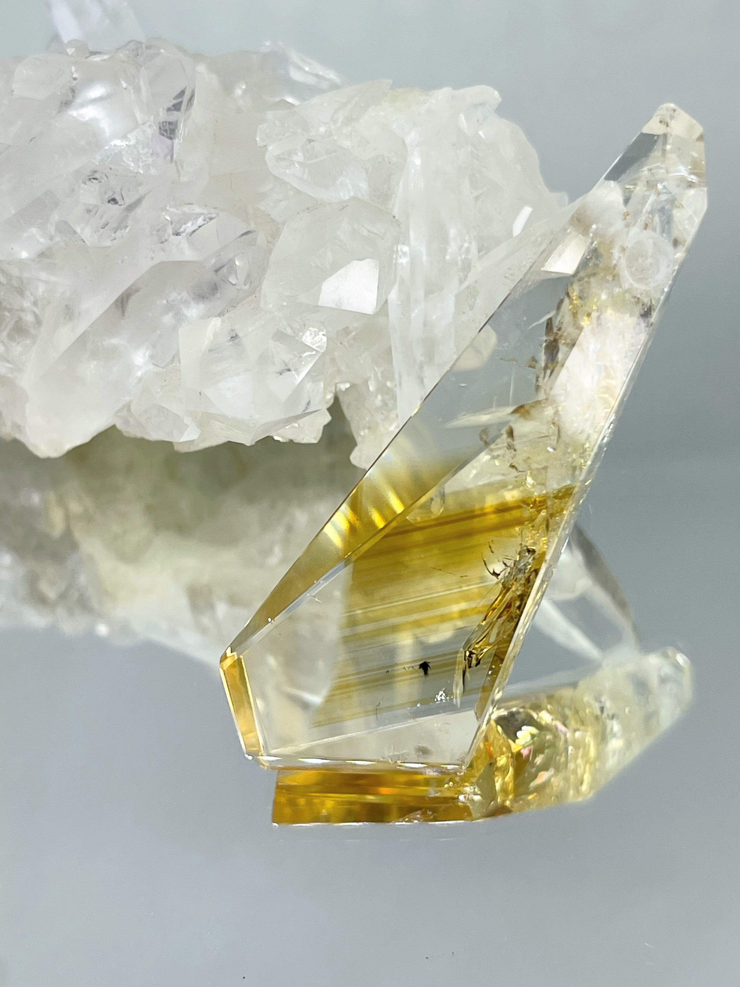 本来は無色の石で、アメジストを加熱処理し黄色にしたものです。天然ものは希少です。