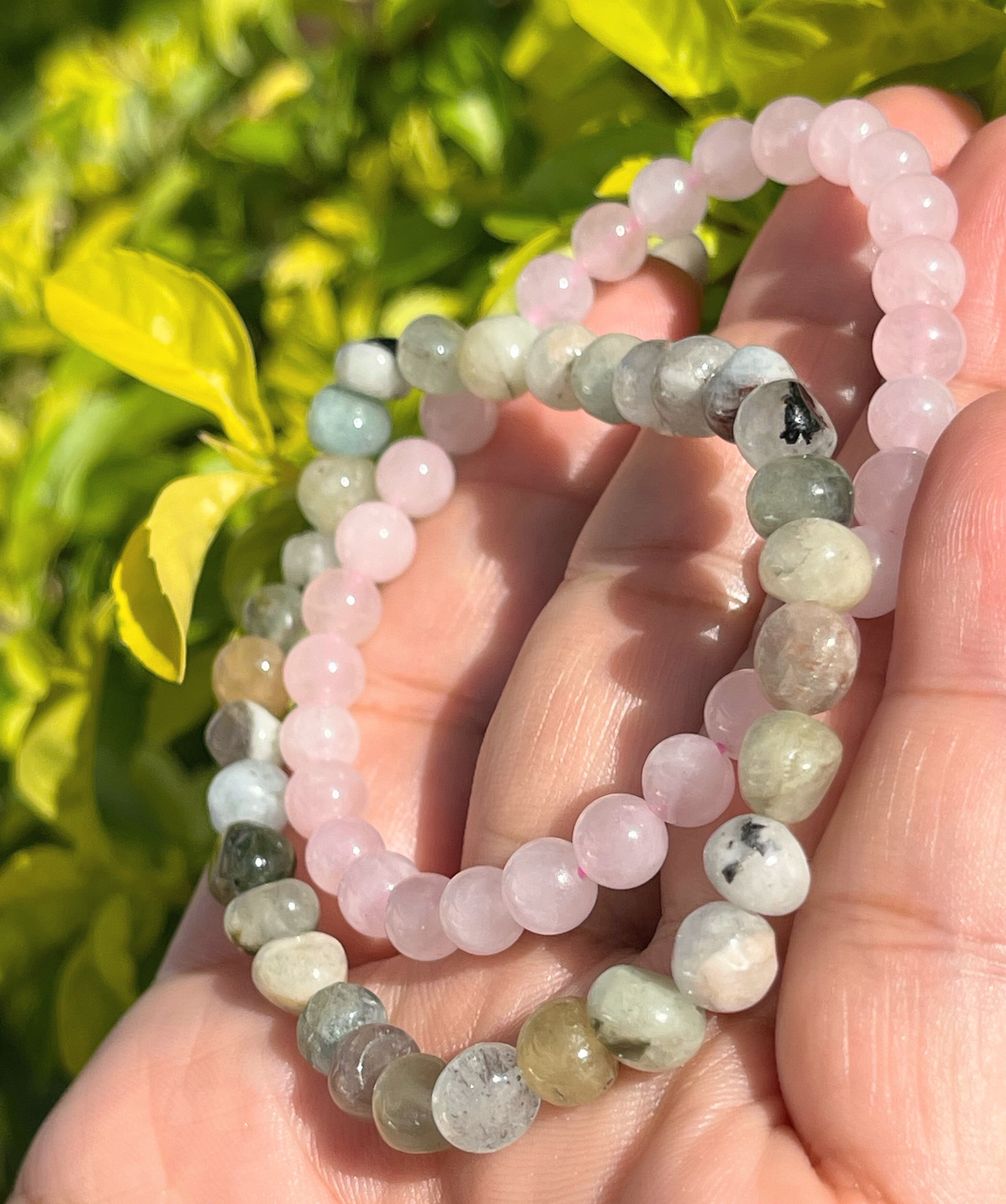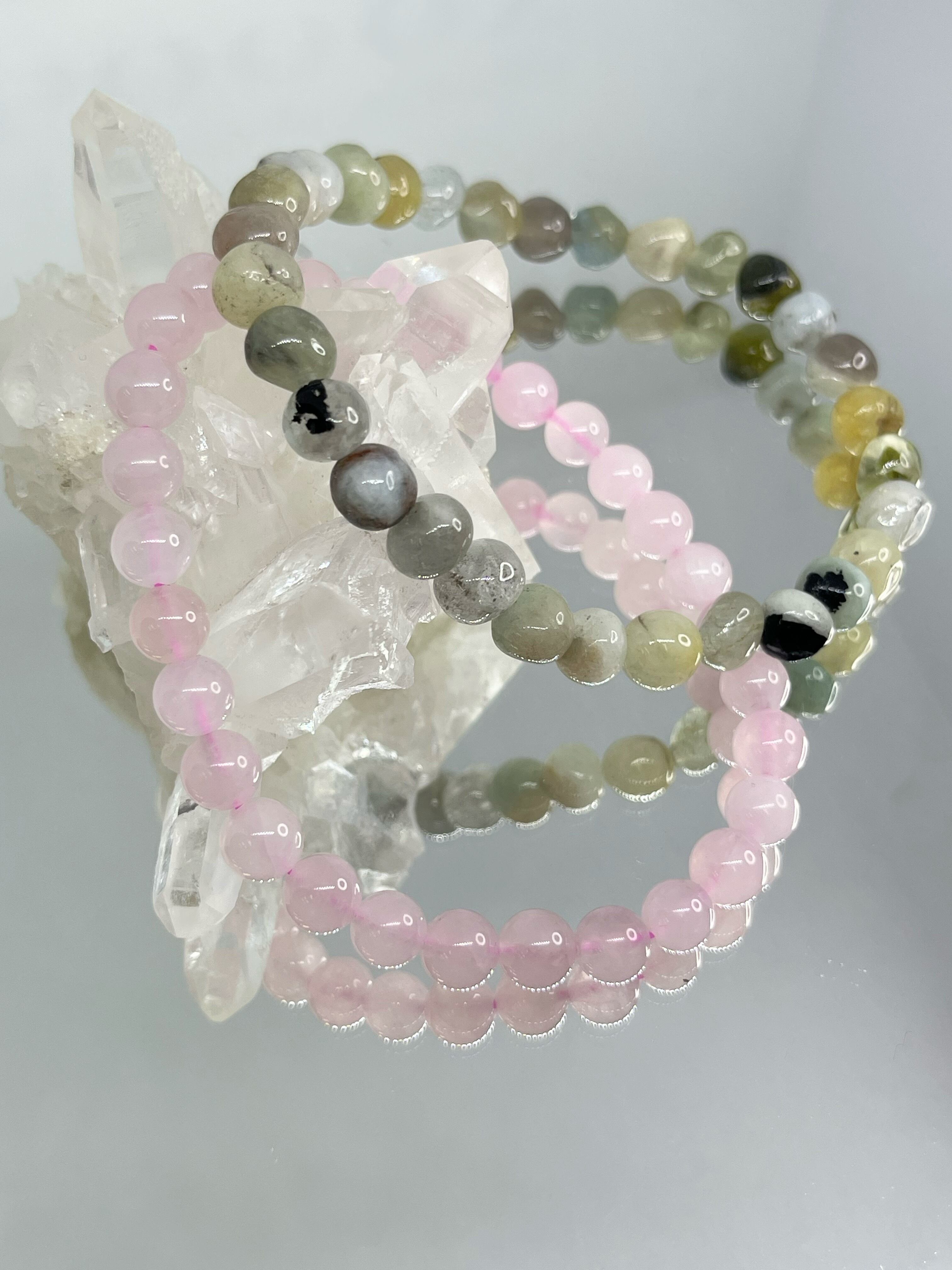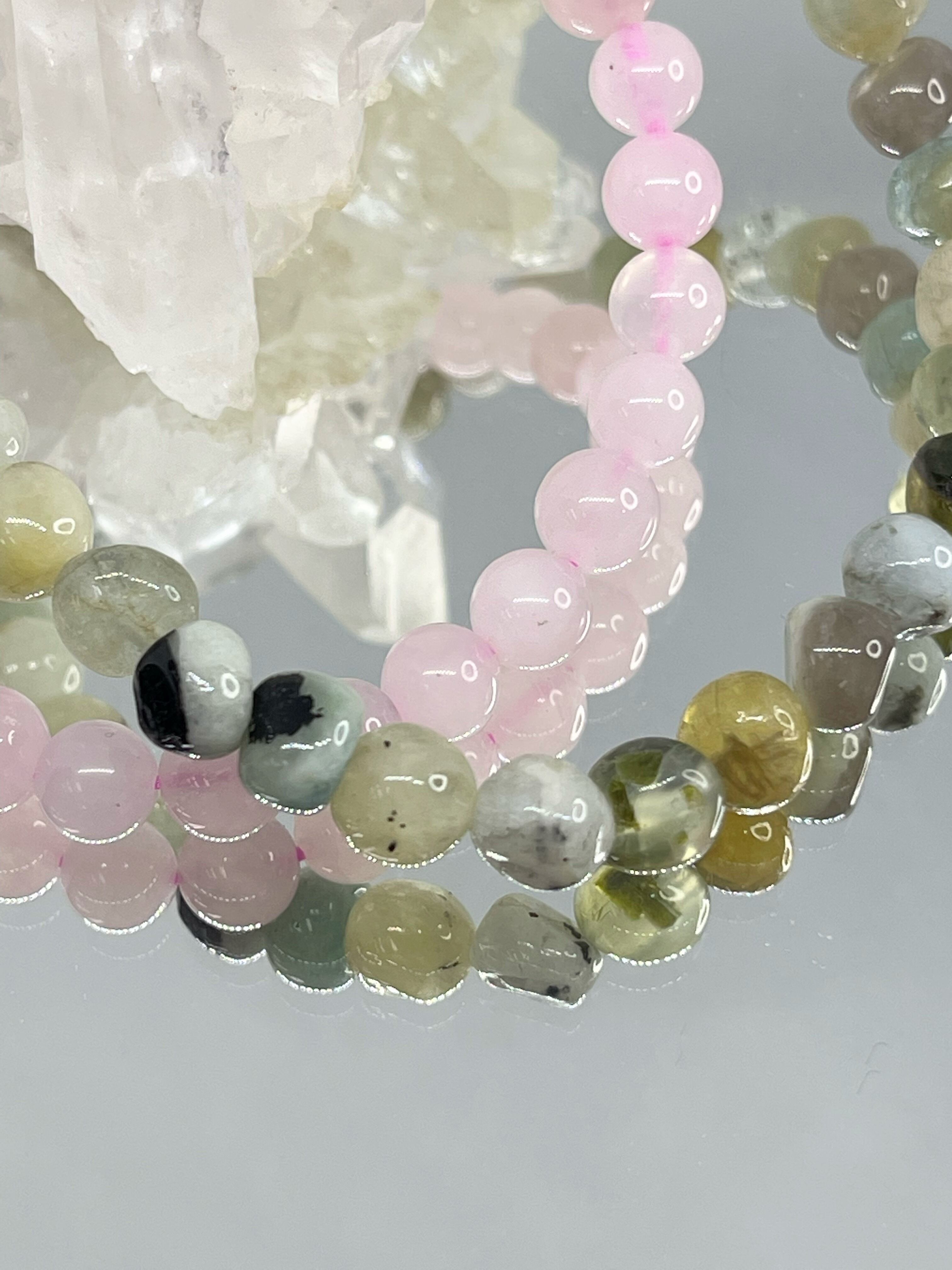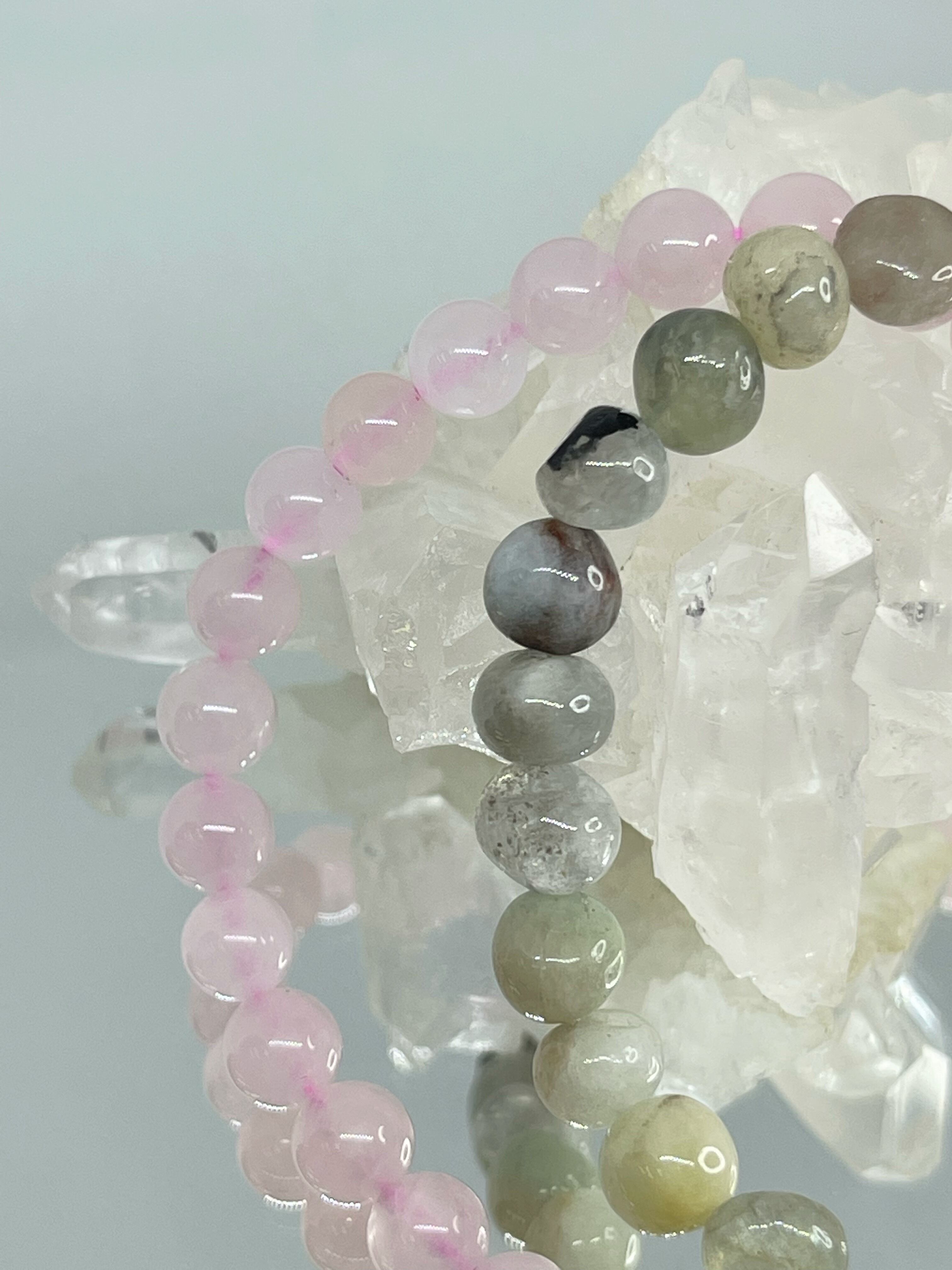 *第4チャクラのグリーンと同チャクラ、ピンクのローズクォーツをプレゼント*内径16.5/約6mm.