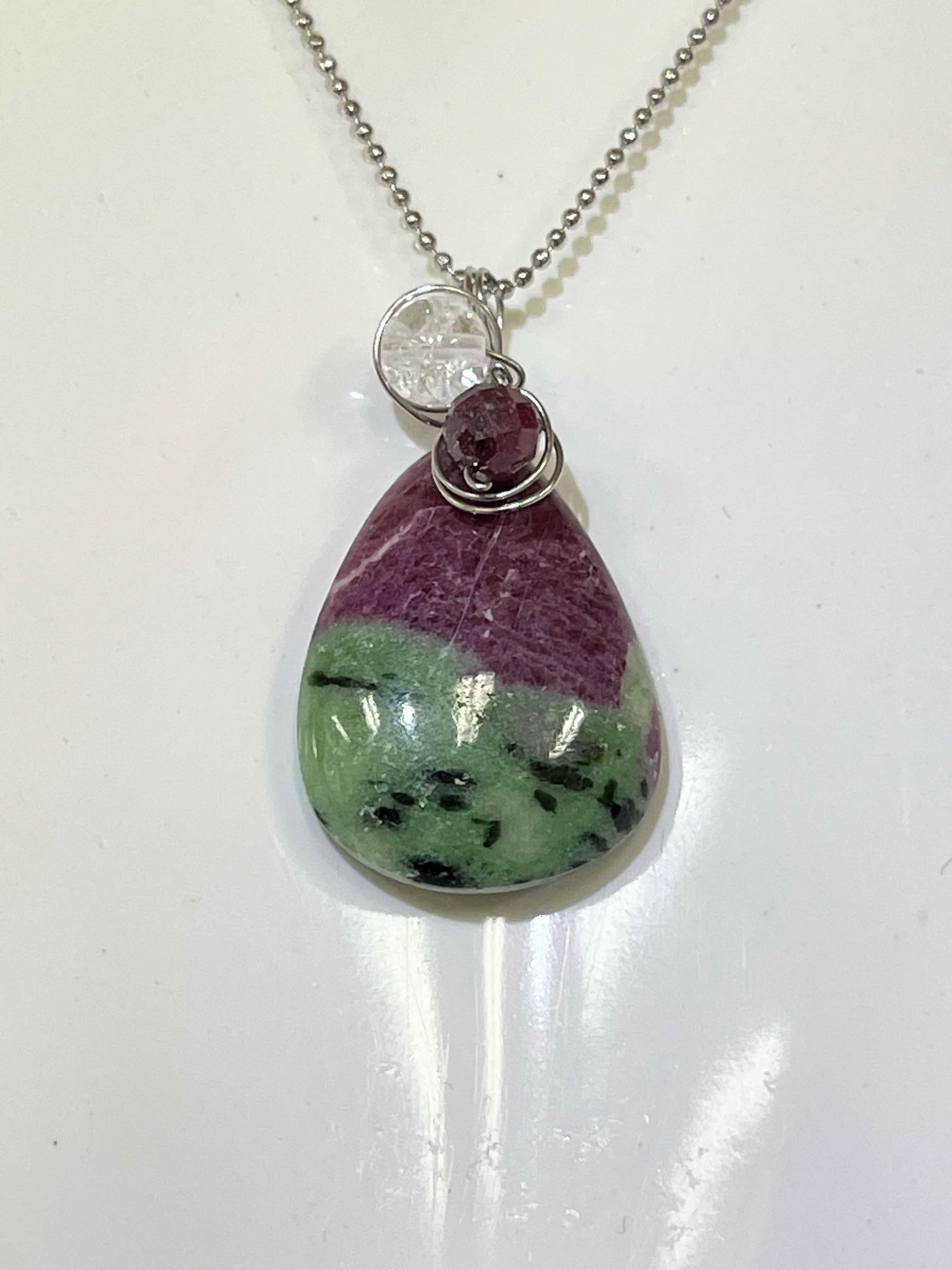 癒し、グラウディング✨☆ルビーインゾイサイト・ルビー・水晶☆ペンダントトップ