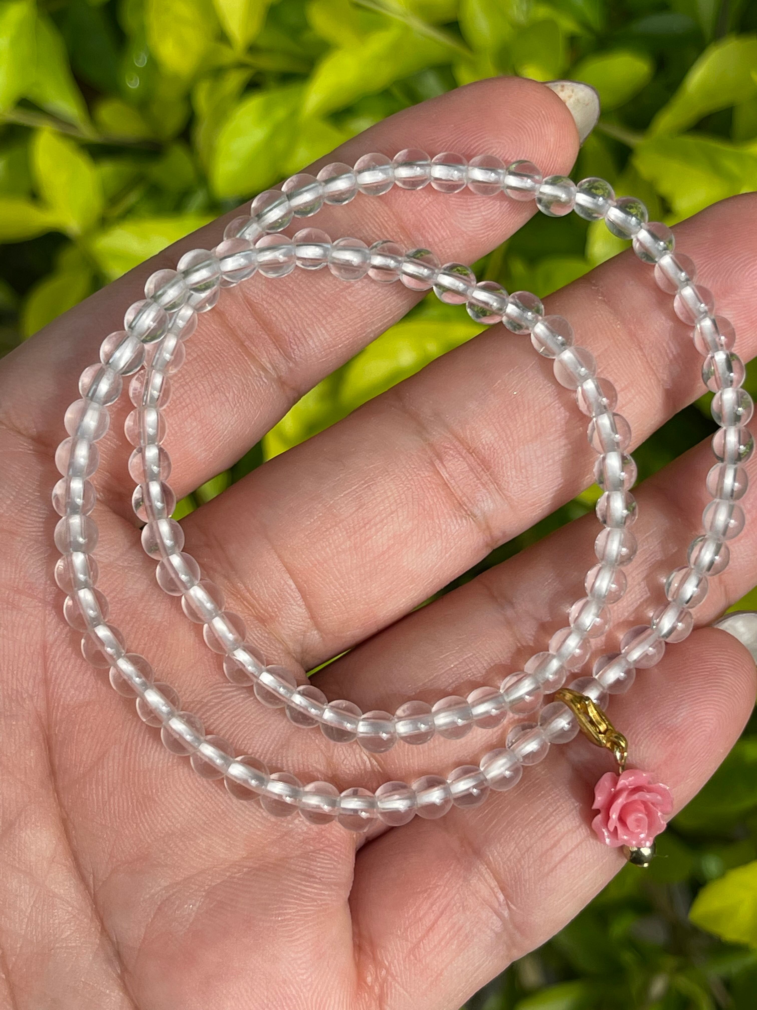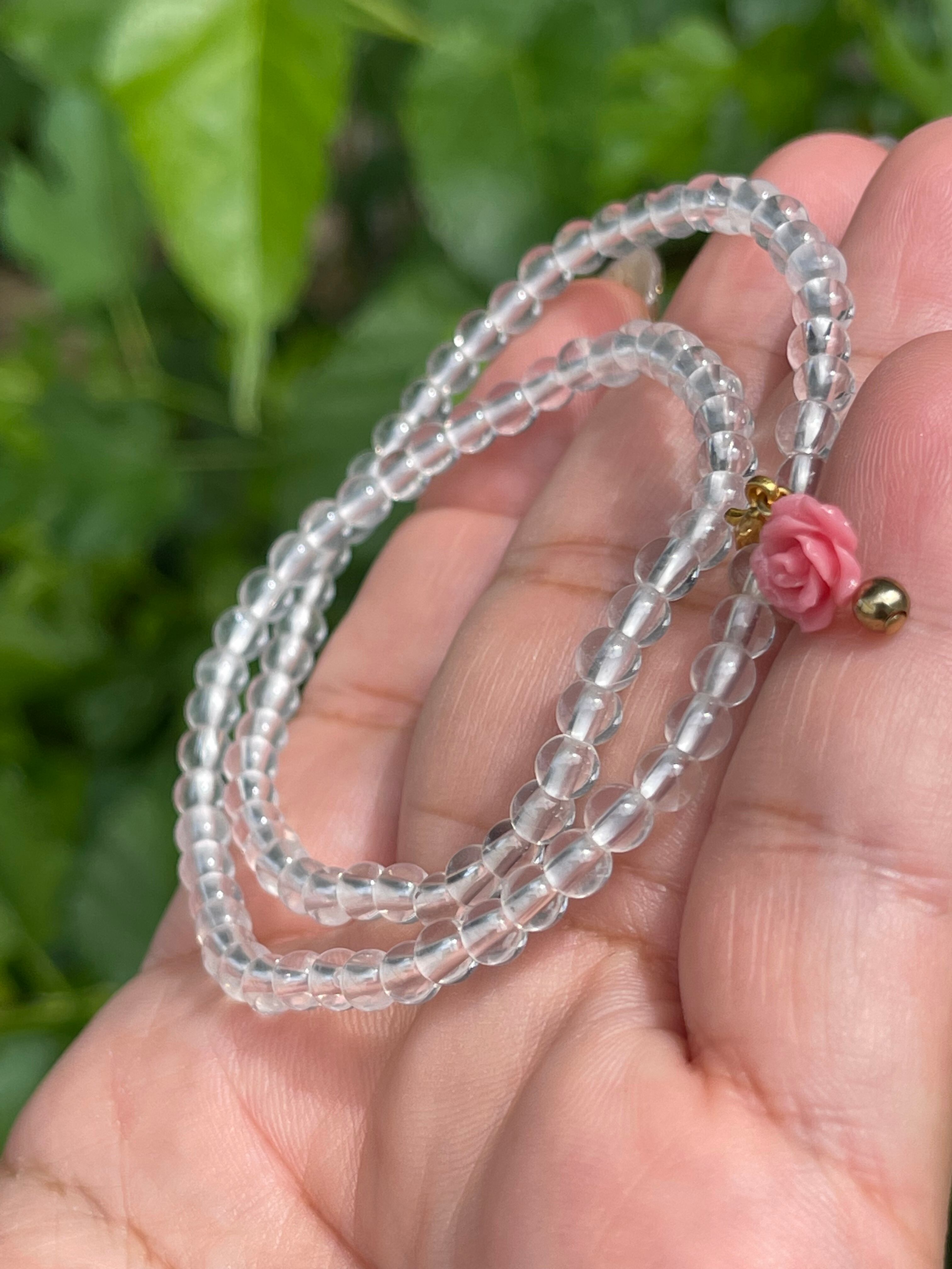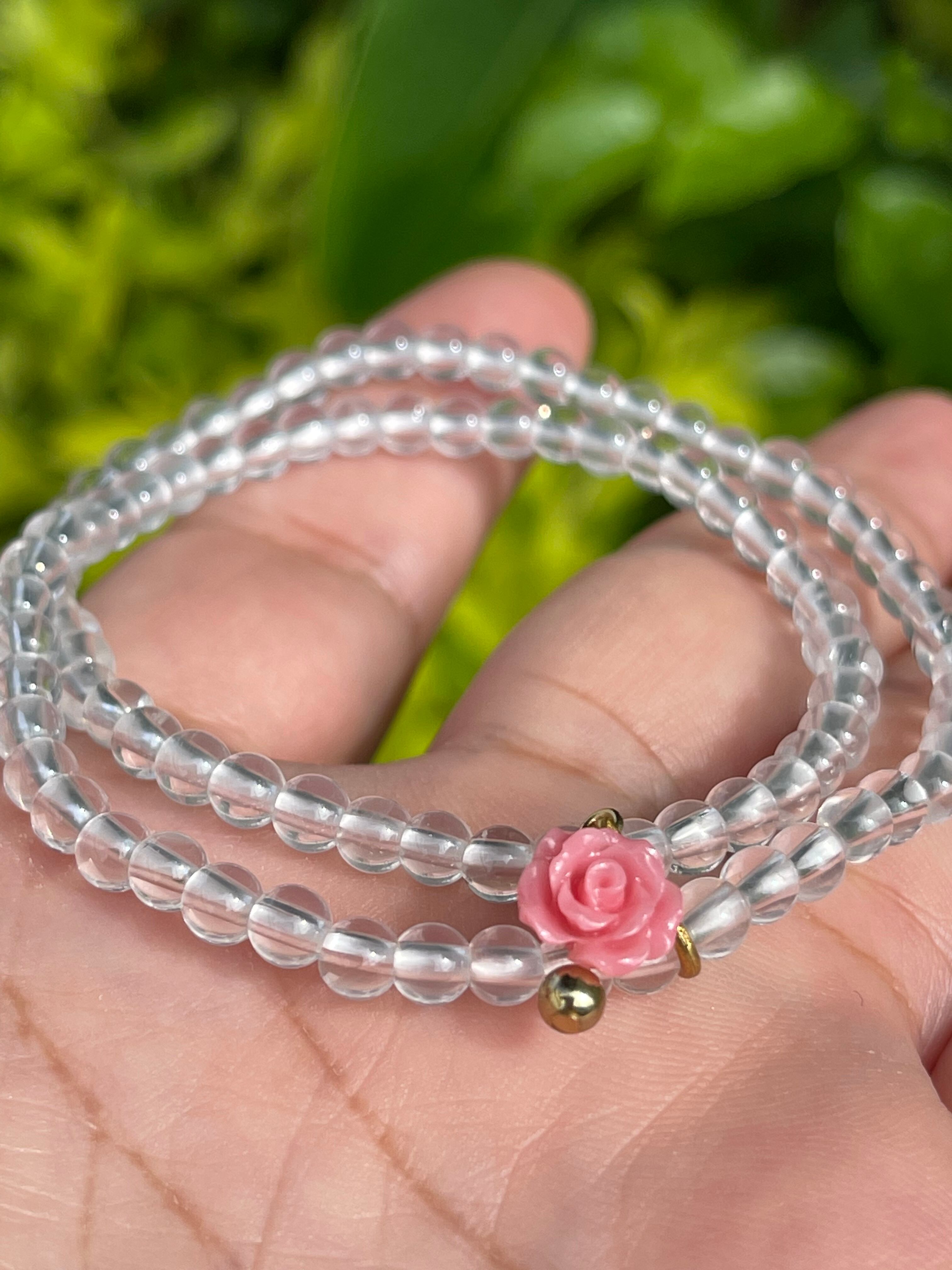 免疫力UP、開運✨☆クリスタル☆バラチャーム付き2連ブレスレット