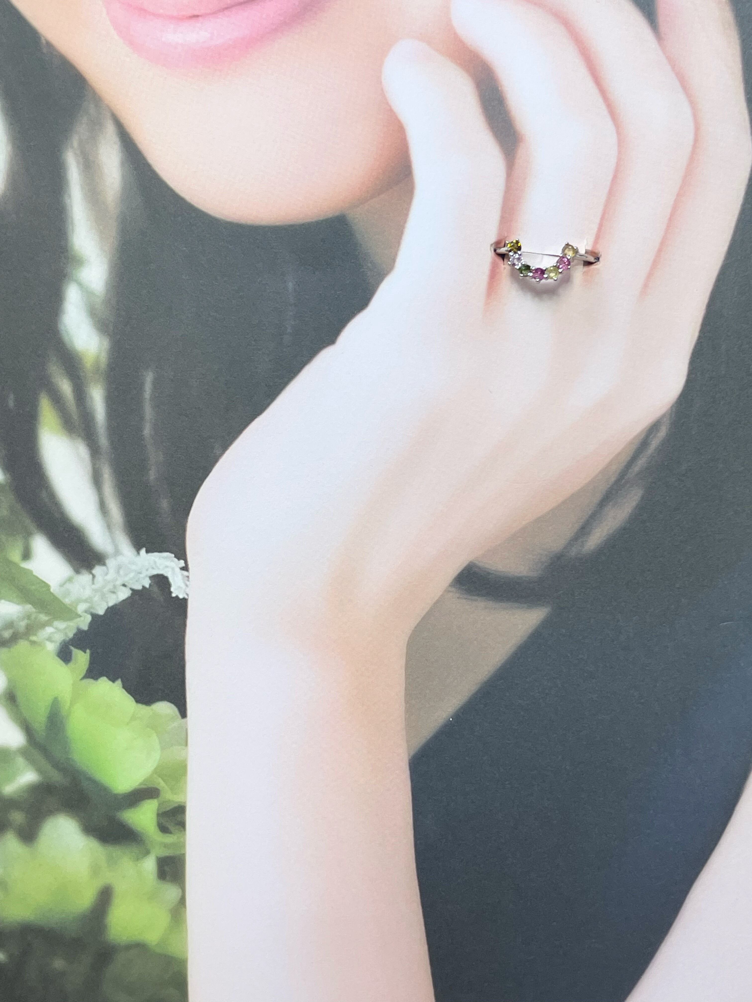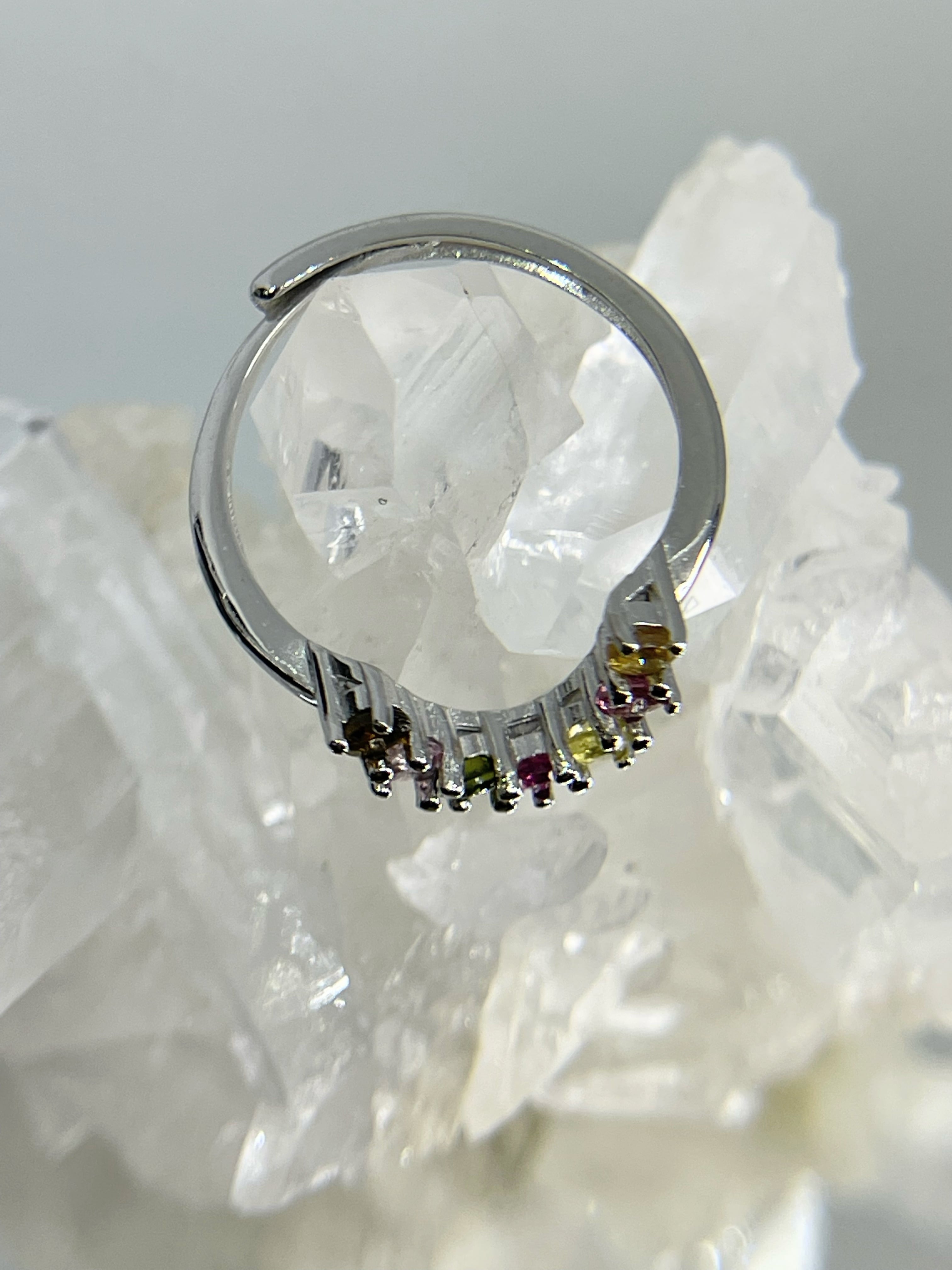 ヒラメキの石、成功へ導く✨☆マルチカラートルマリン☆真鍮フリーサイズリング