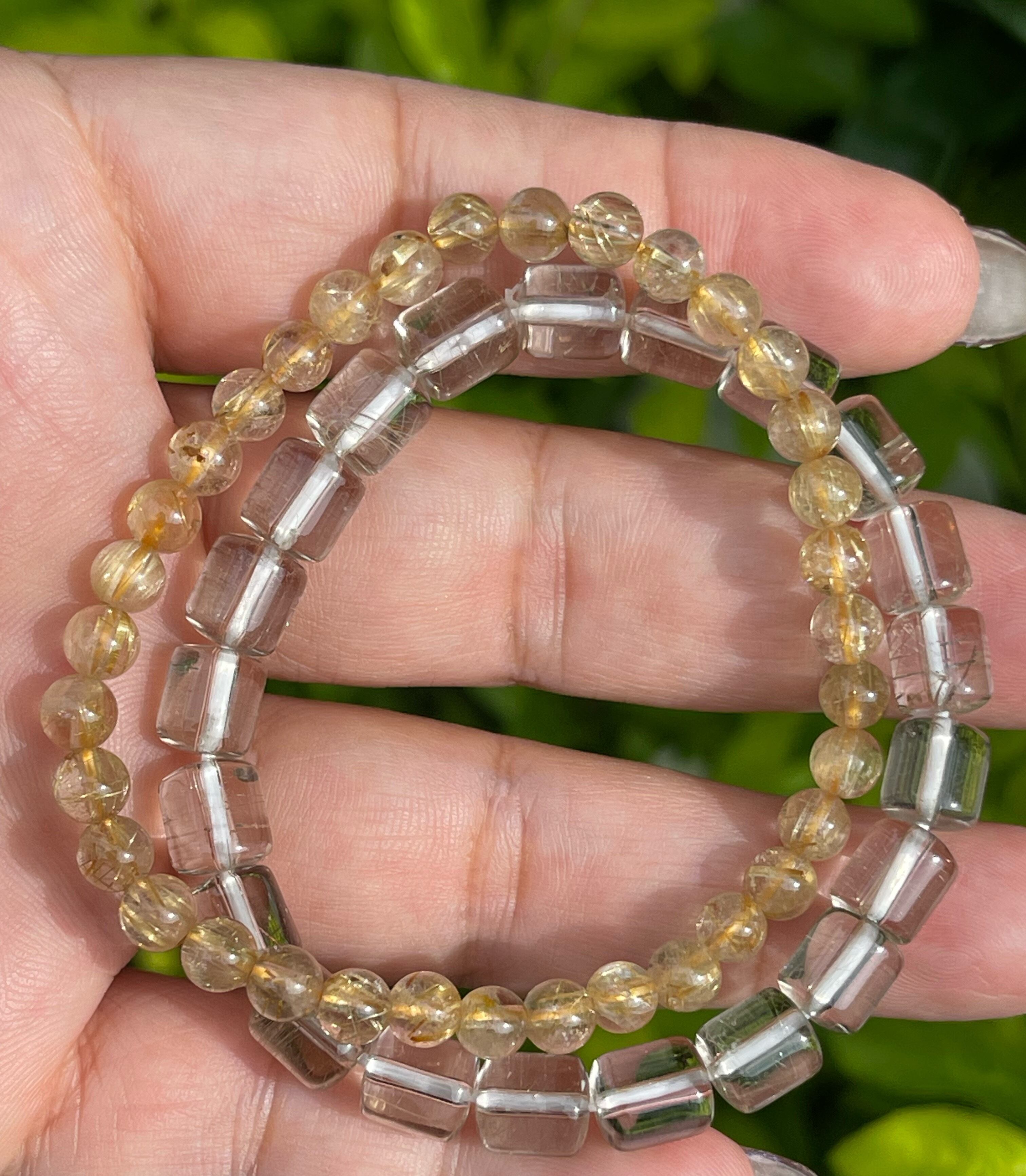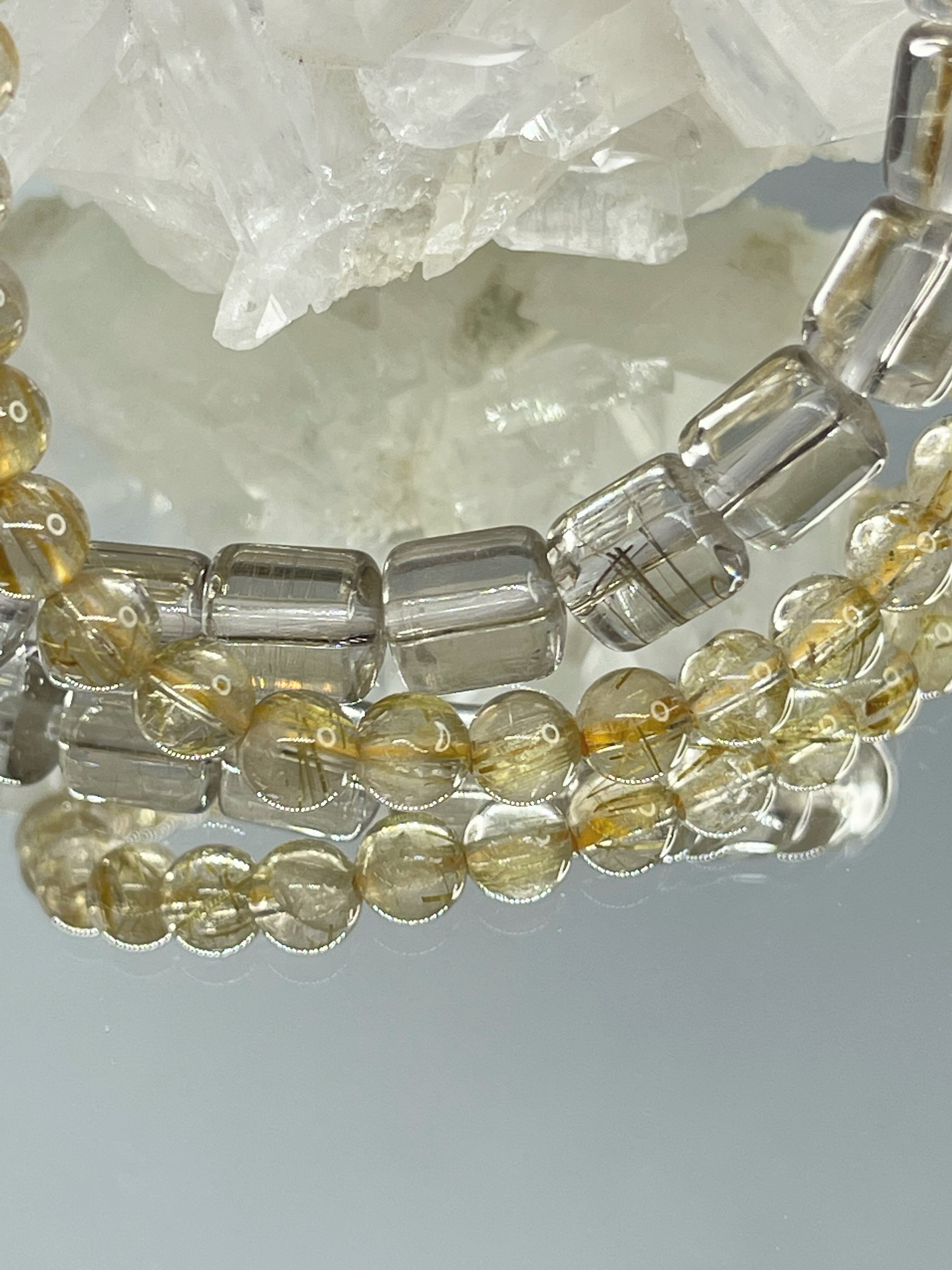 お買い得❣️金運・仕事運・魅力UP✨☆ゴールド/シルバールチルクォーツ☆セットブレス