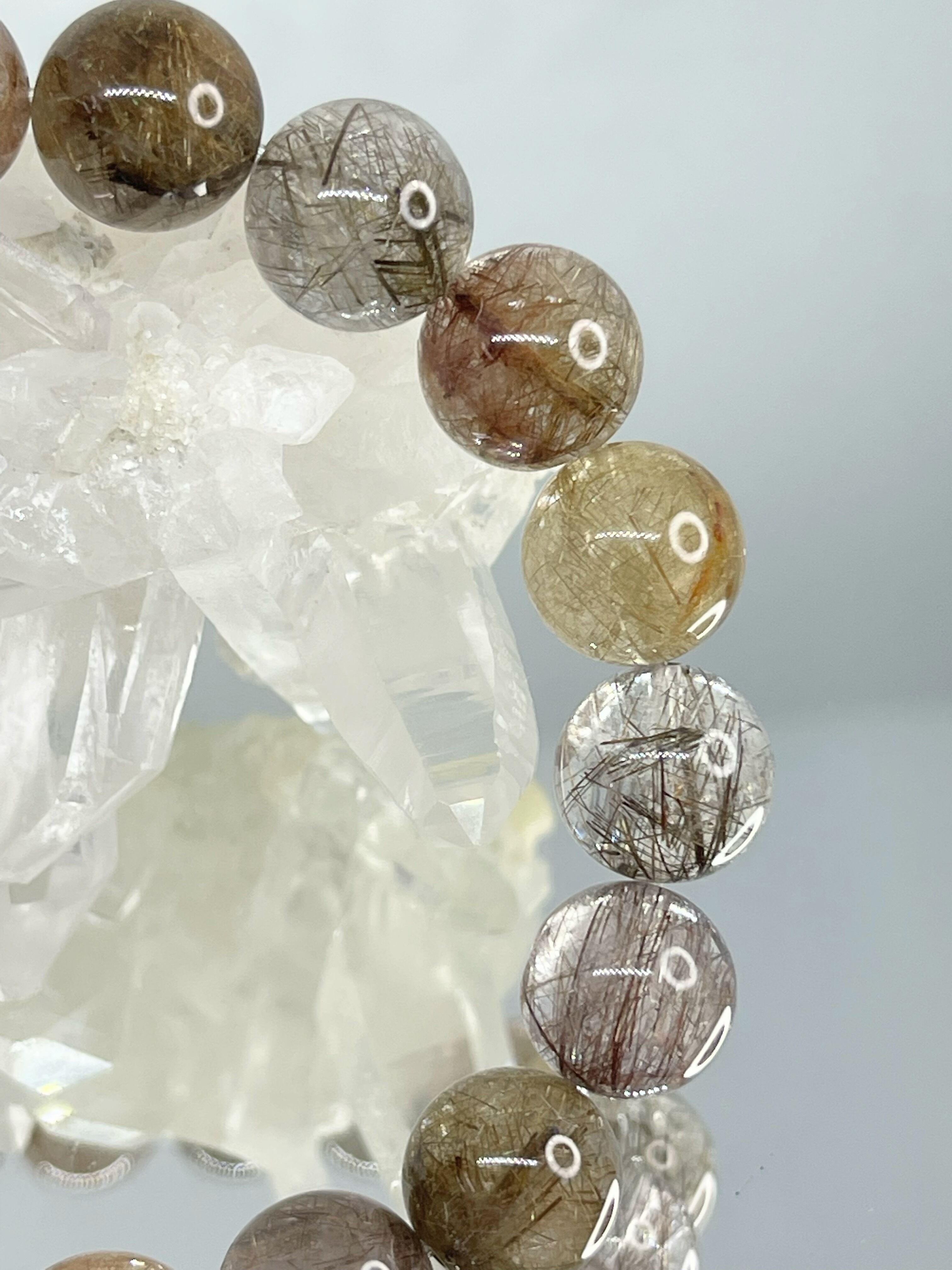 様々な色のルチルクォーツがミックスする事によって波動が大変穏やかになり、持つ人の心身を癒しながら必要なエネルギーを与えてくれると言われます。