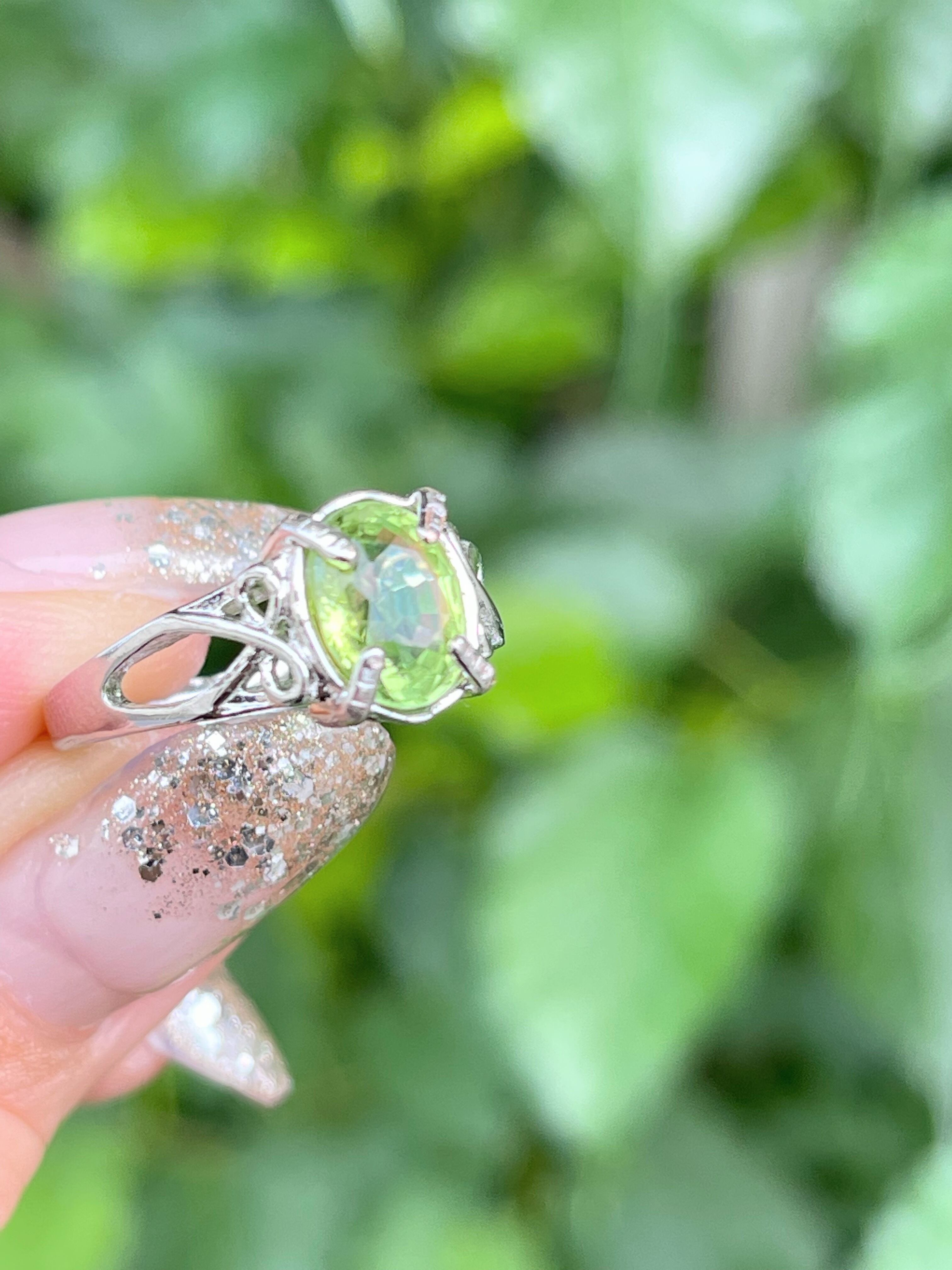 美しい黄緑色で、輝きが強いことから「イブニングエメラルド」の別名を持ちます。太陽よような明るさでパワーで希望を与えてくれます。マイナスエネルギーから遠ざけ、夢を実現してくれると言われています。