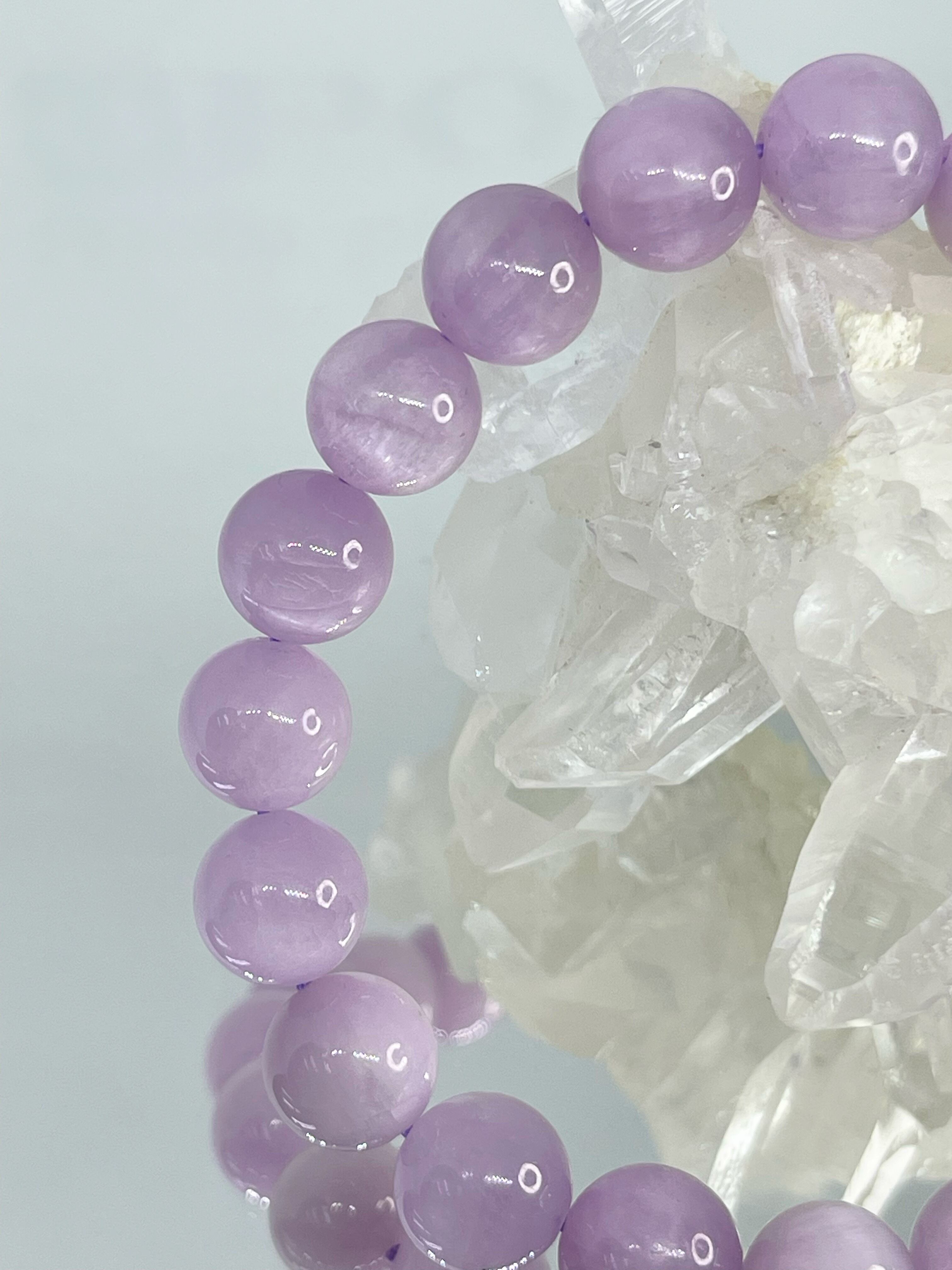 紫がかった、薄いピンク色の石で可憐な色合いが女性に人気の石です。