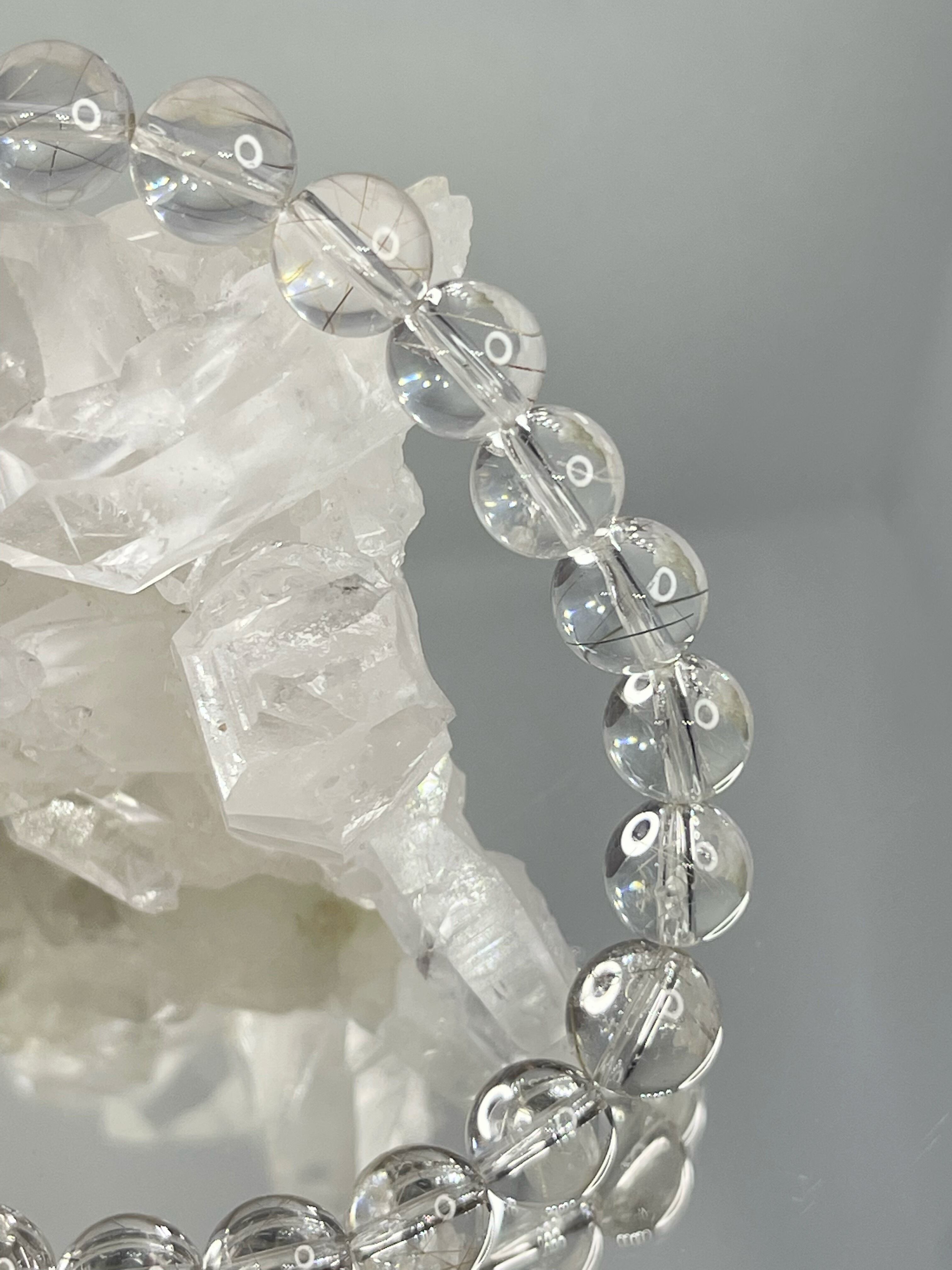 水晶の中にルチル(金紅石)を内包した天然石です。針状、または繊維状に内包され独特の輝きを放つのが特徴です。金運アップにもっとも力を発揮すると信じられています。