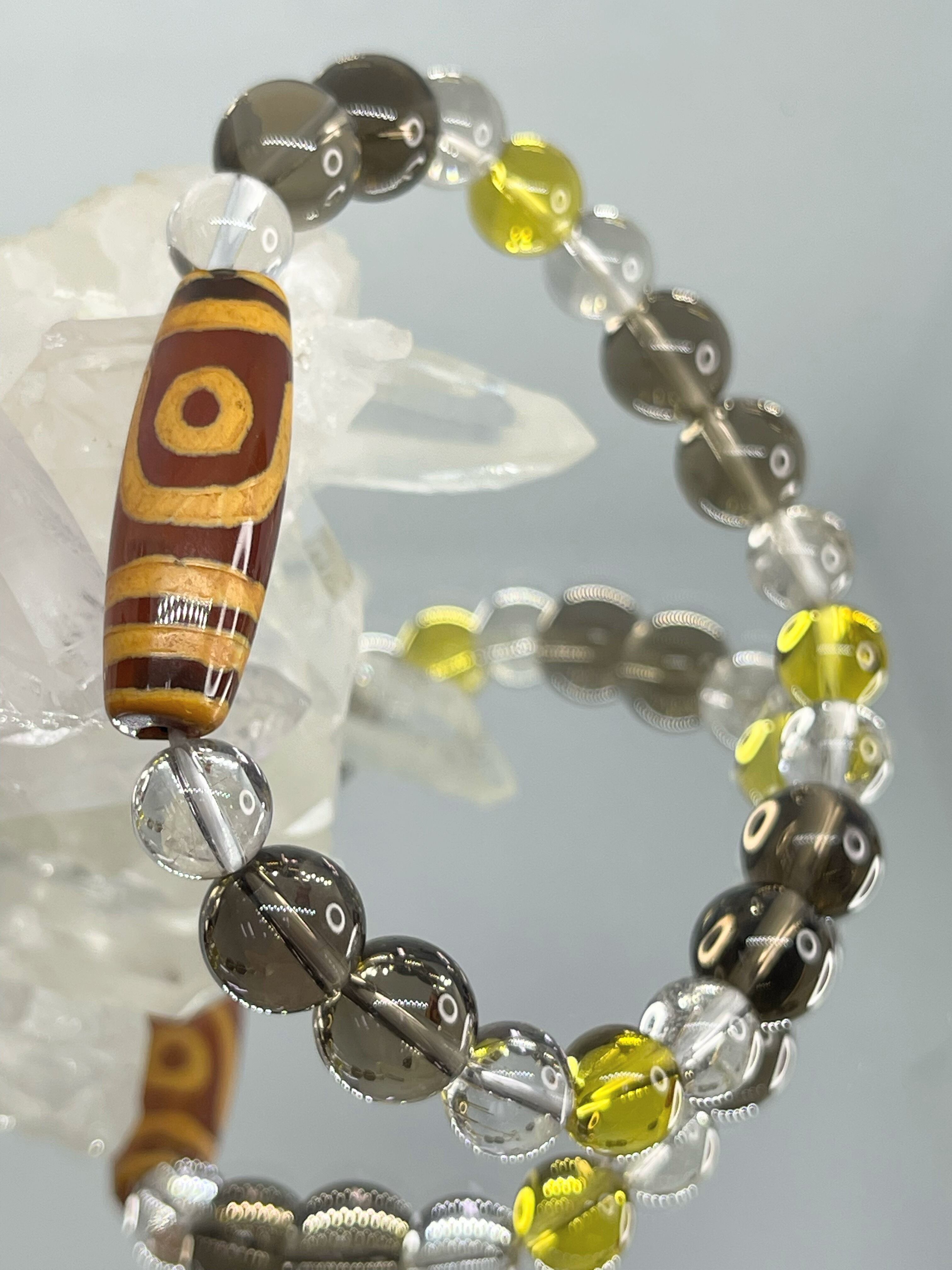 金運UP・魔除け✨☆二眼天珠・シトリン・スモーキークォーツ・針入り水晶☆ブレスレット