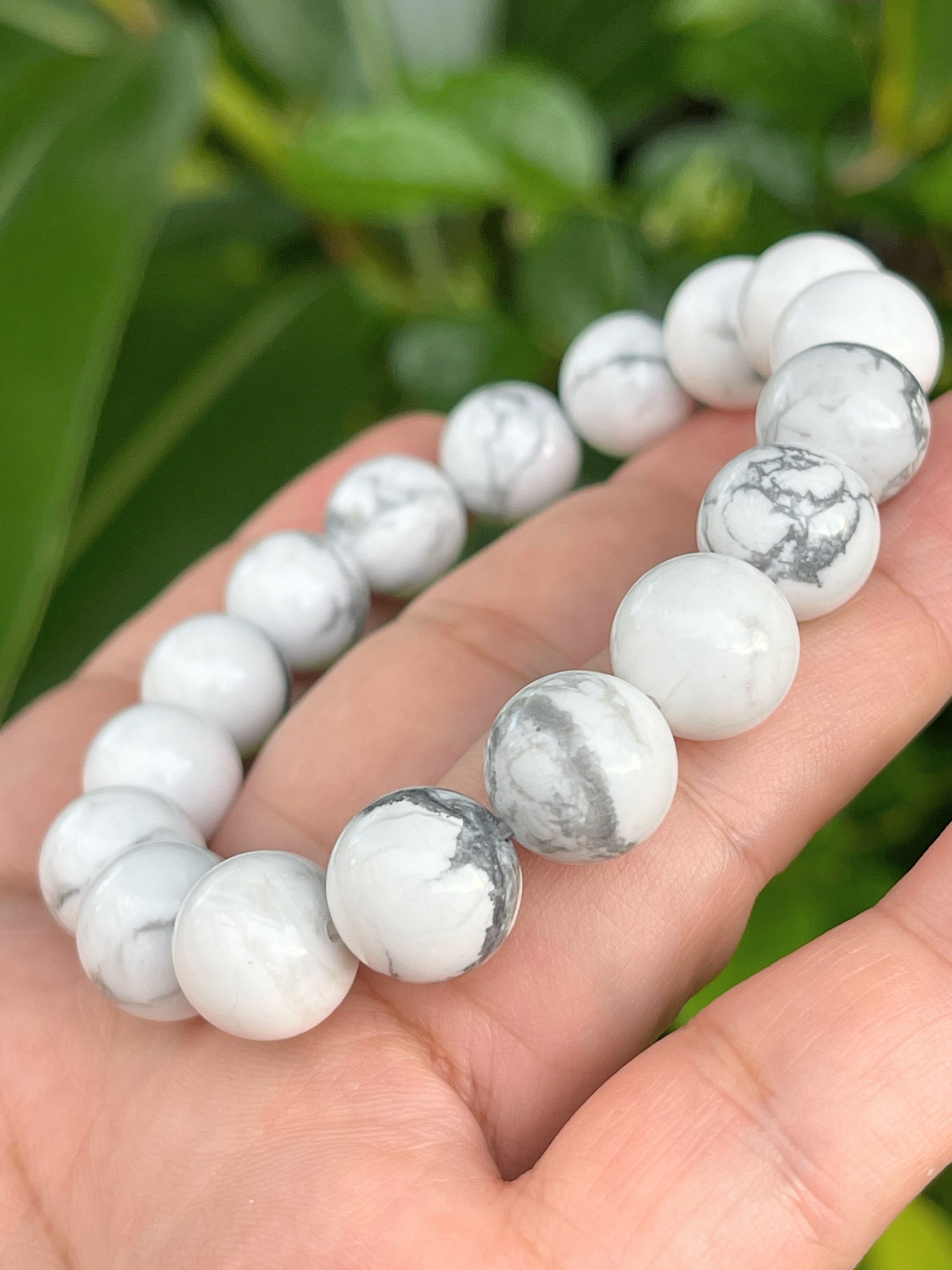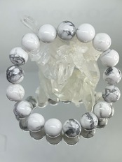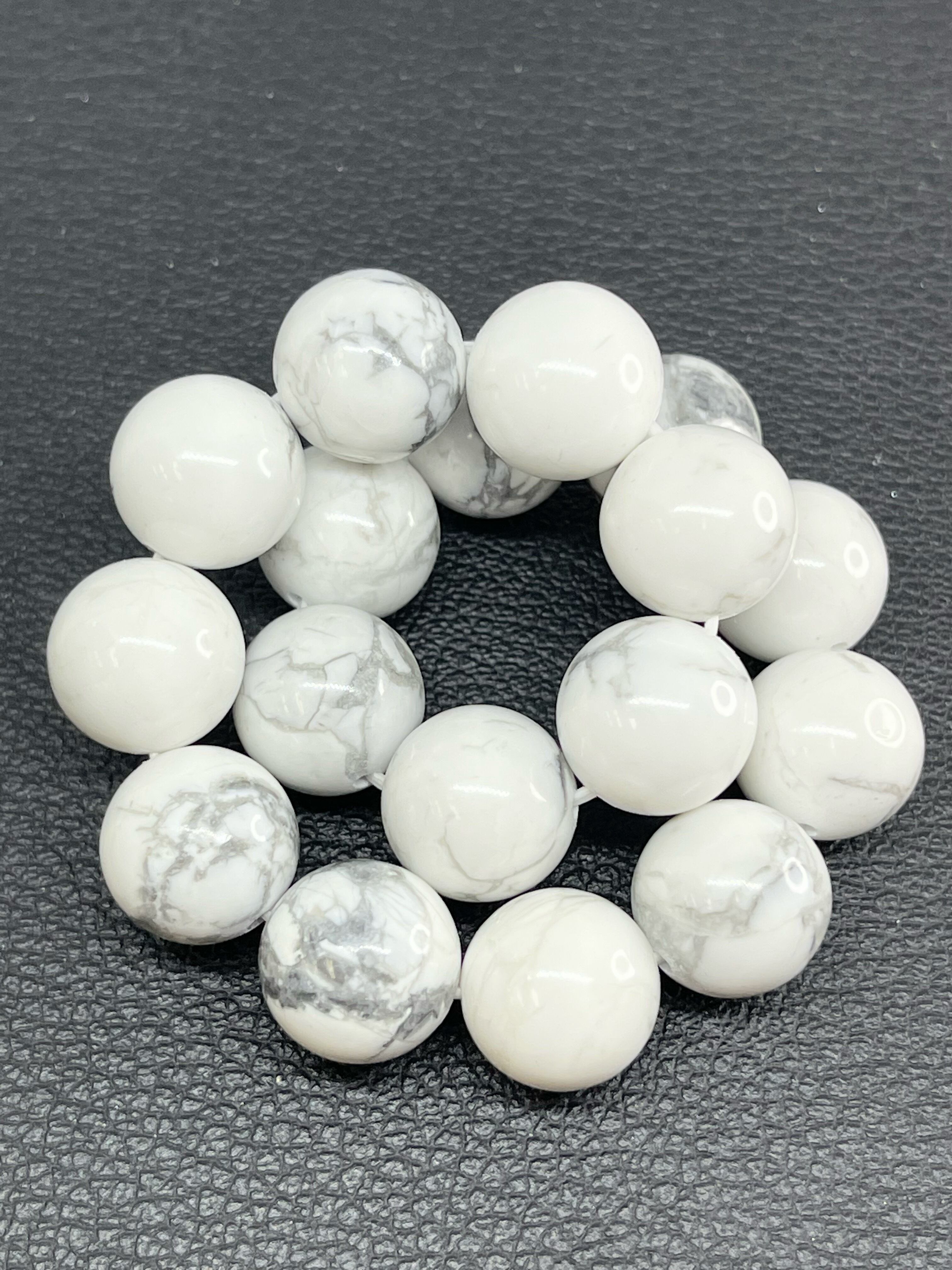 基本白い色のパワーストーンに黒の蜘蛛の巣の様な模様が特徴的で、1粒づつ模様は異なります。染色しやすい為、ブルーに染めたマグネサイトターコイズが人気です。