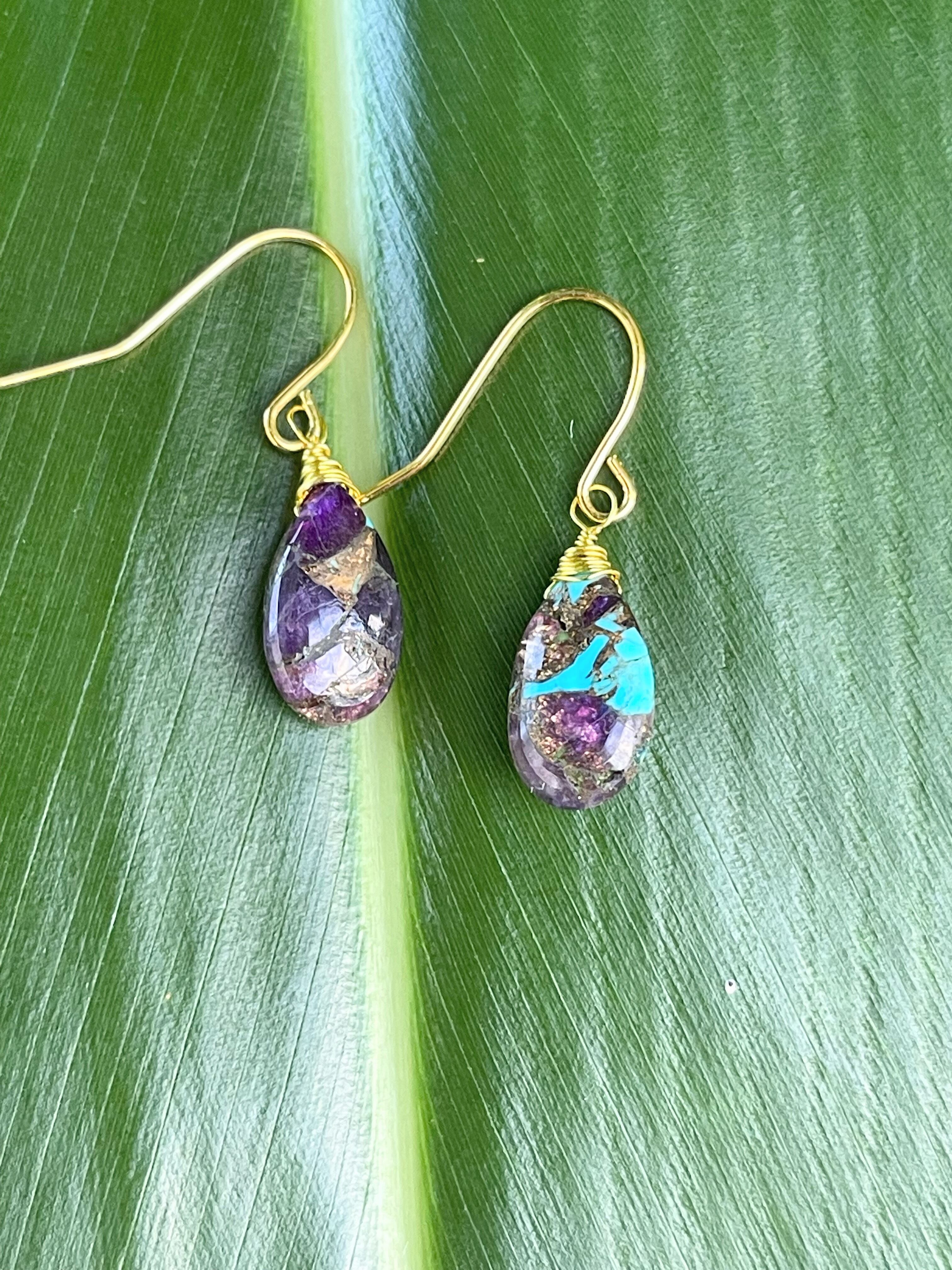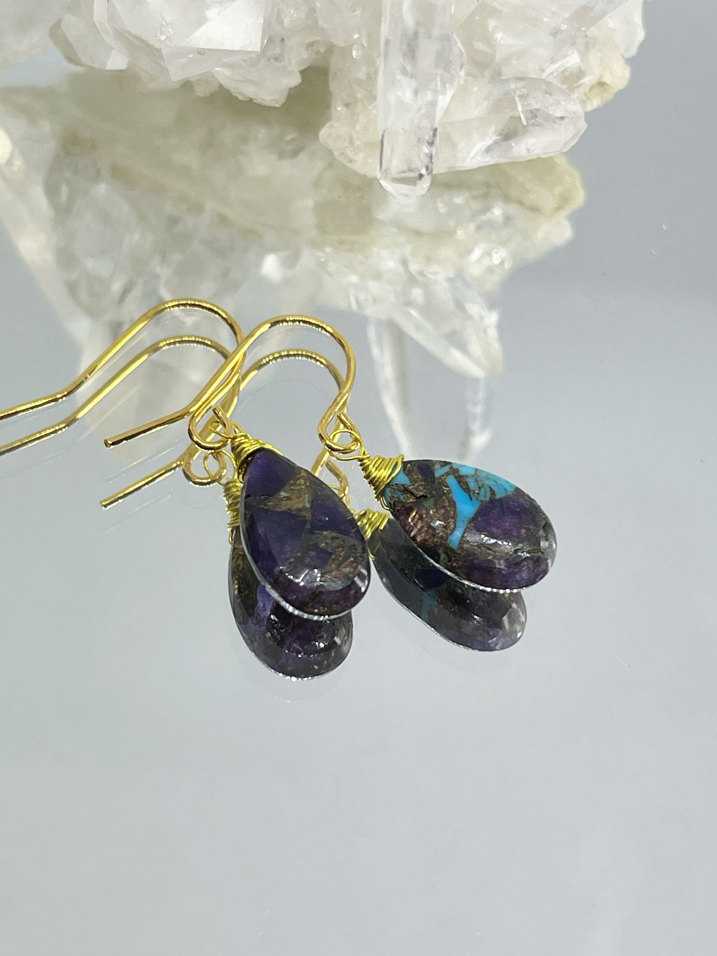 幸運の連鎖で幸せ体質✨☆コッパー・アメジスト・ターコイズ☆ニッケルフリーピアス