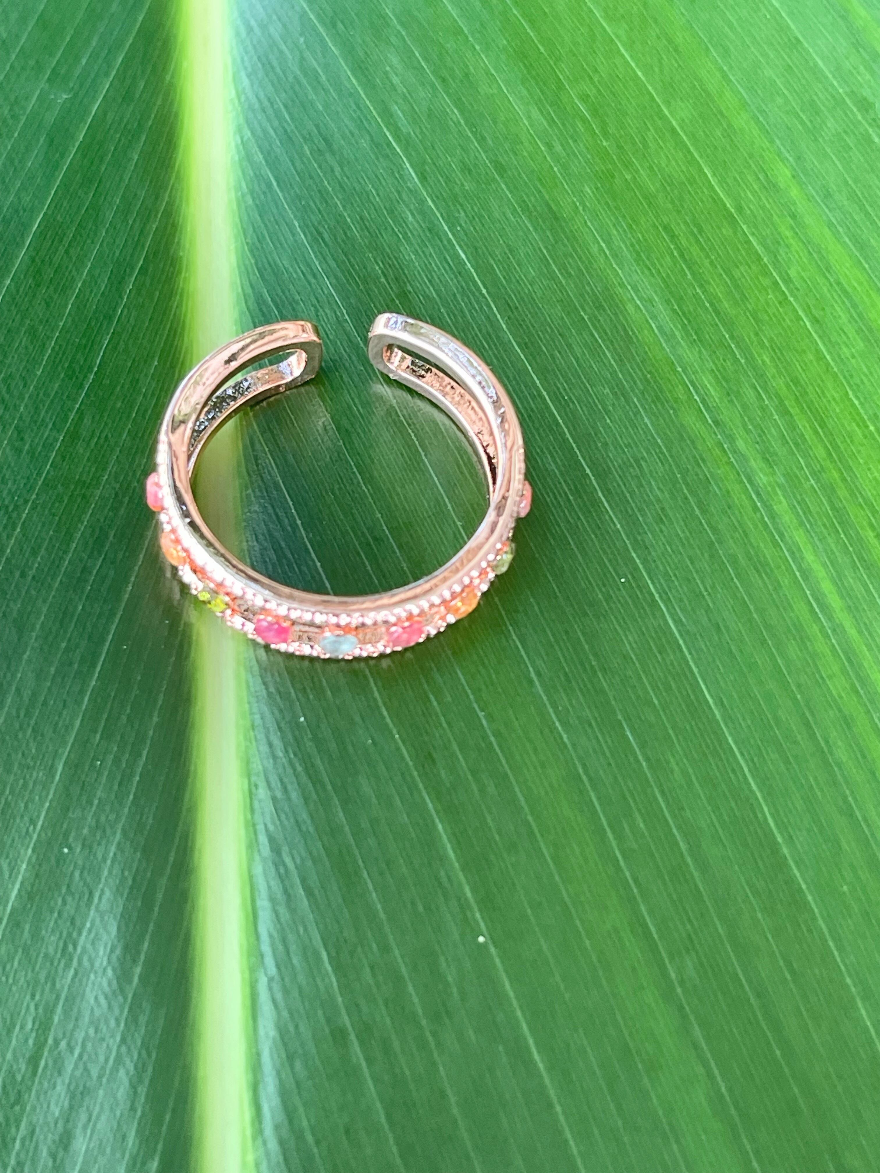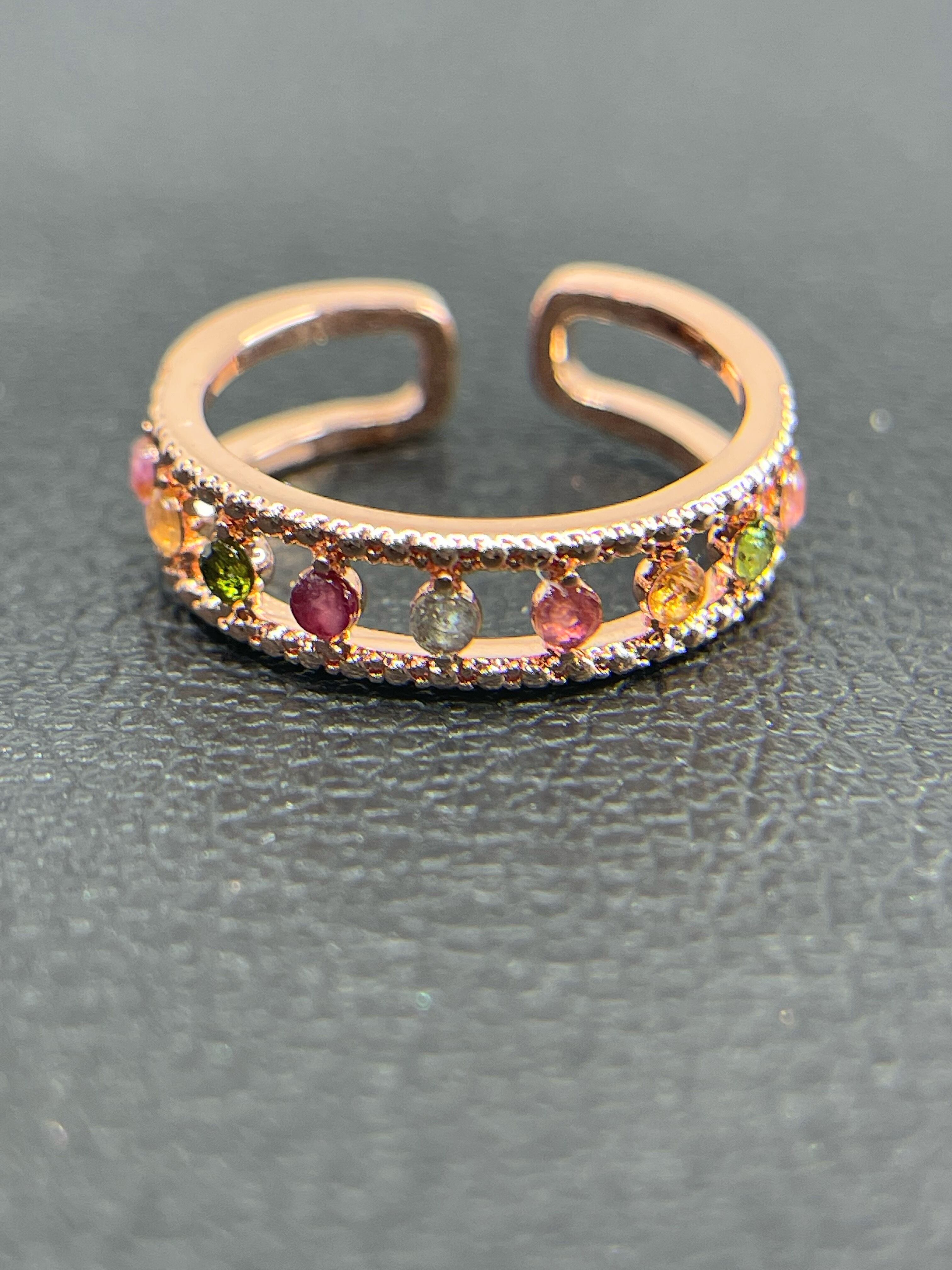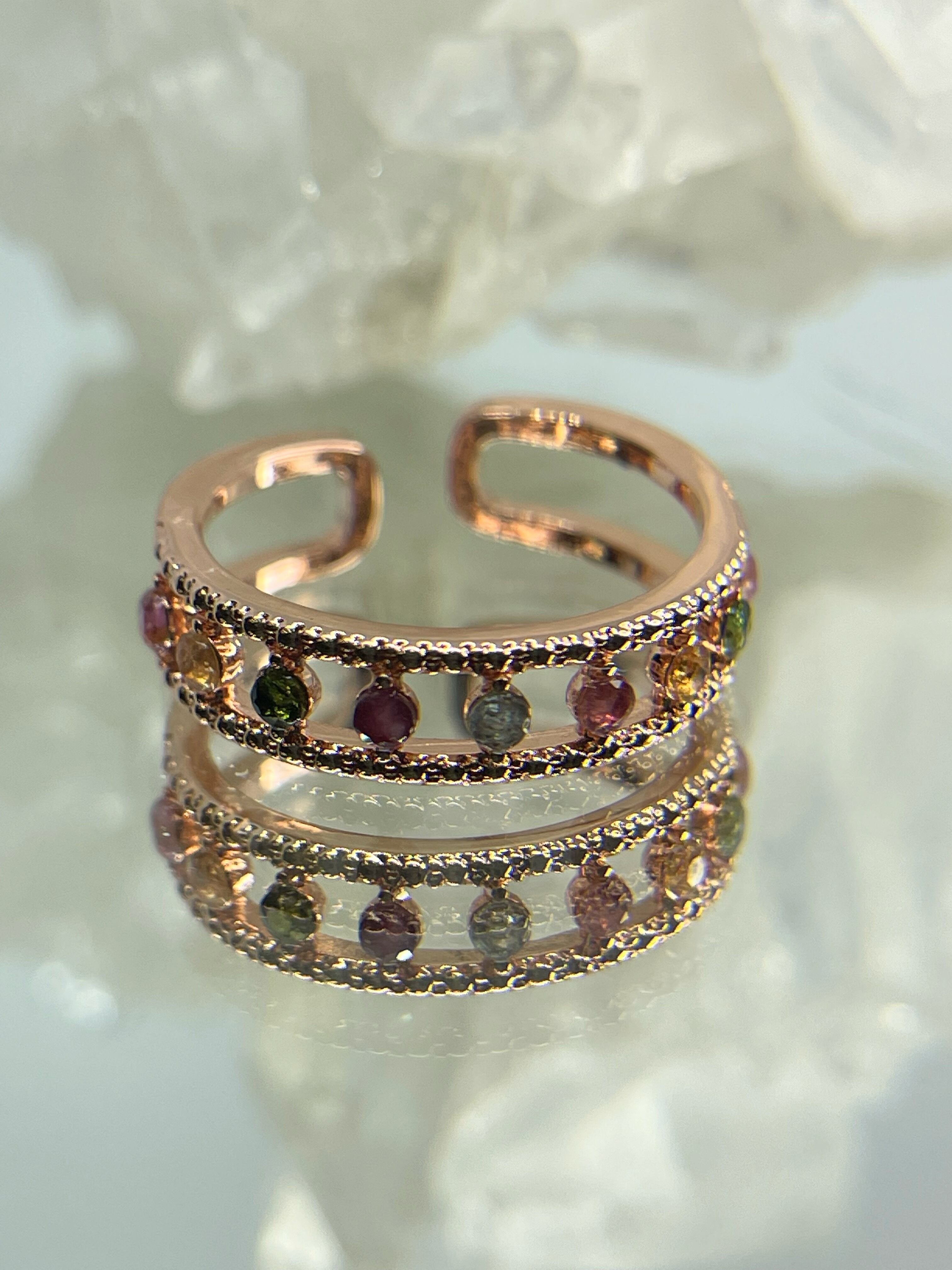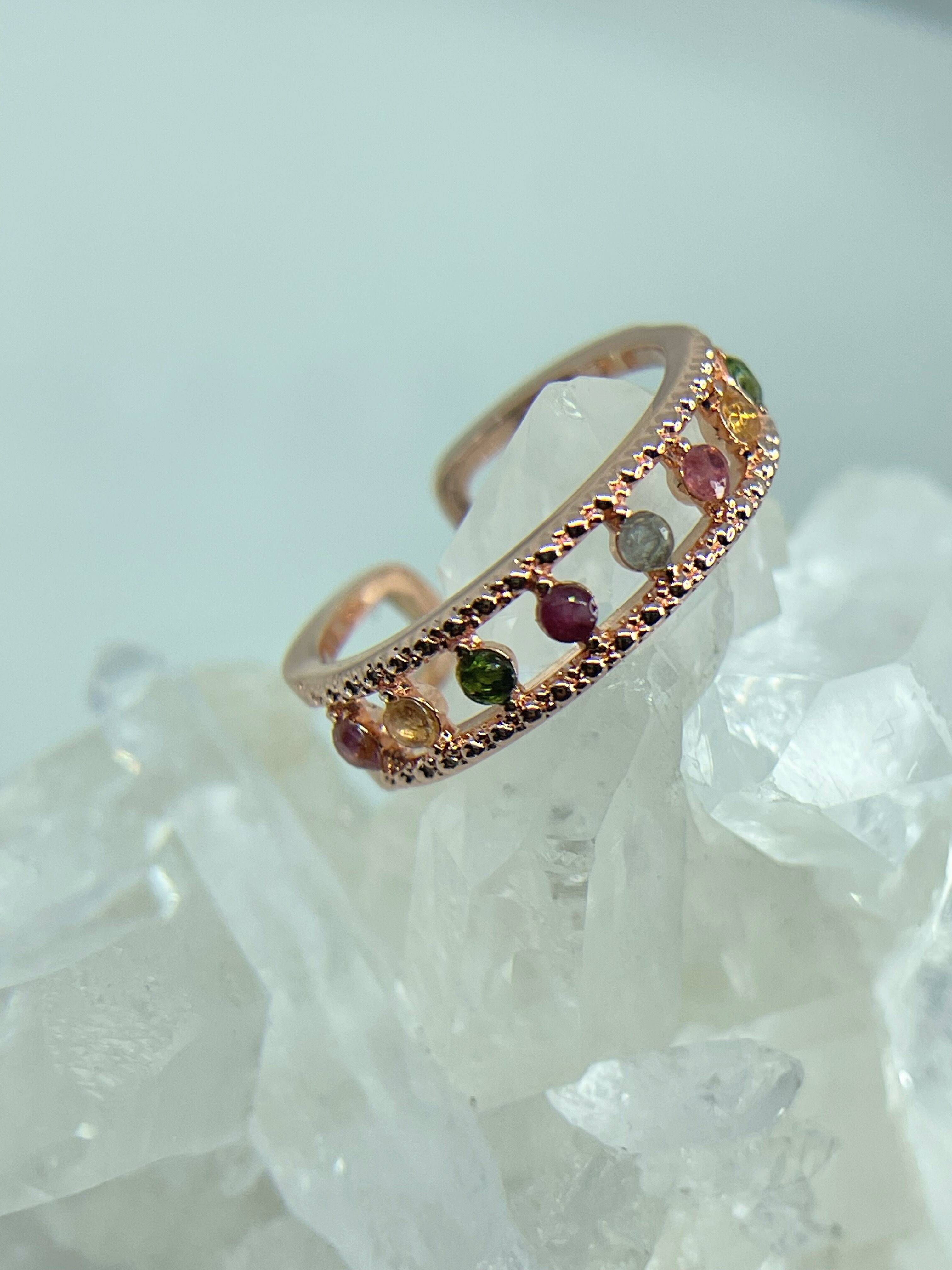 ヒラメキ✨☆マルチカラートルマリン☆ピンクゴールドカラー真鍮リング
