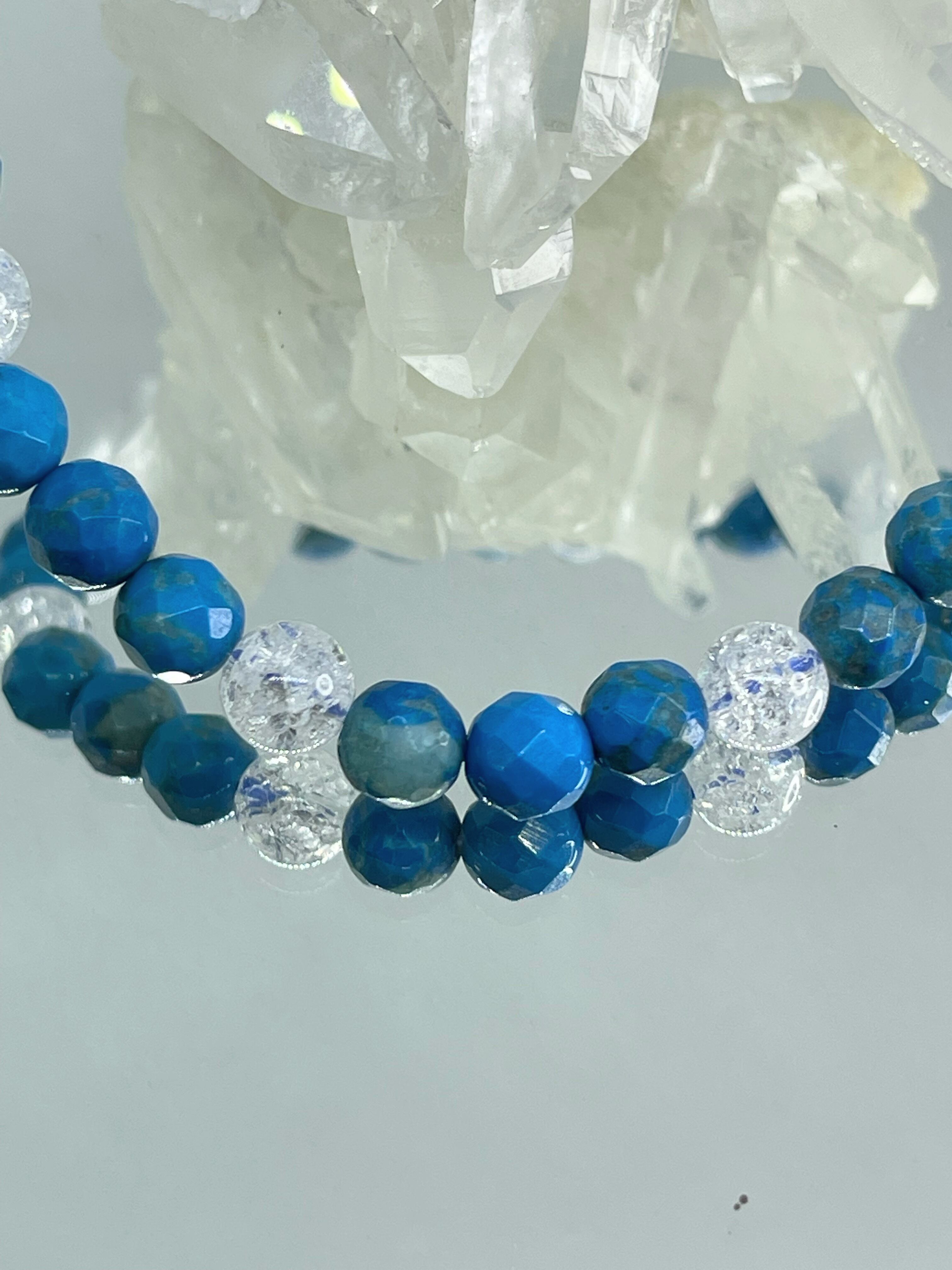コミュニケーション能力UP✨☆マグネサイトターコイズ・クラック水晶☆ブレスレット