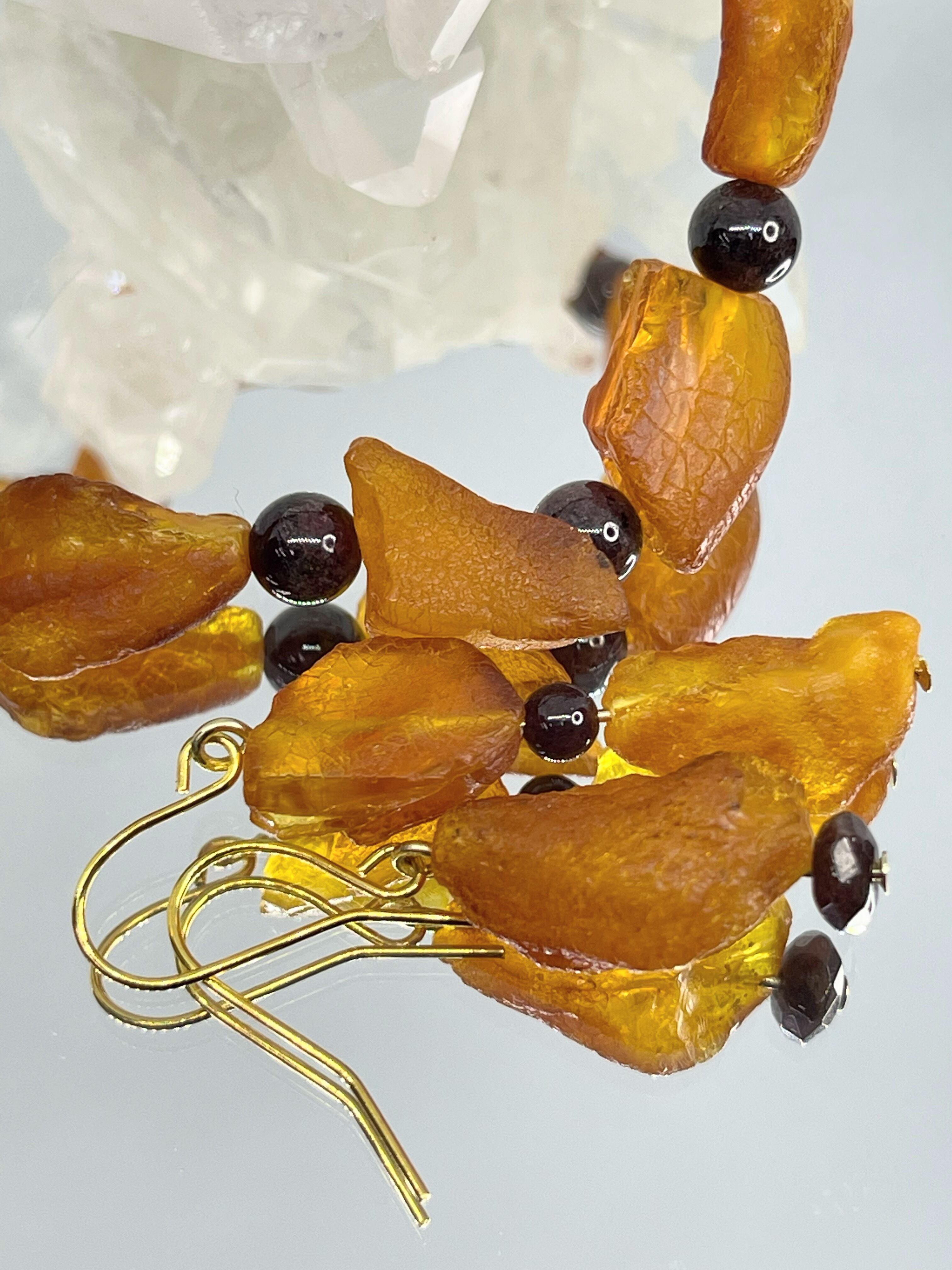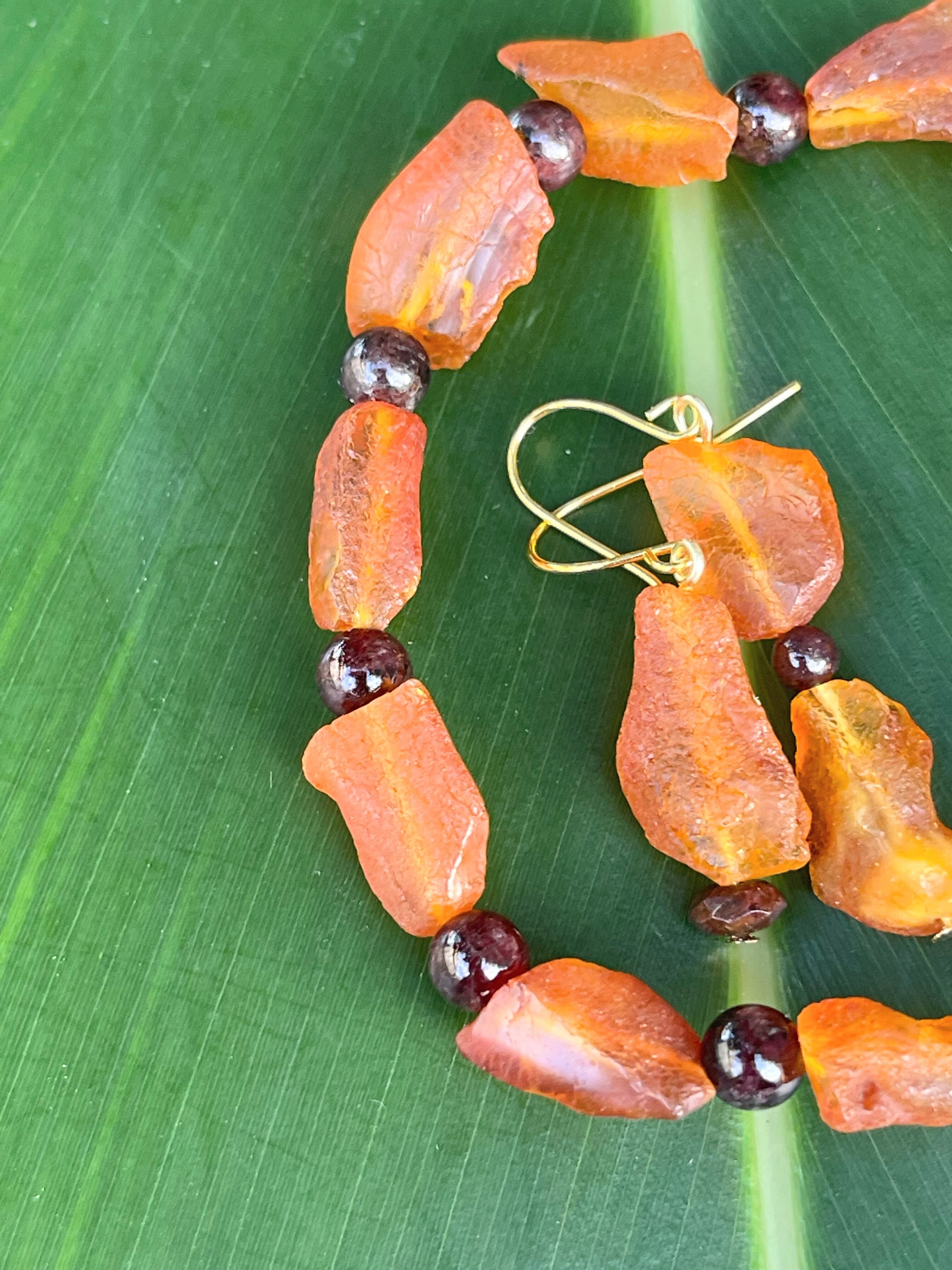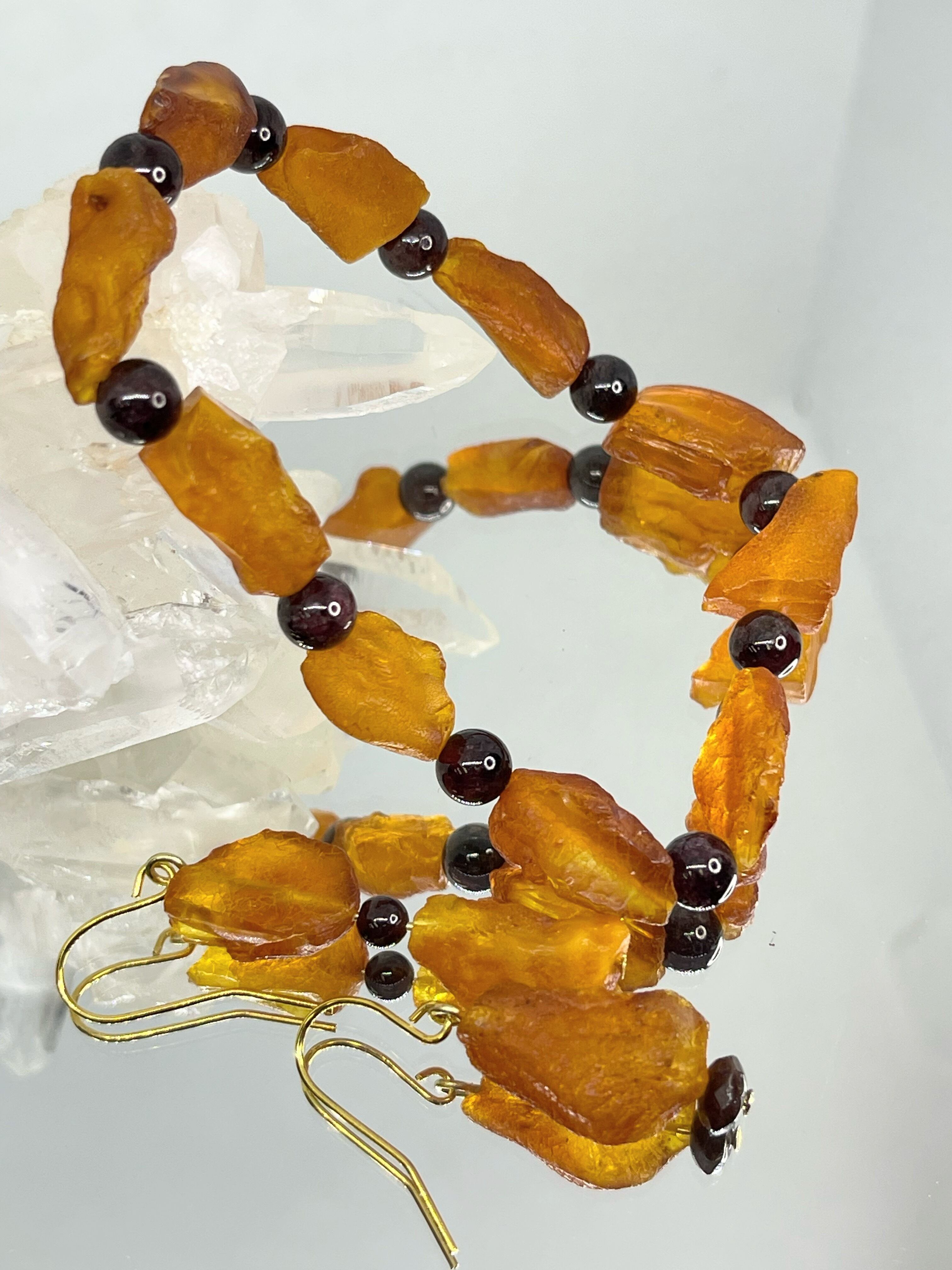 活力・健康運UP✨☆アンバー・ガーネット☆ブレスレット&ピアス