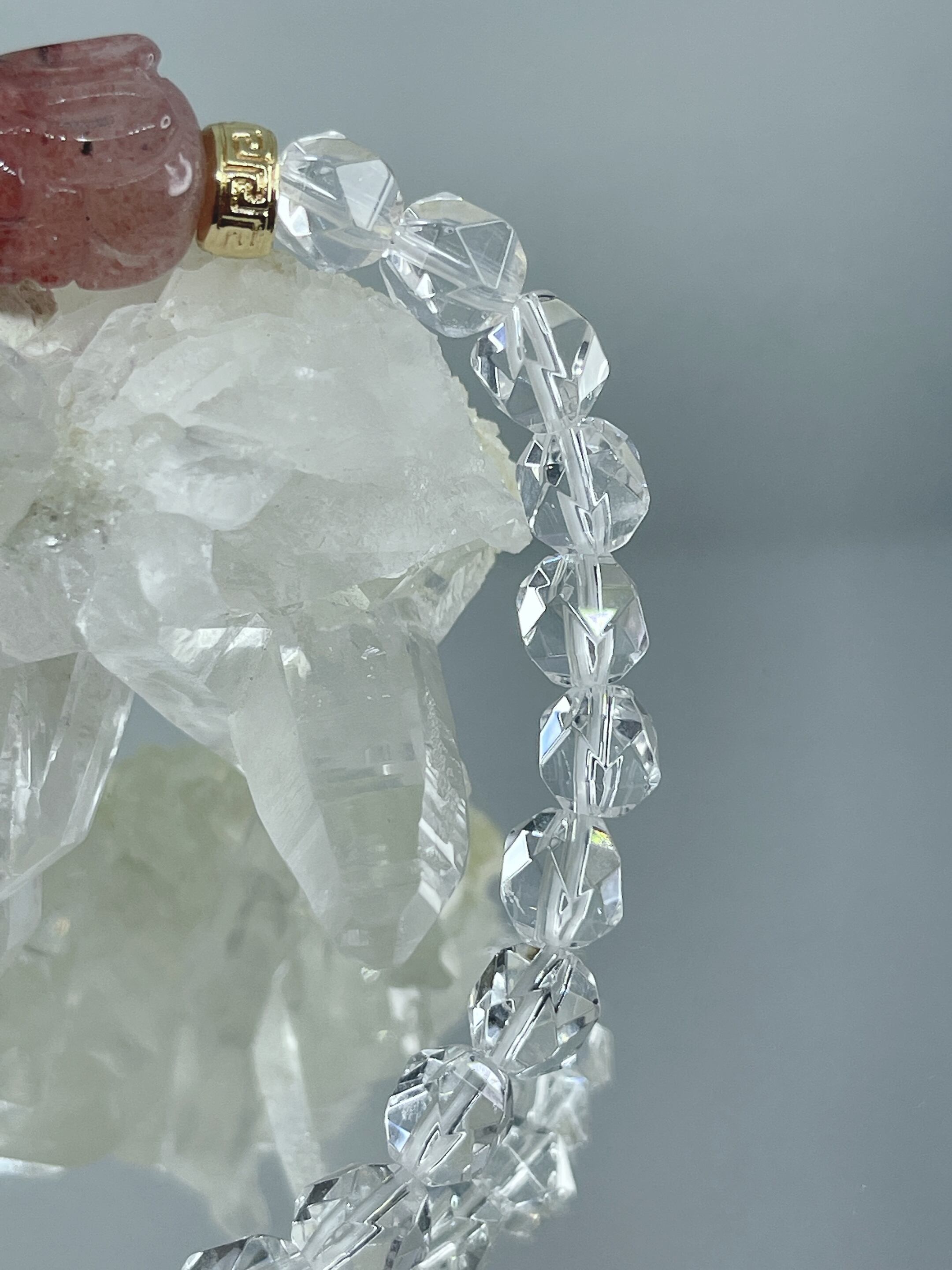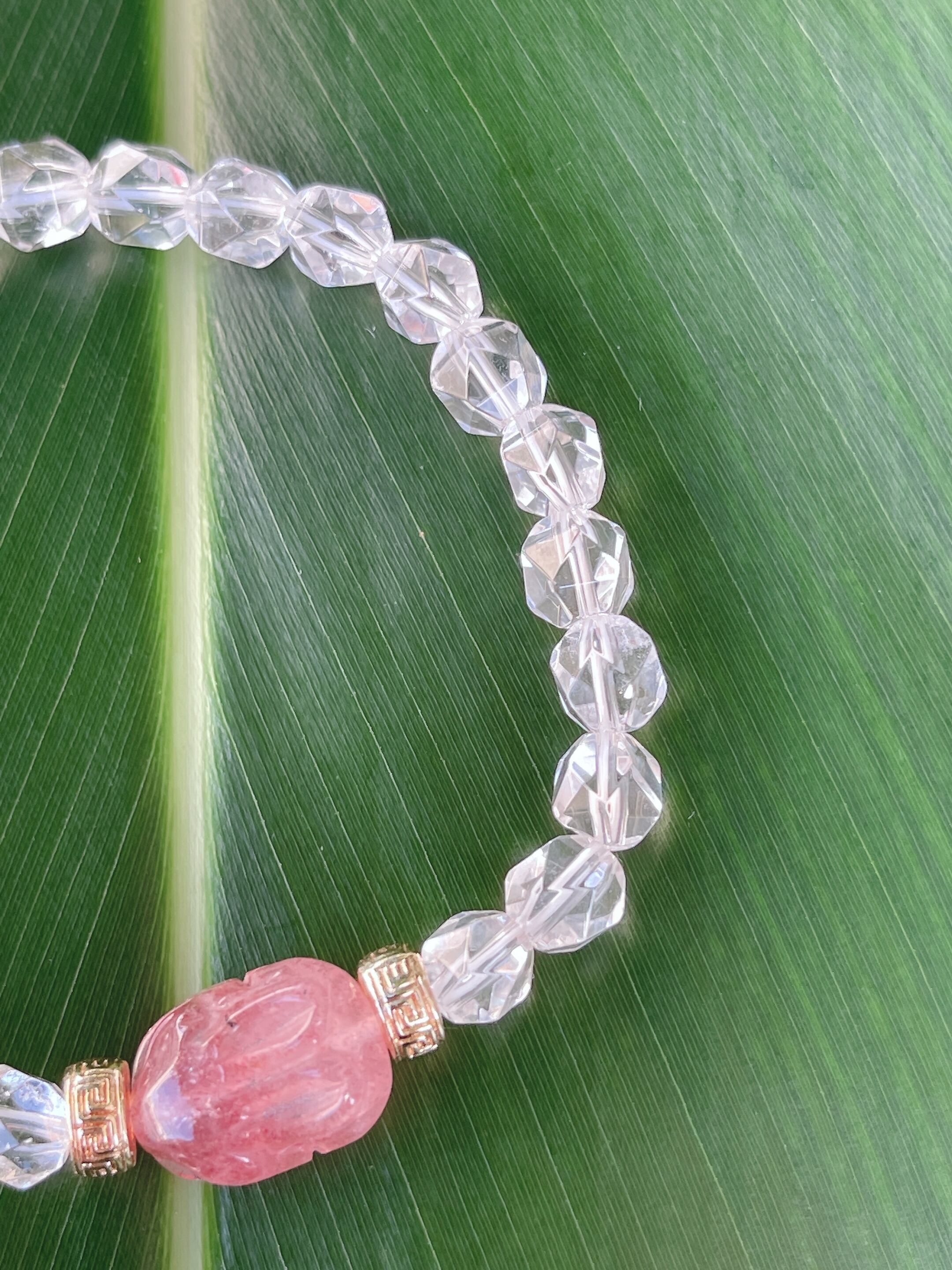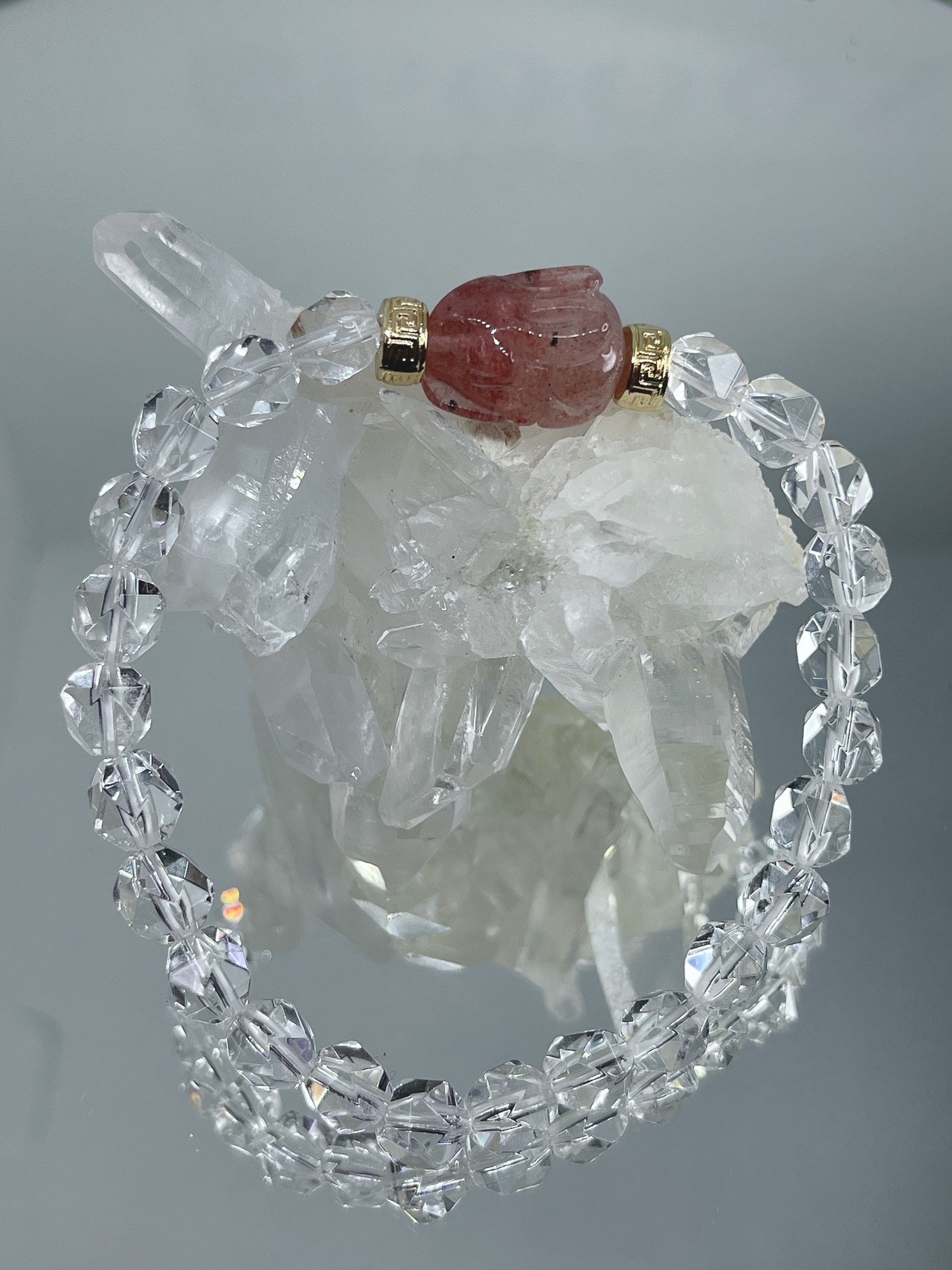 魅力UP・開運UP✨☆うさちゃんストロベリークォーツ・スターカット水晶☆ブレスレット