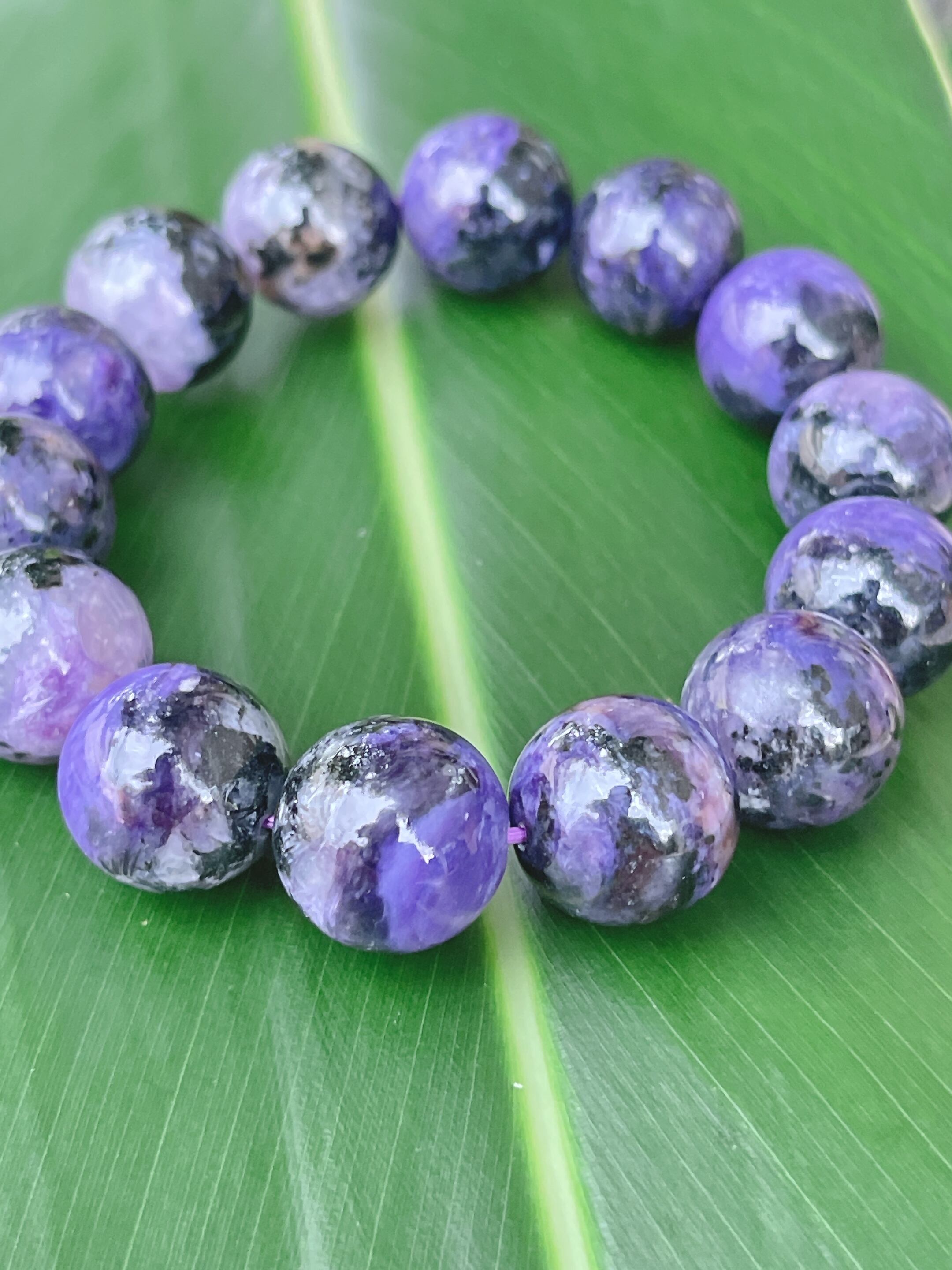 チャロアイトはスギライト、ラリマーもとに世界3大ヒーリングストーンです。ロシア語の「チャロ=魅惑」からついたという説もあります。