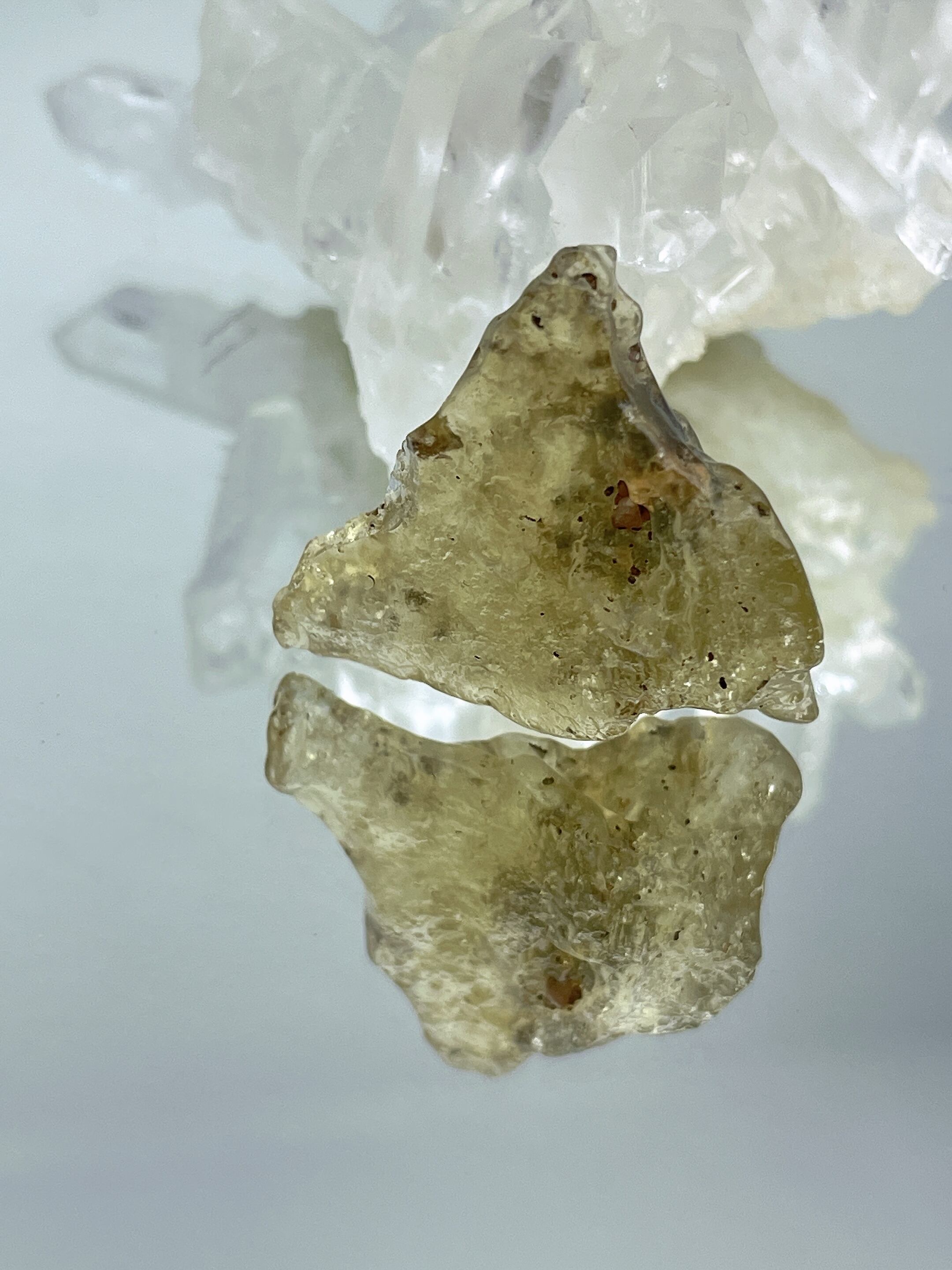 どのように生成されたかはハッキリ解明されていませんが、一般的には隕石が衝突した時にでた膨大な熱によって生成されたガラス。モルダバイトと似た条件で発生したと言われ、別名:ゴールデンテクタイトと呼ばれています。