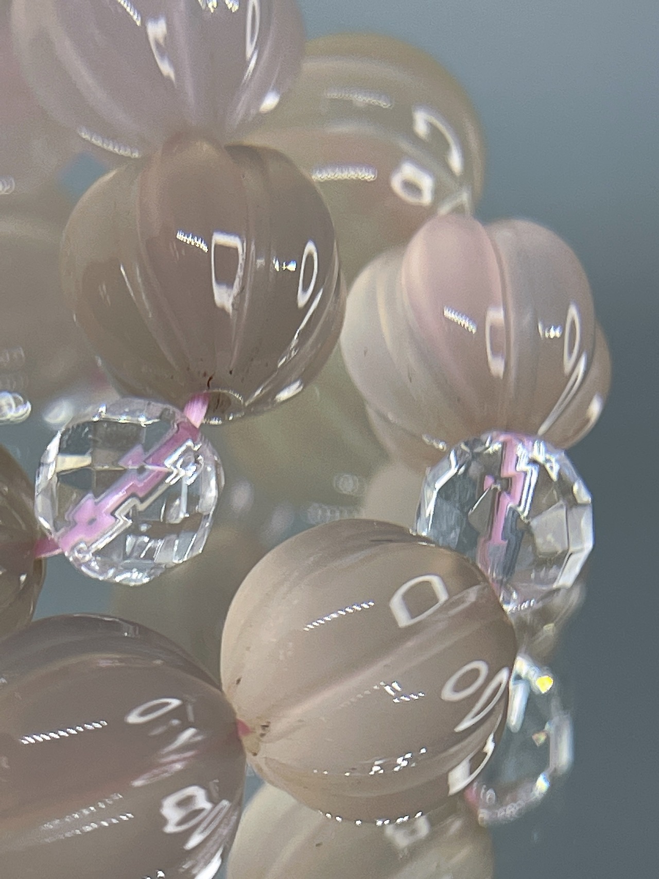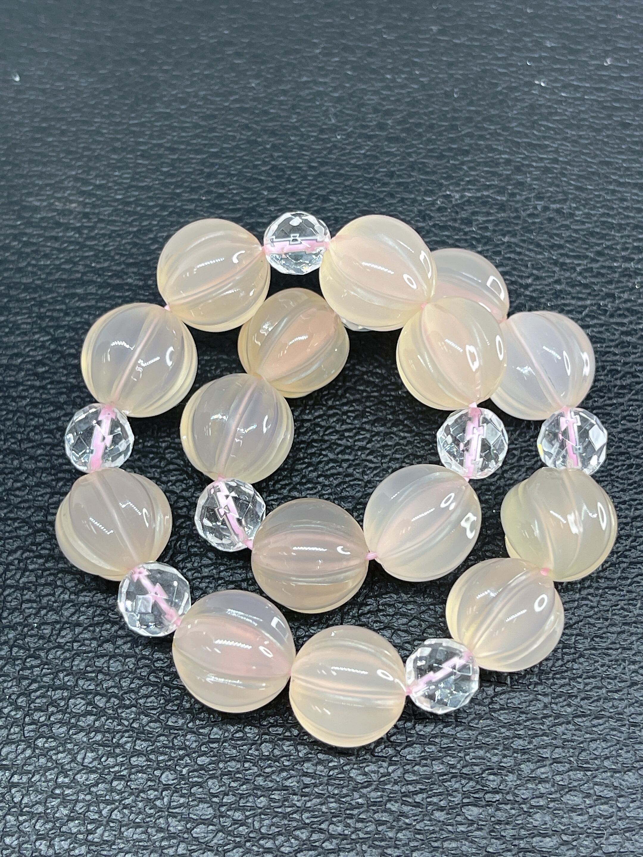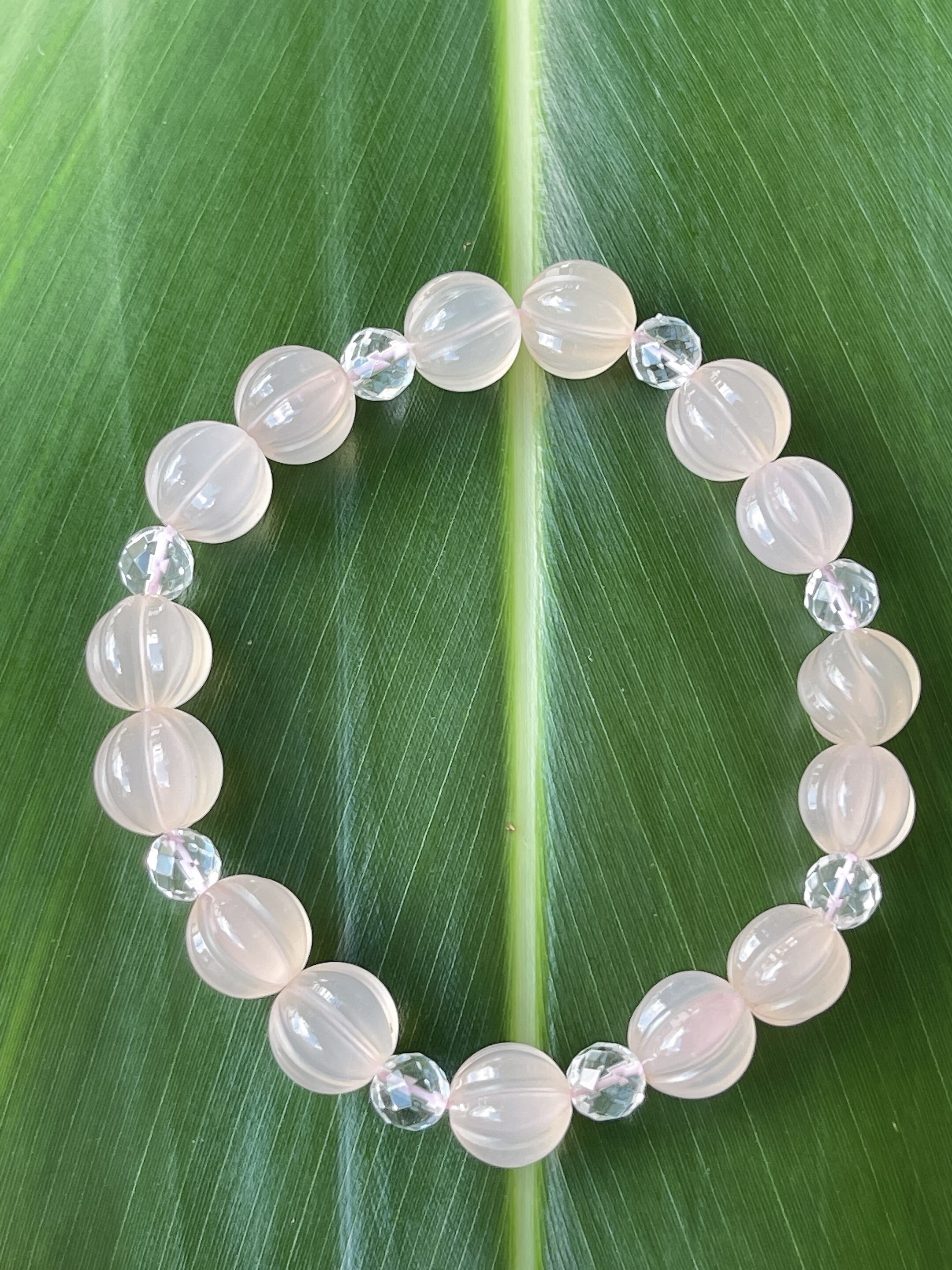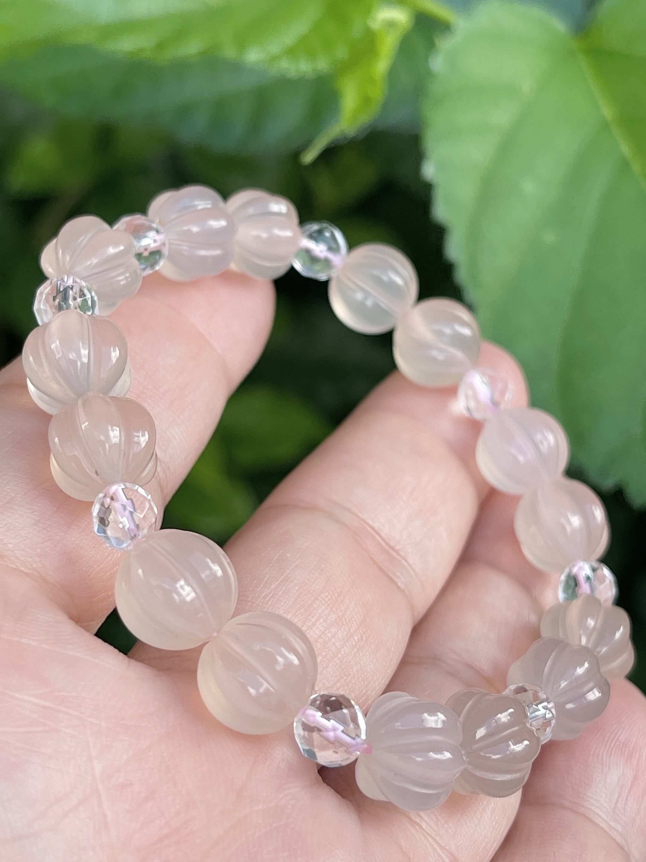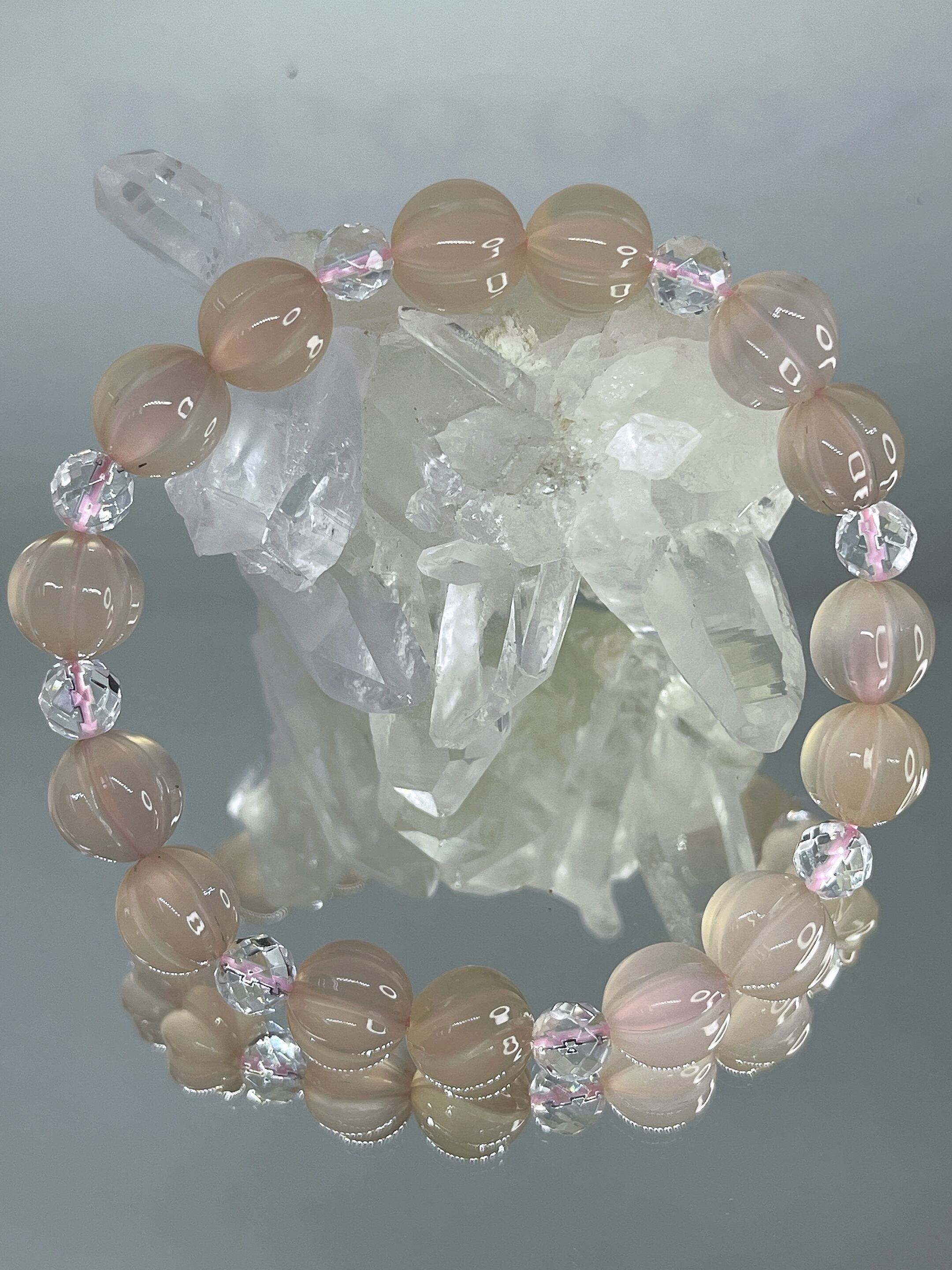 心穏やかに✨☆ピンクカルセドニー・水晶☆パンプキンカットブレスレット