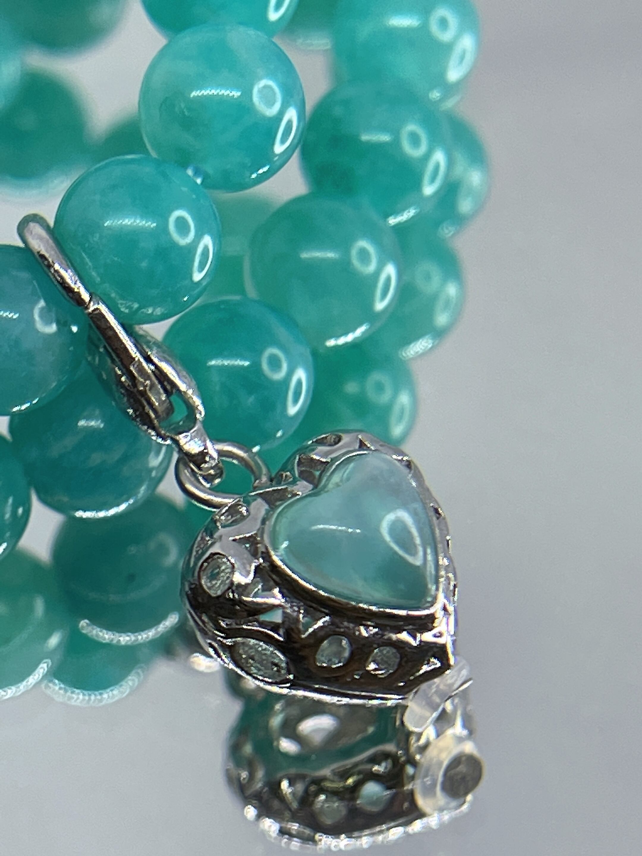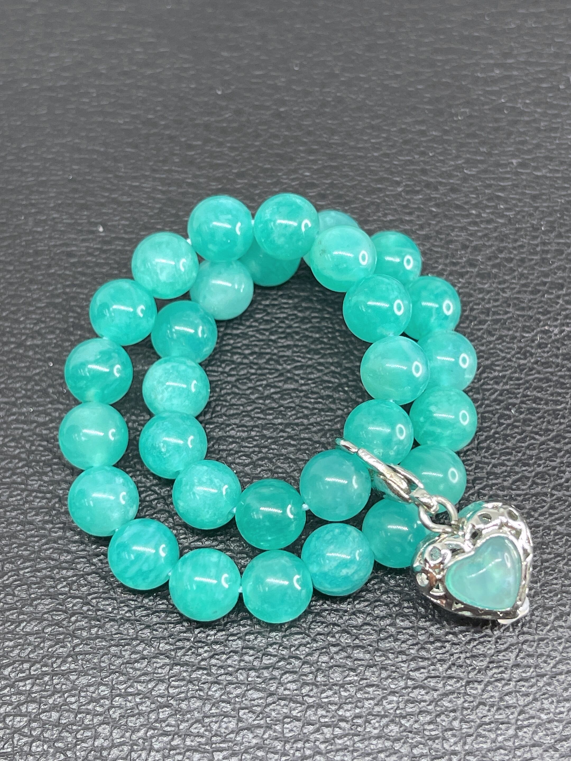 決断力・活力・希望の石✨☆アマゾナイト☆ハートチャーム付きブレスレット