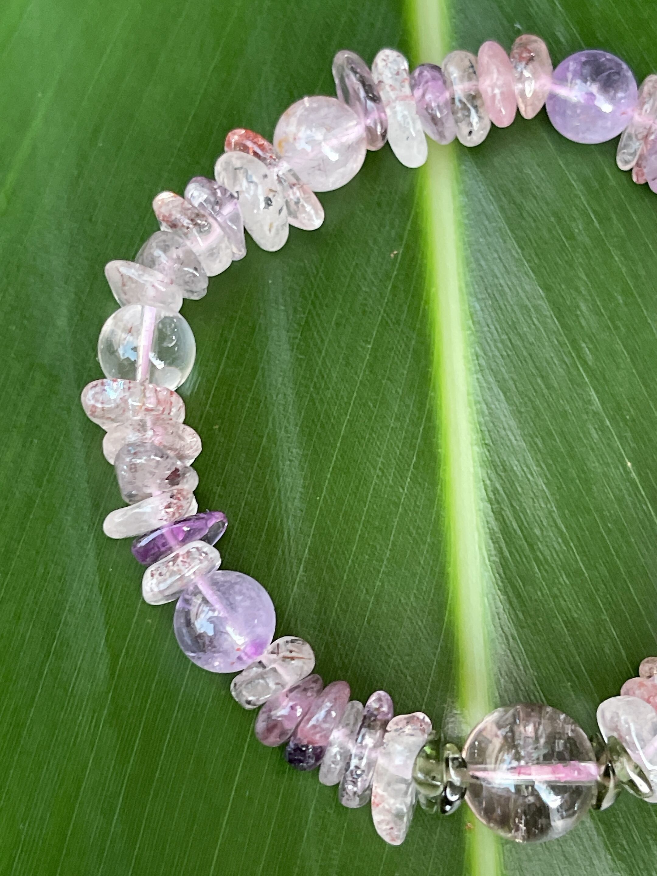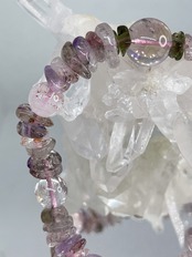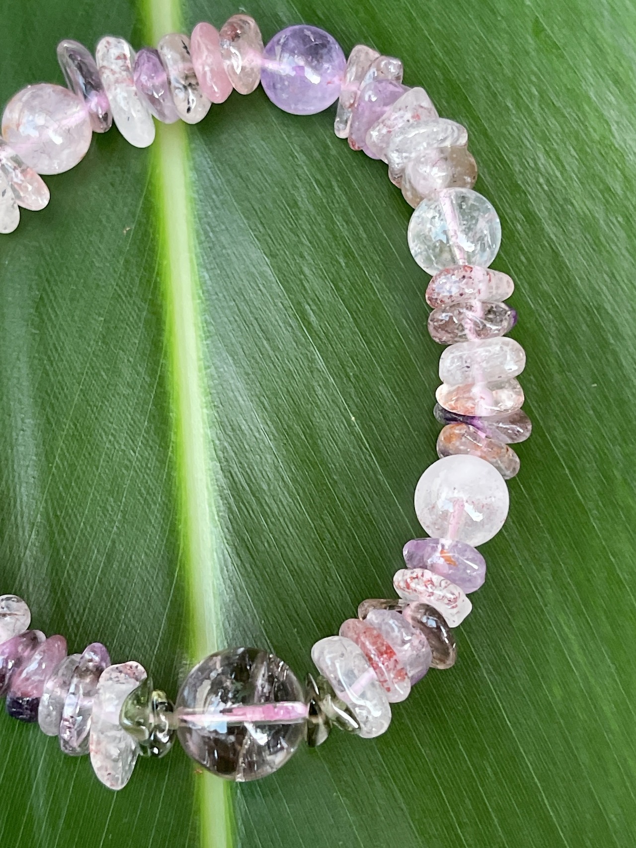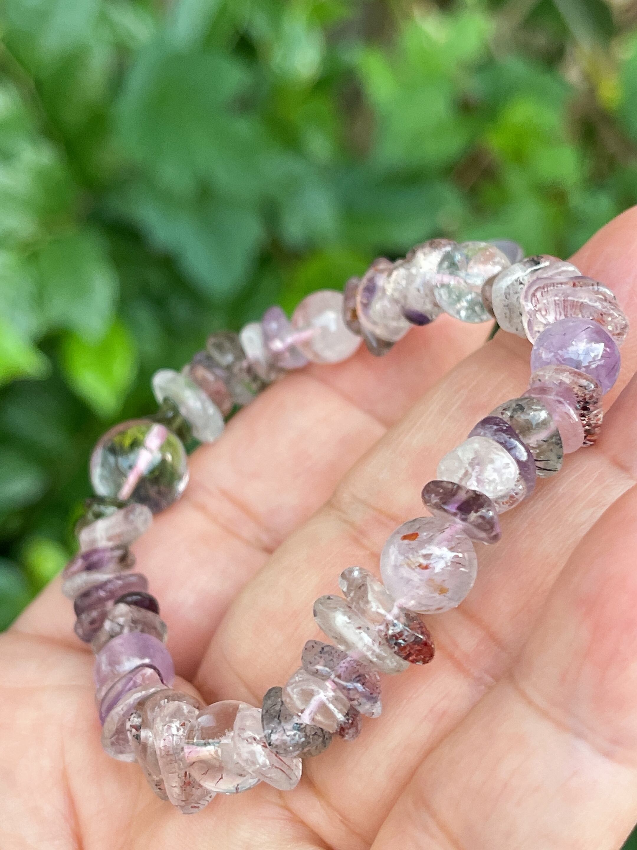 クリスタル、アメジスト、カコクセナイト、ゲーサイト、レピドクロサイト、スモーキークォーツ、ルチルの7種類です。加工後に鉱物が入っていなくても、原石に全て含まれていたなら同等の力を持って持つと言われています。持つ人を選びません。