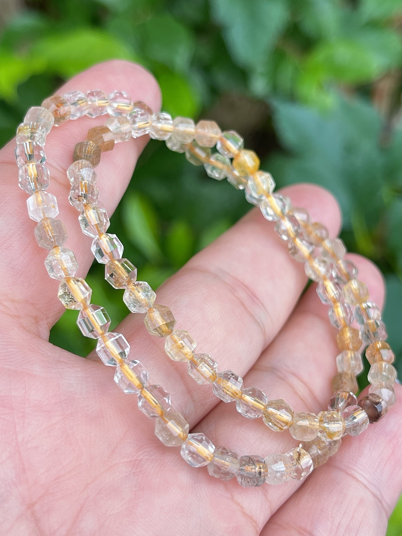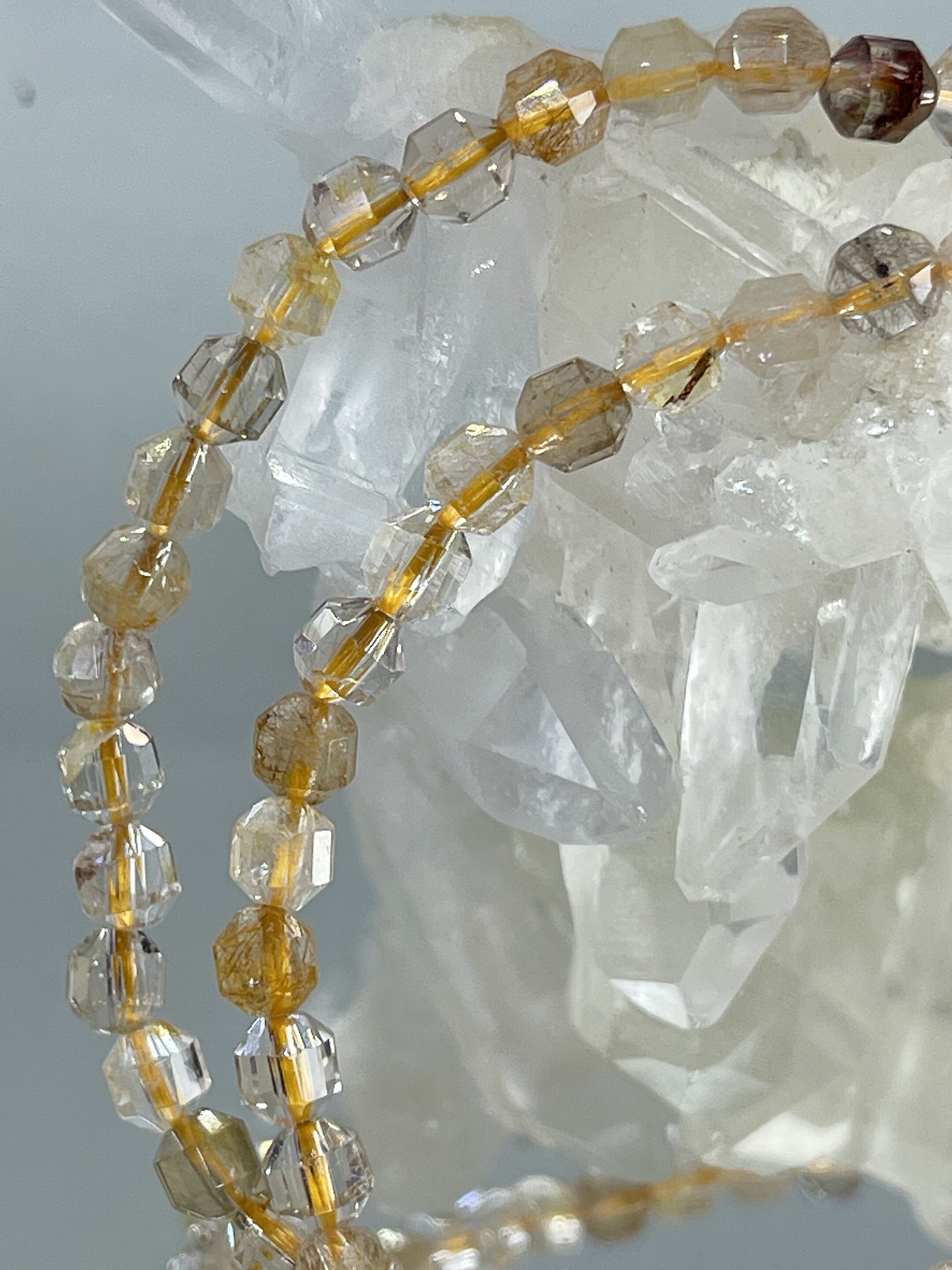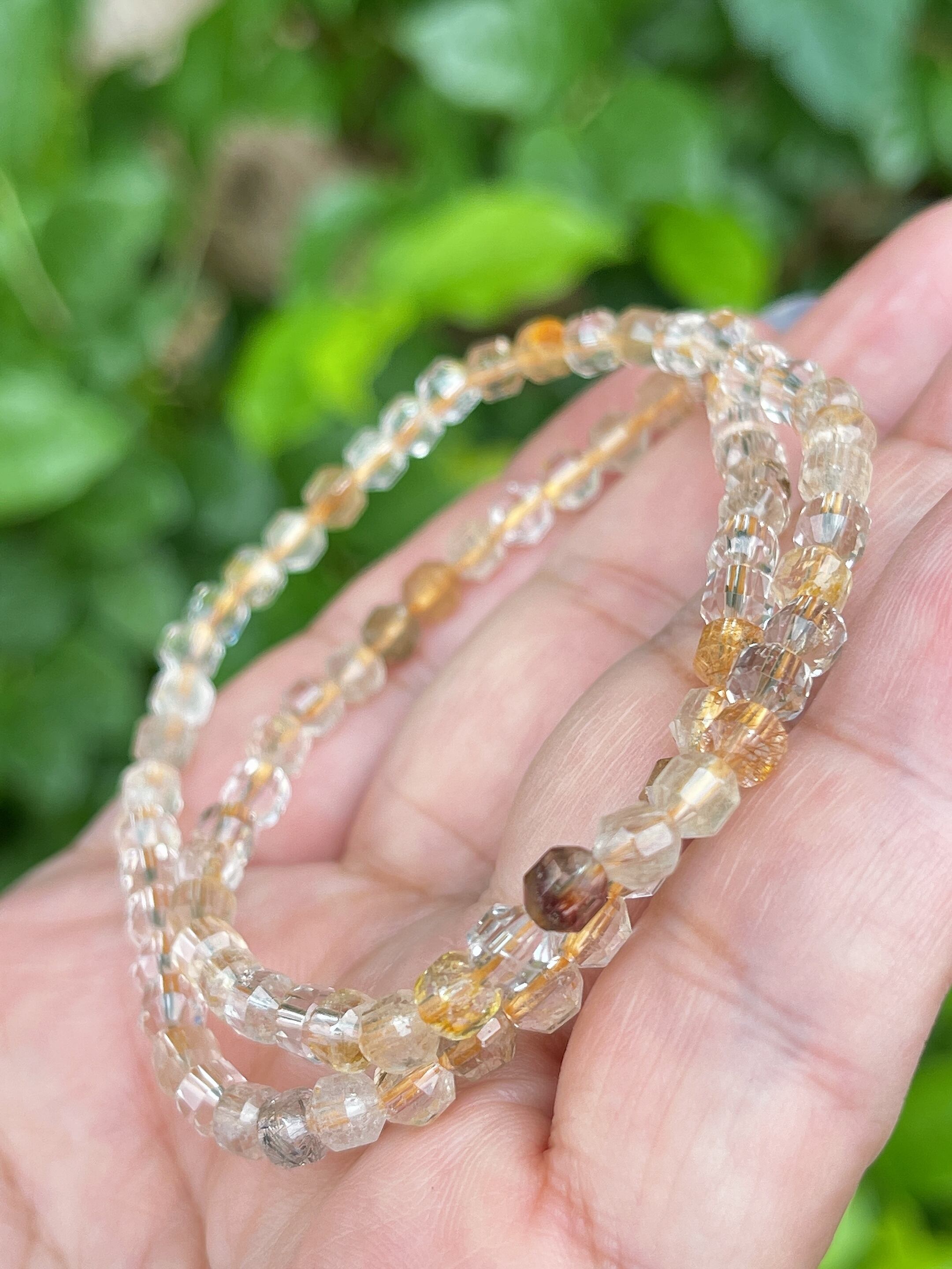 家庭円満・金運UP✨☆ミックスルチルクォーツ☆2連小粒キラキラブレスレット