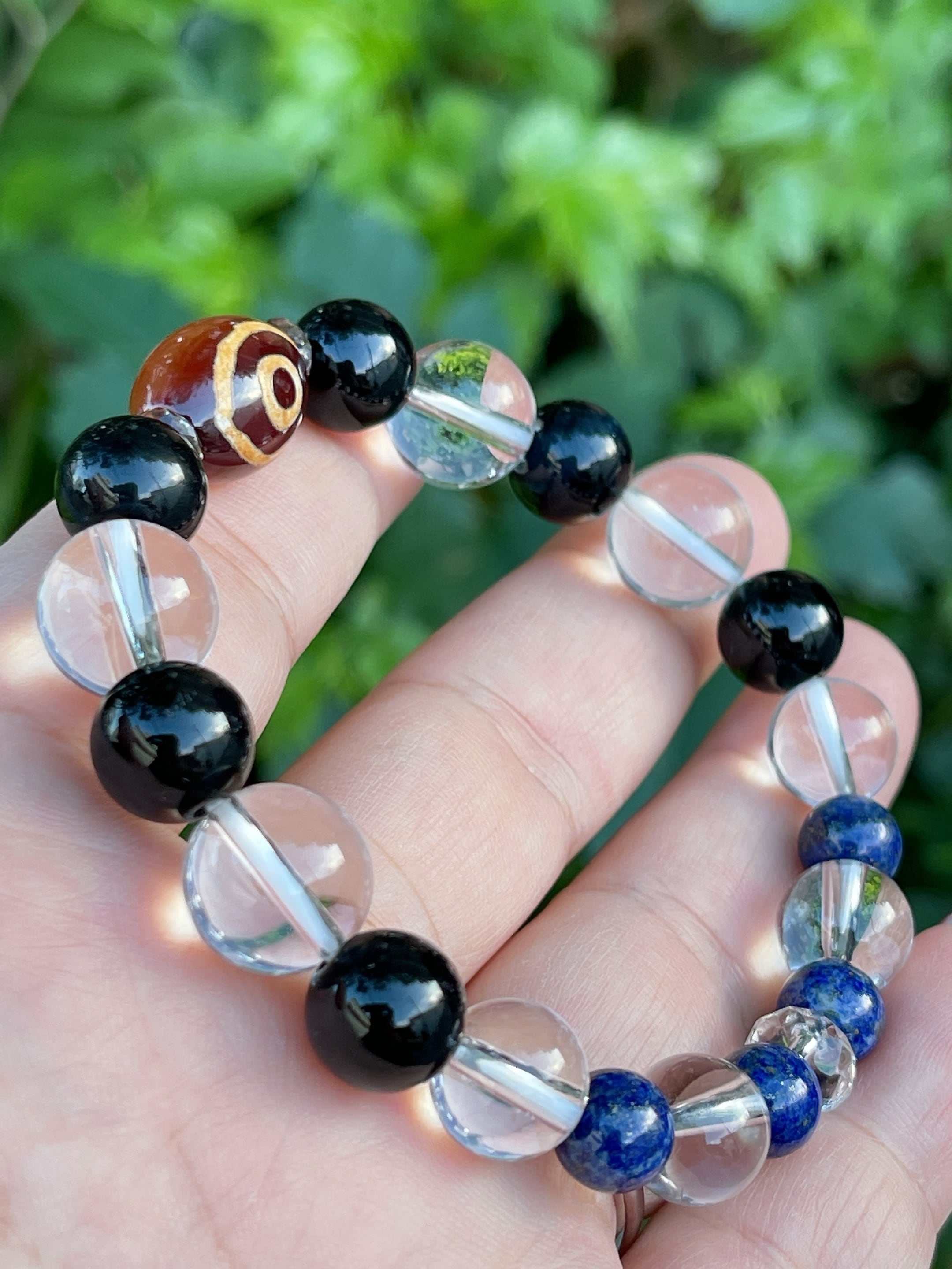 セール❣️開運✨☆二眼天珠・水晶・スモーキークォーツ・オニキス☆ブレスレット
