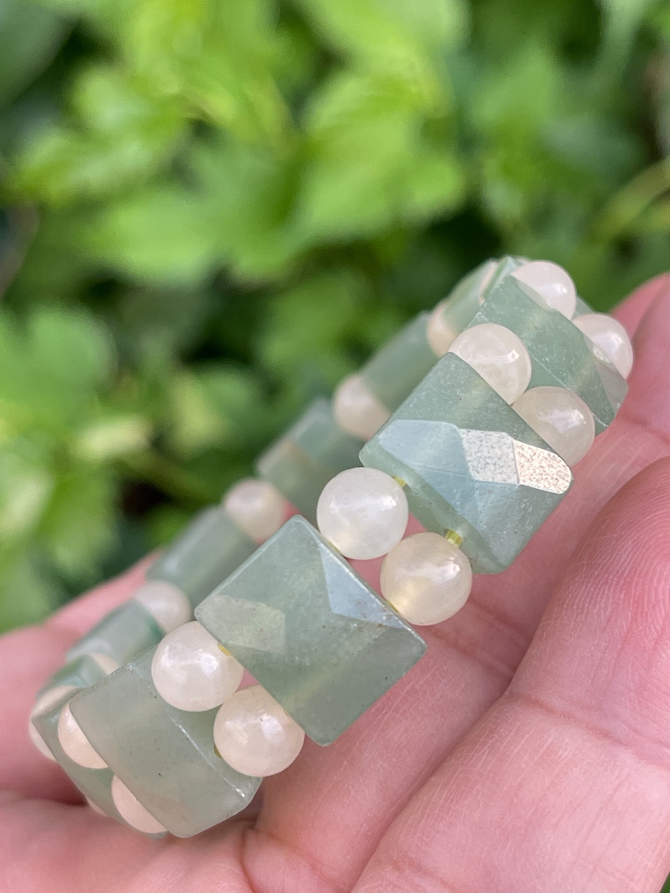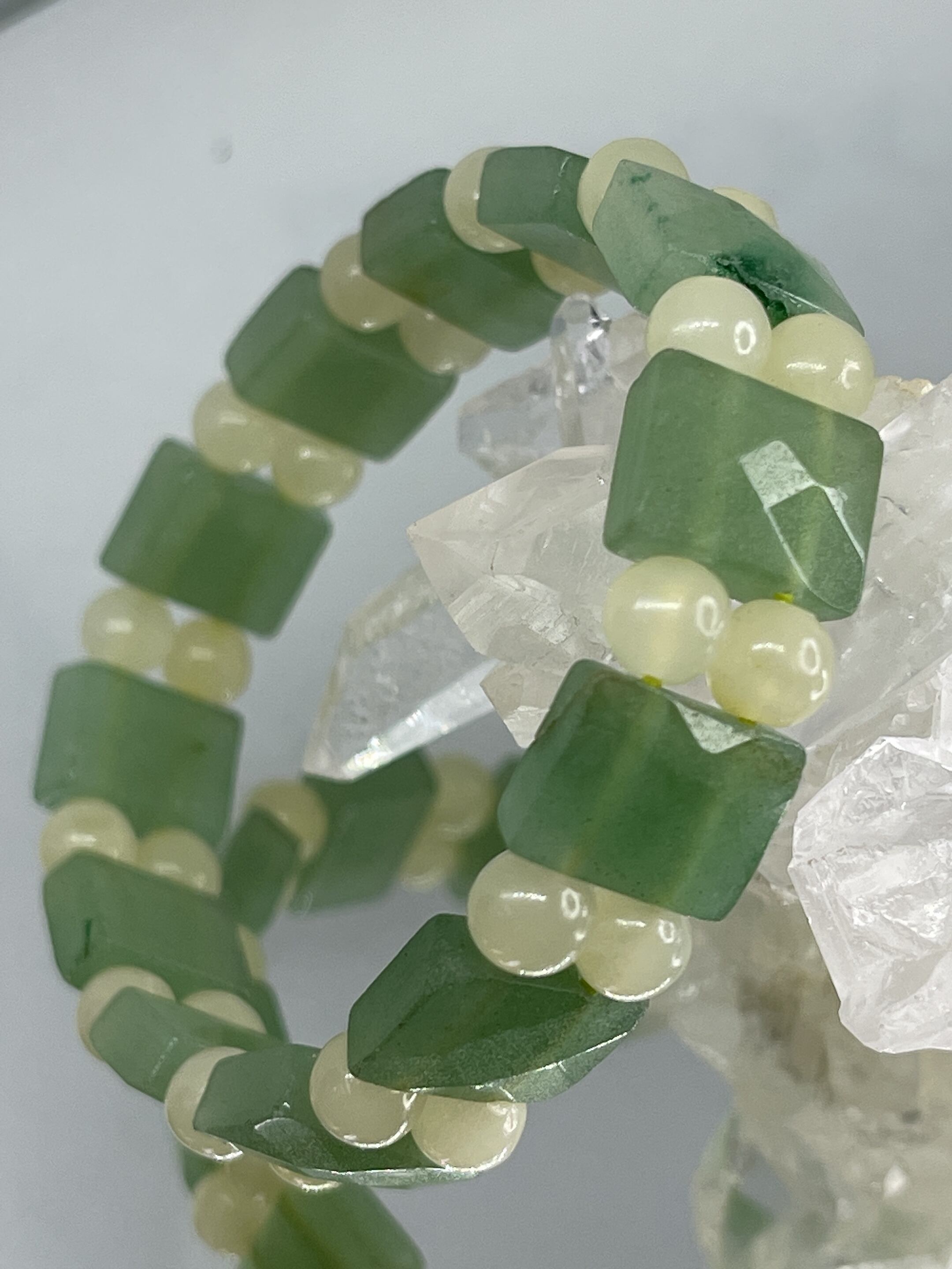ダブルの癒しパワー✨☆グリーンアベンチュリン・アラゴナイト☆バングル.