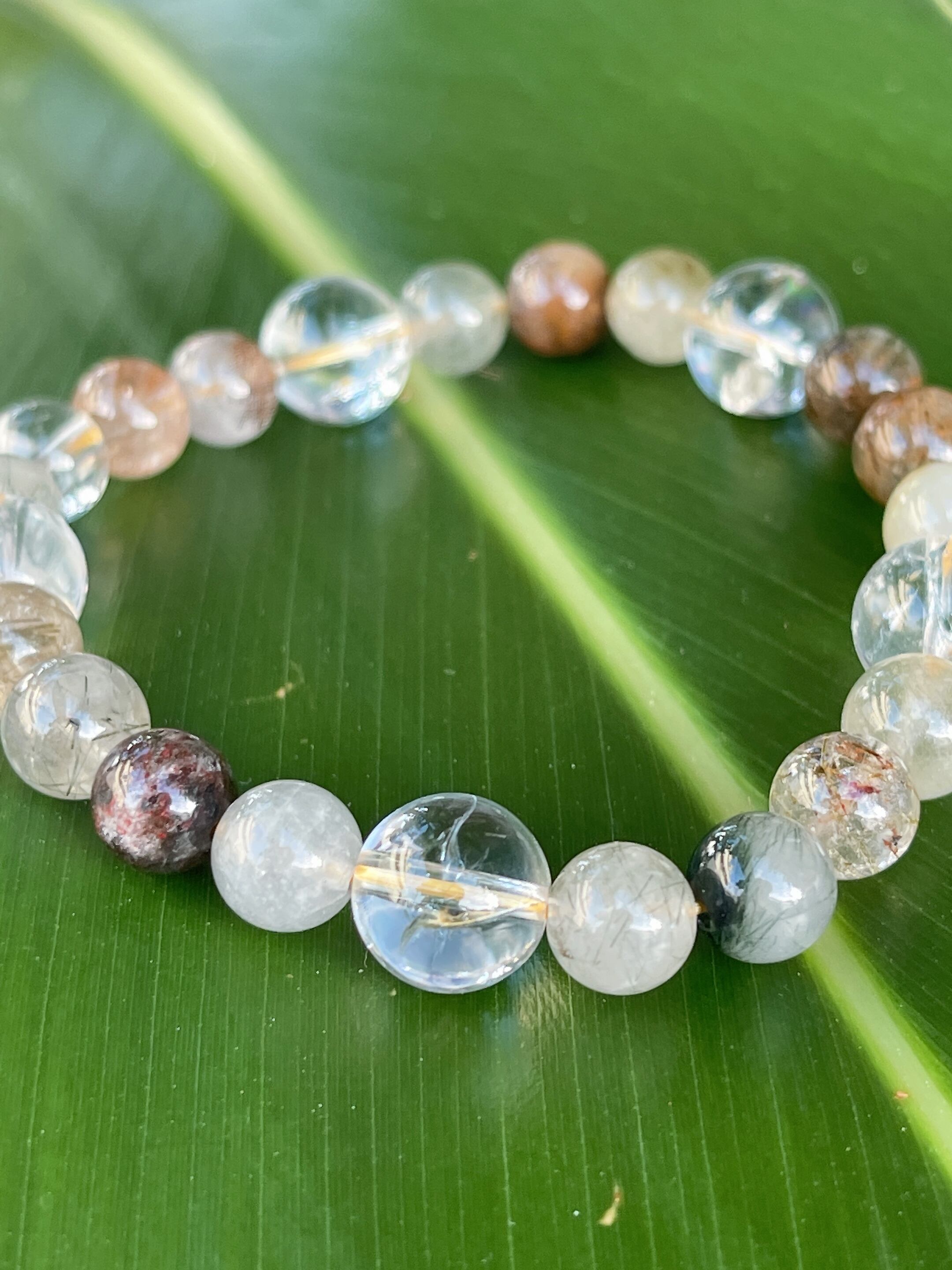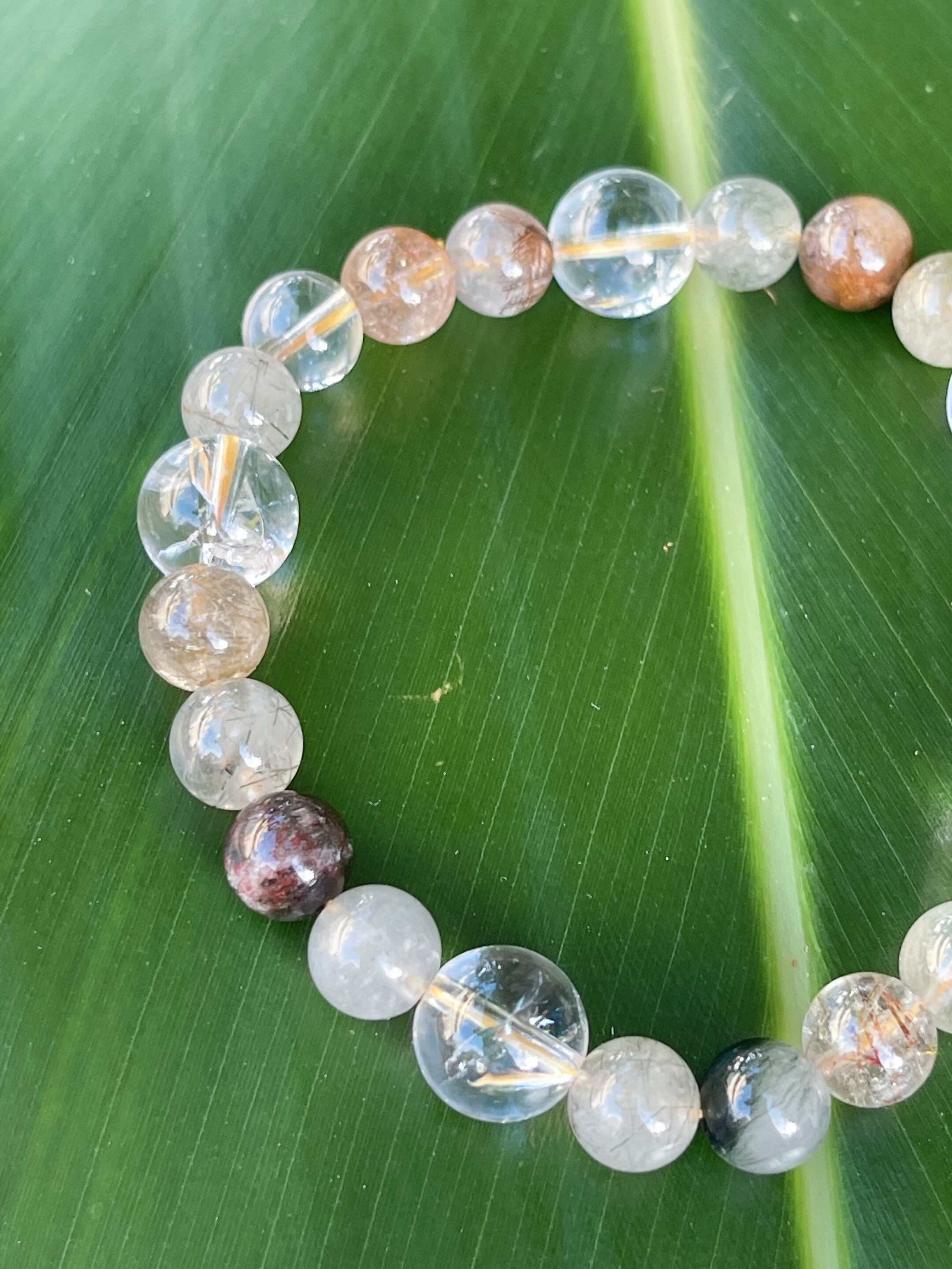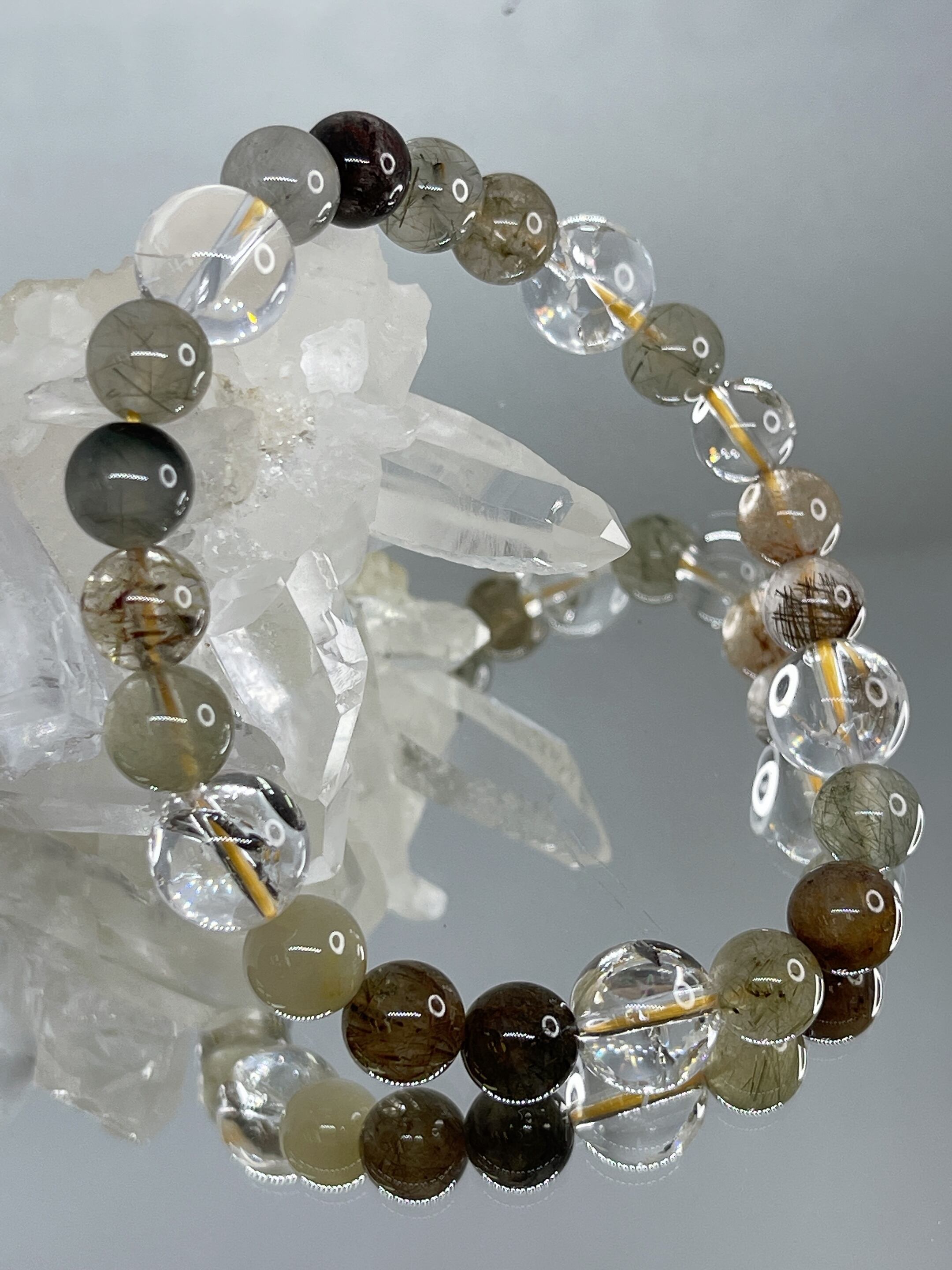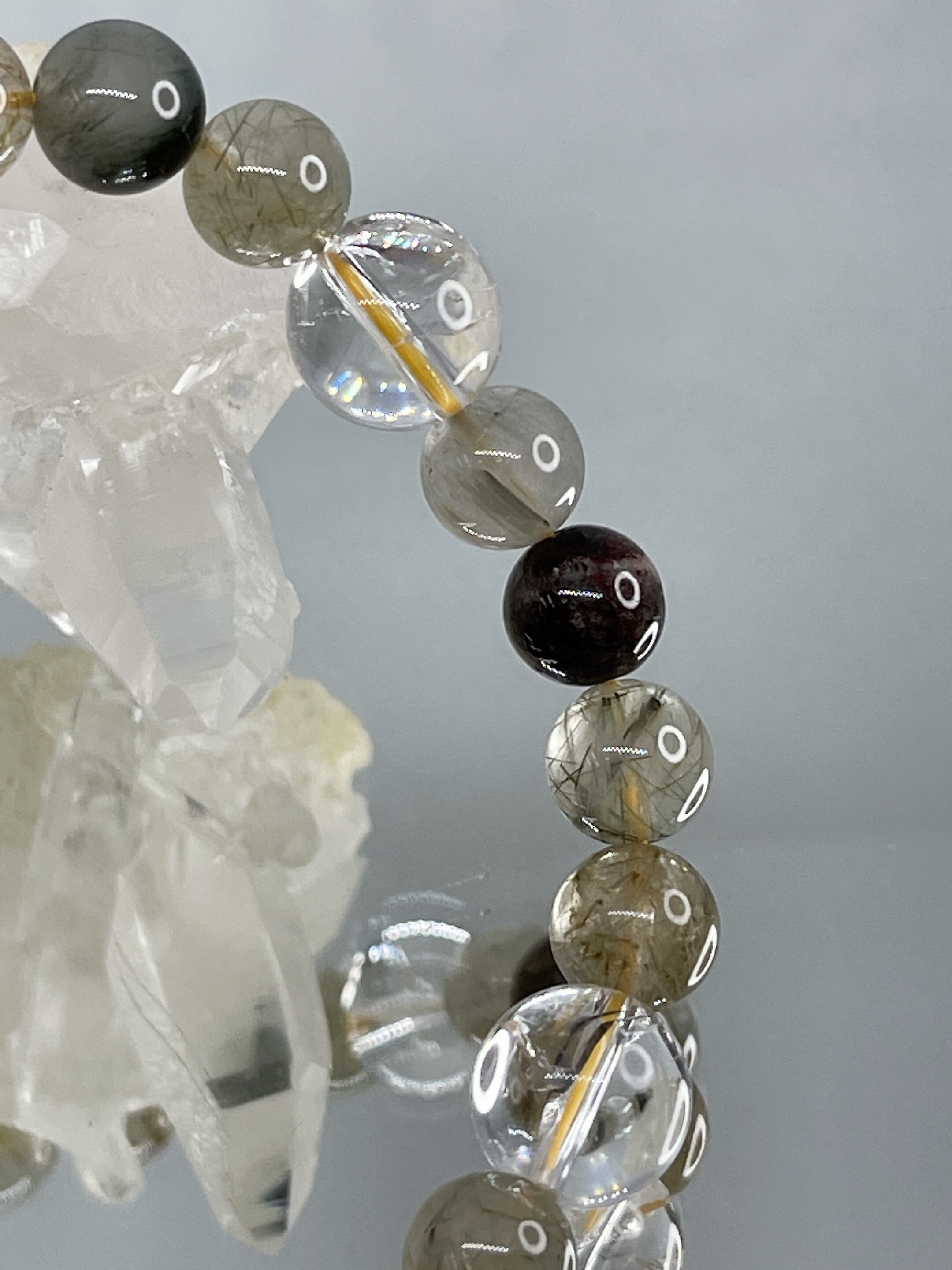 様々な色のルチルクォーツがミックスする事によって波動が大変穏やかになり、持つ人の心身を癒しながら必要なエネルギーを与えてくれると言われます。