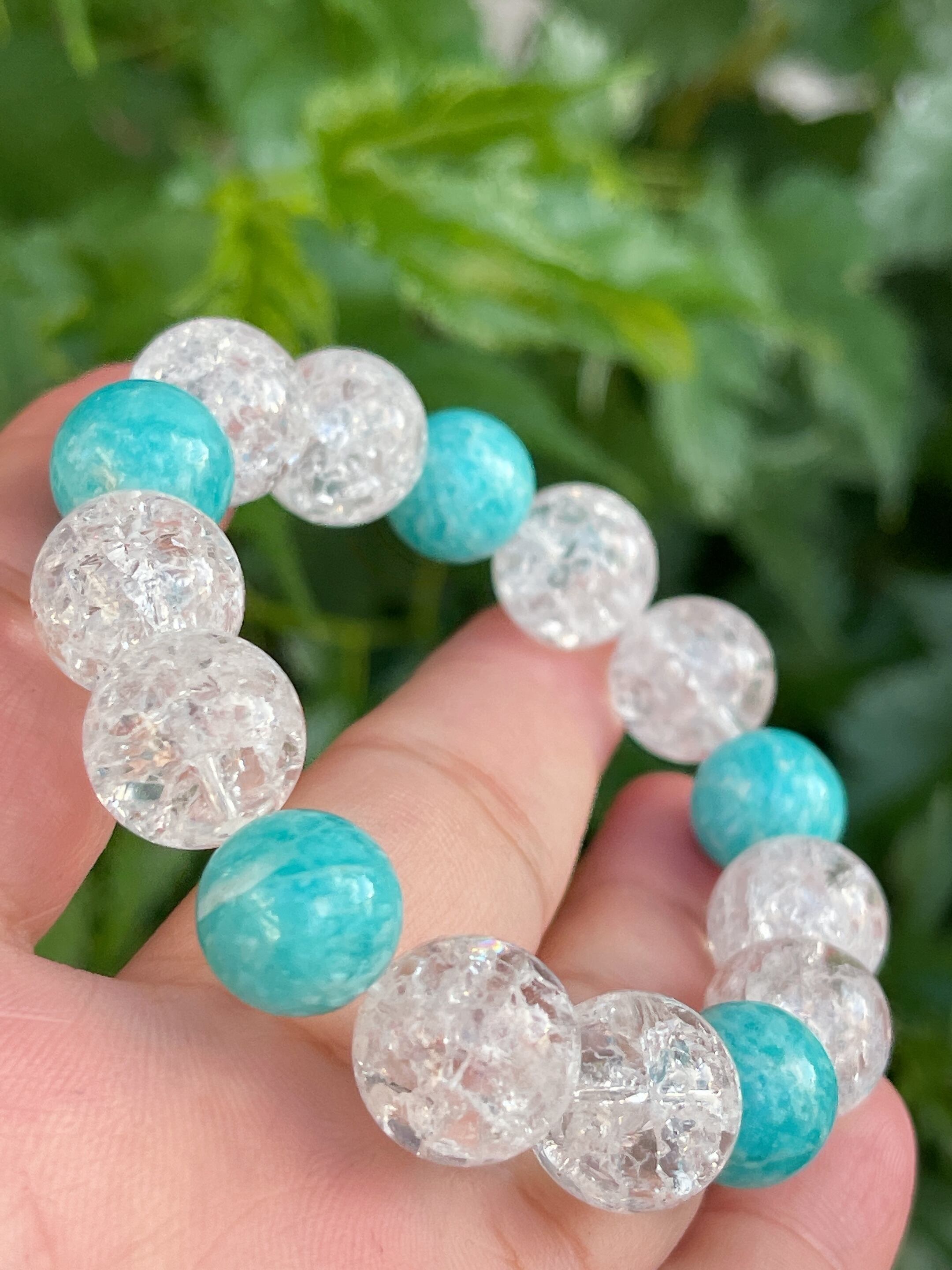 浄化・決断力・活力・希望の石✨☆アマゾナイト・クラック水晶☆ブレスレット