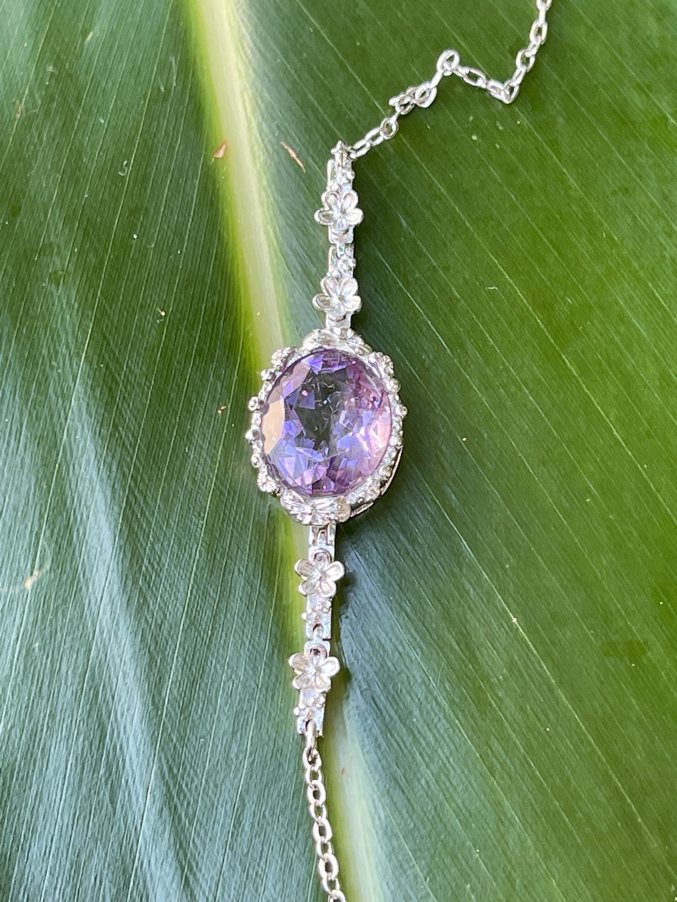 ギリシャ神話に登場する酒神バッカスの悪ふざけで、石に変えられてしまった哀れな女性、アメジストからつけられた名前。無色透明なクリスタルに鉄分が含まれて変種したアメジストは、紫色が特徴です。