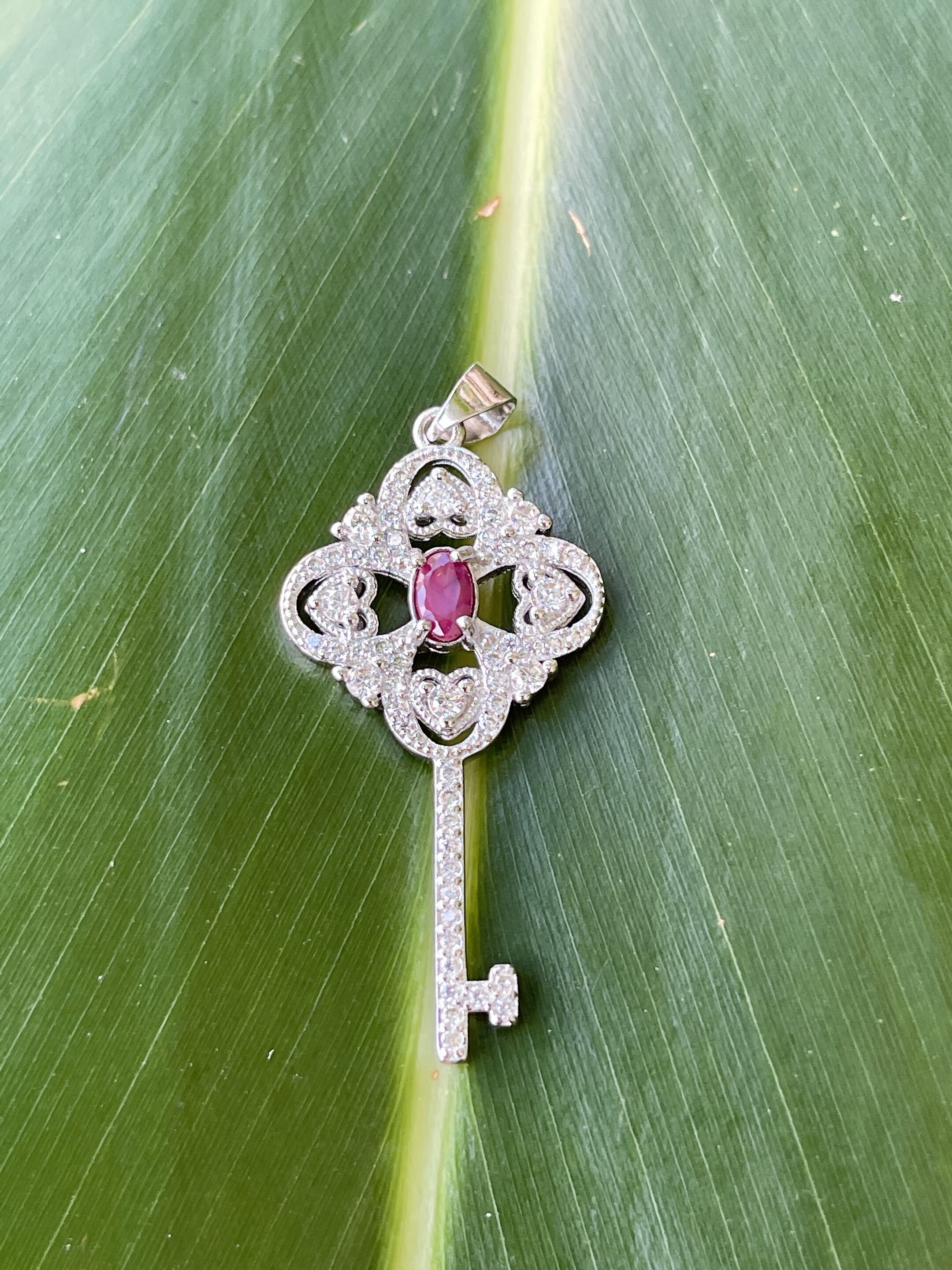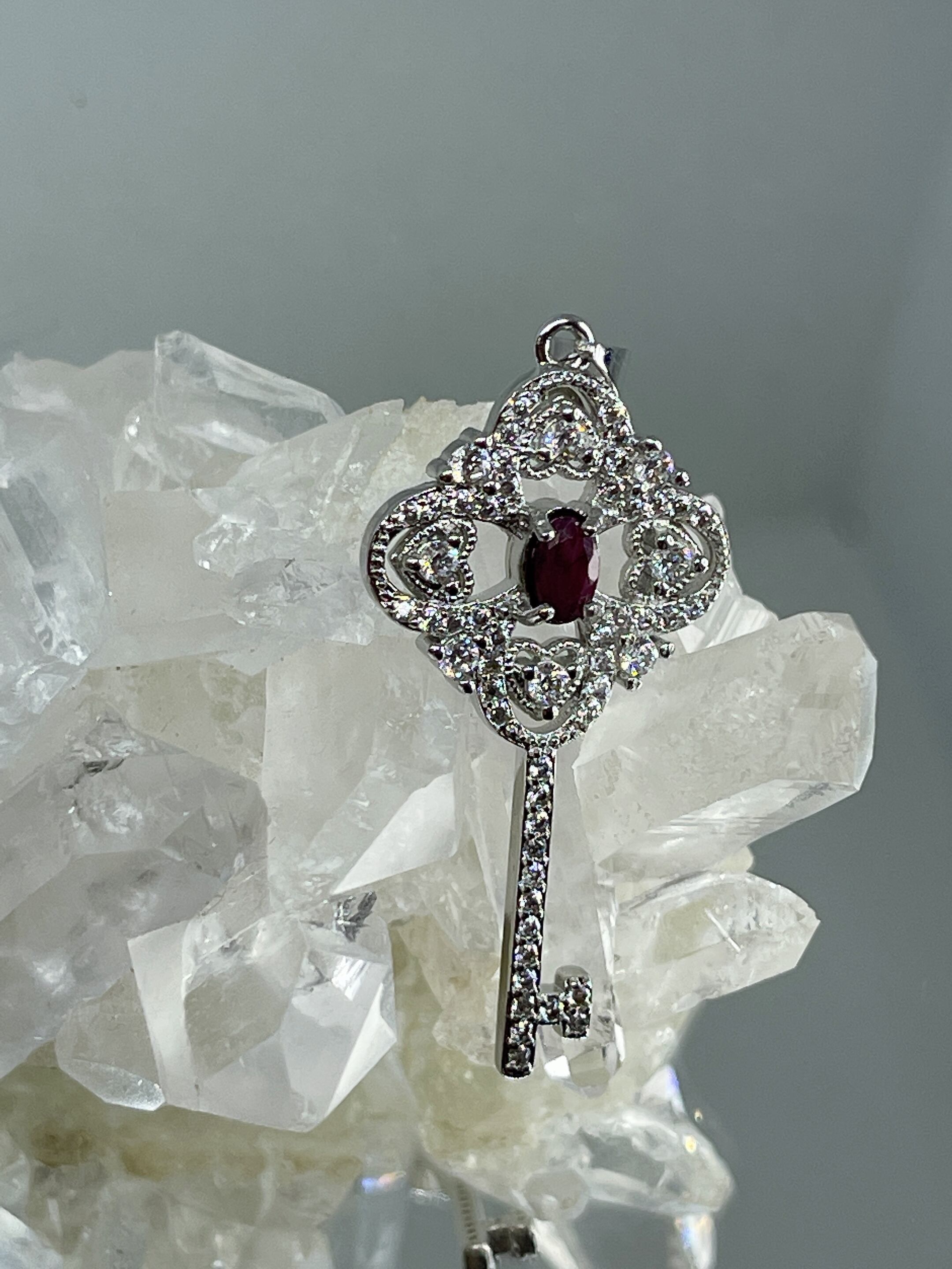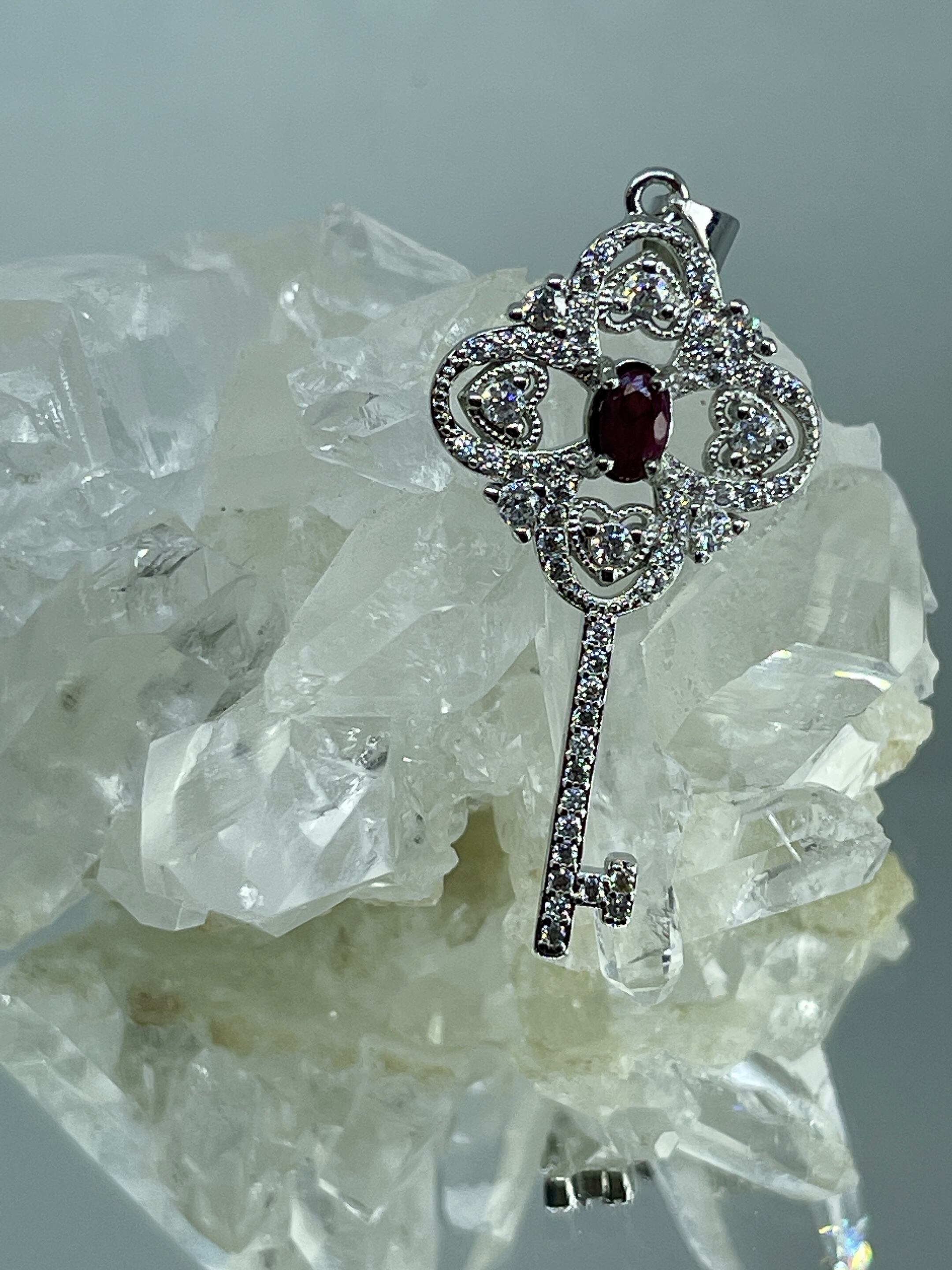 セール❣️女性のお守り、勝利を呼ぶ石✨☆ルビー☆真鍮key型ペンダントトップ