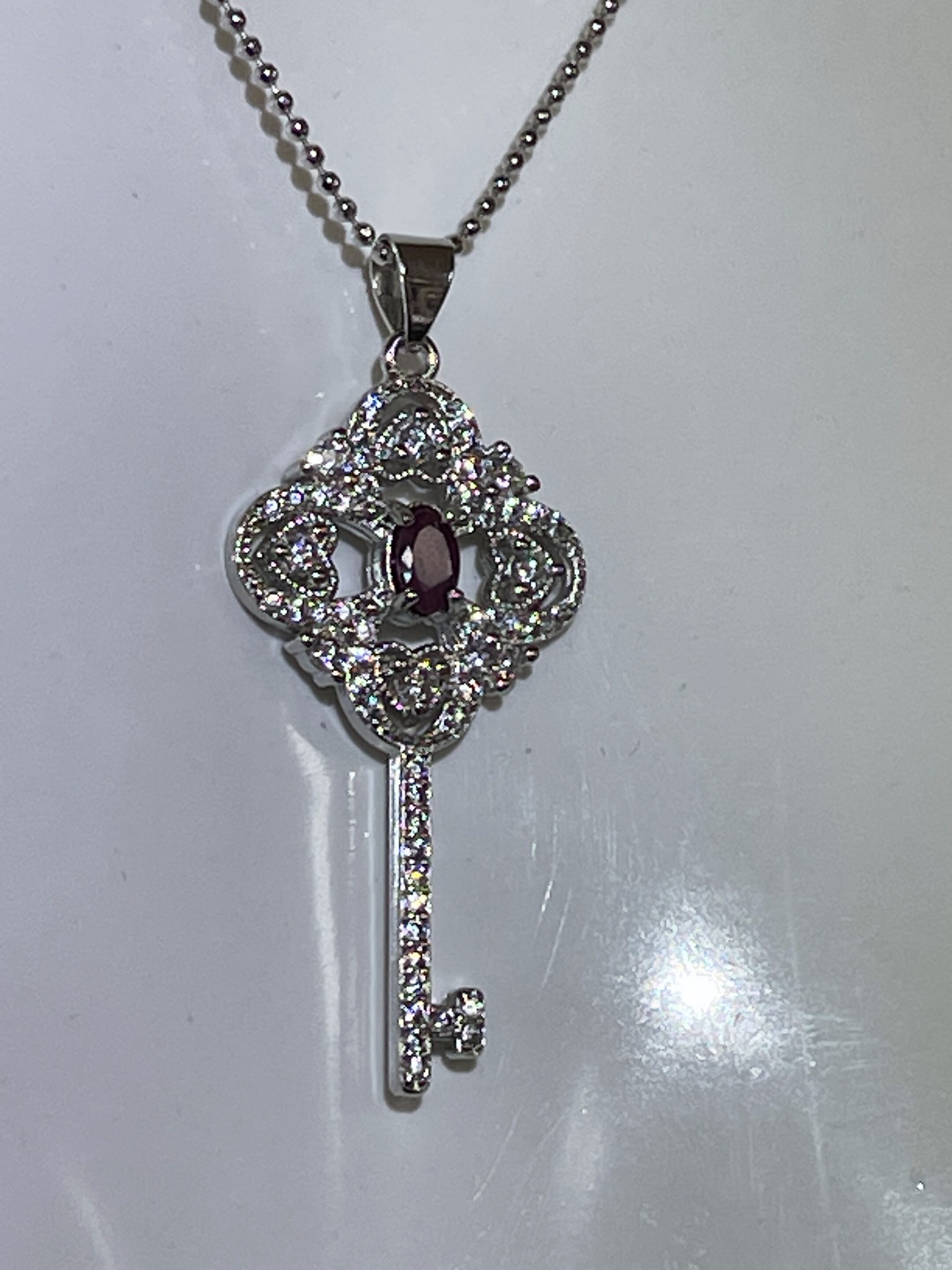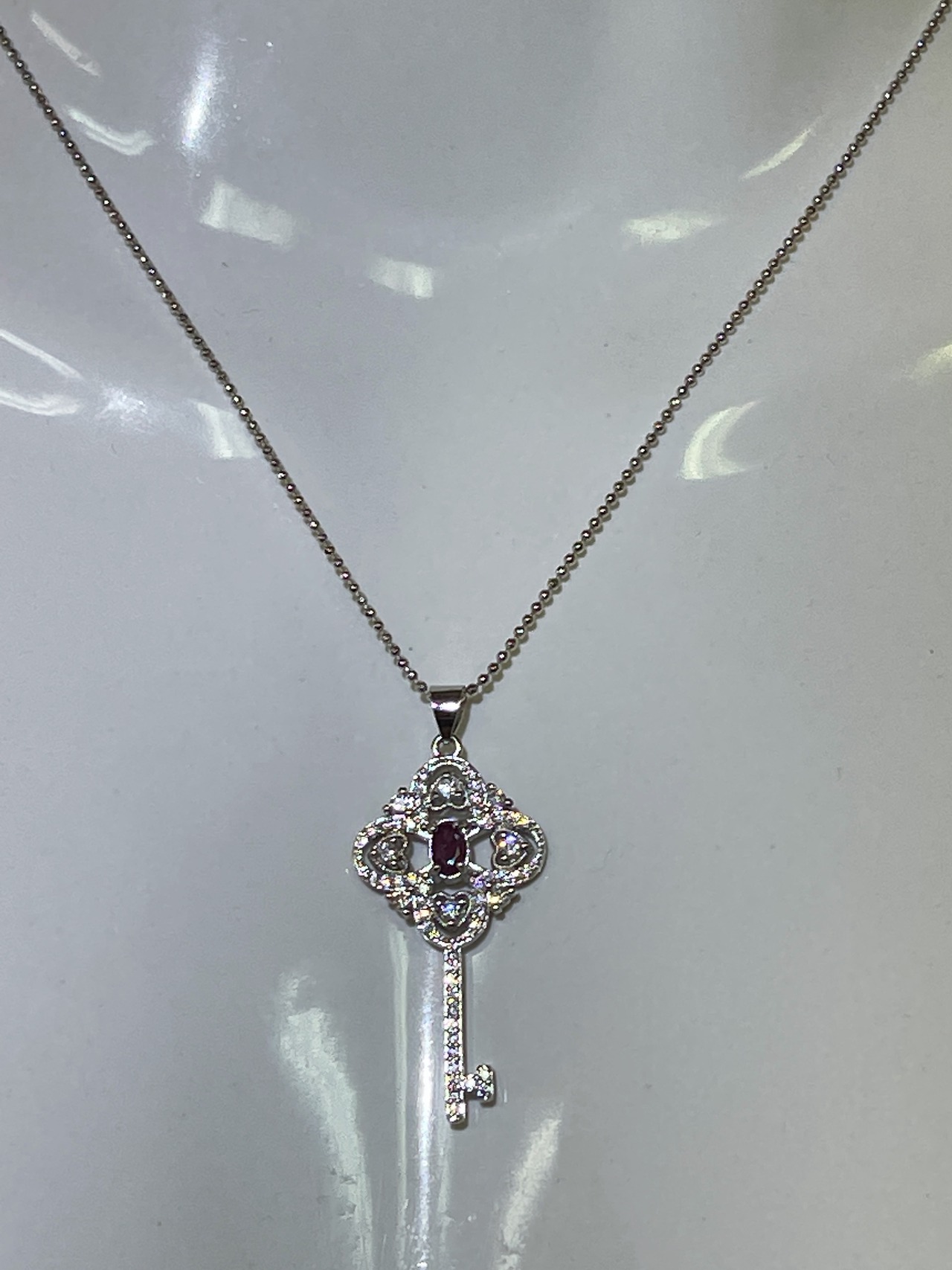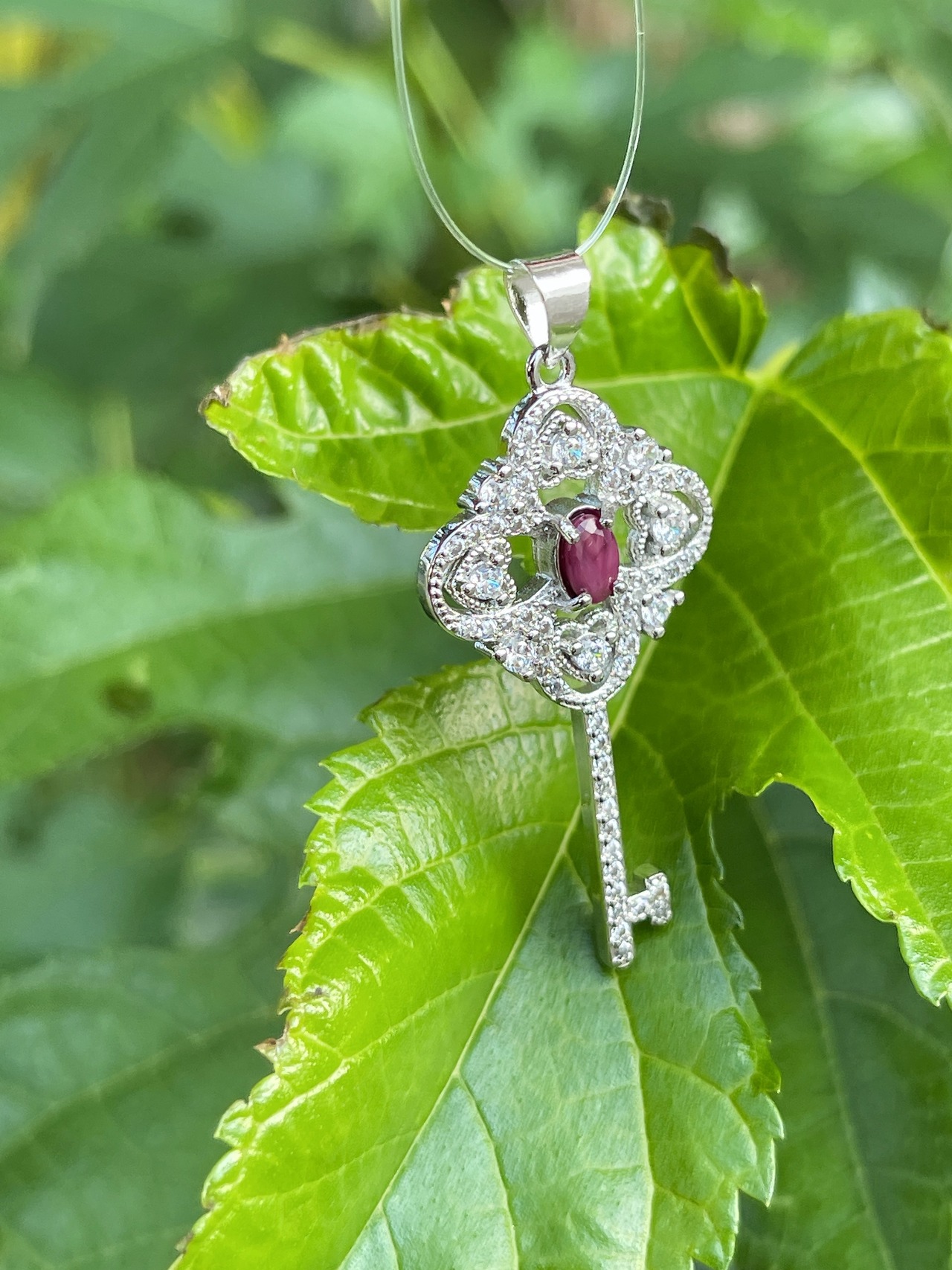 セール❣️女性のお守り、勝利を呼ぶ石✨☆ルビー☆真鍮key型ペンダントトップ